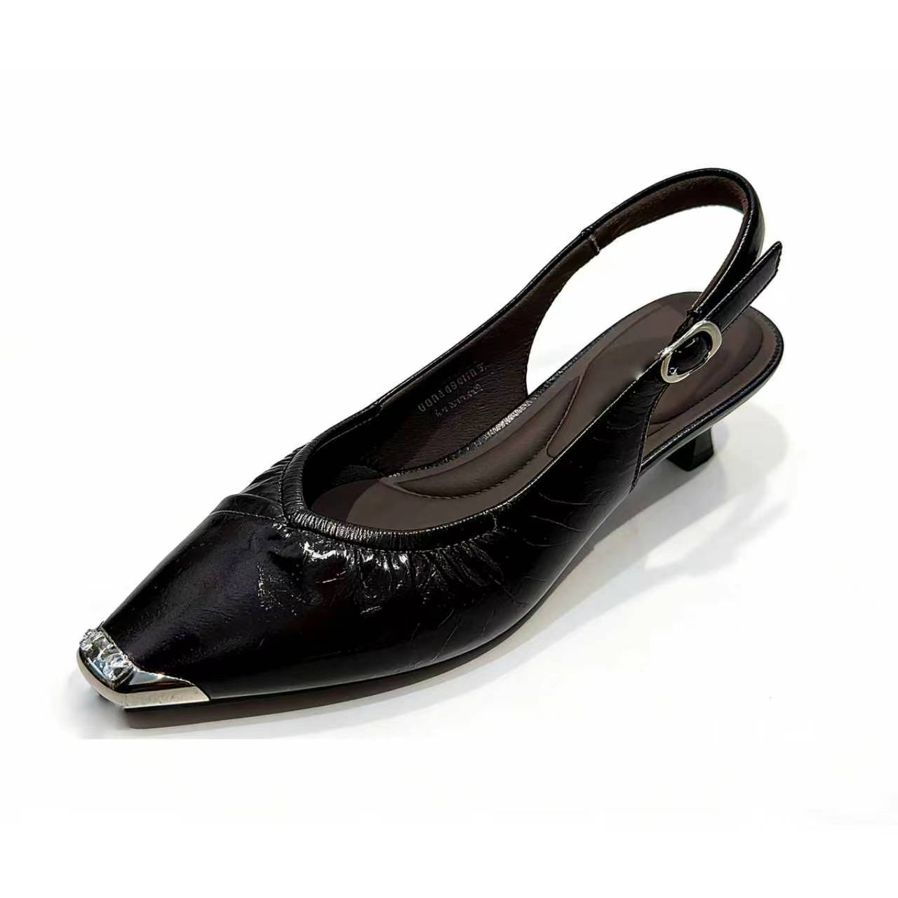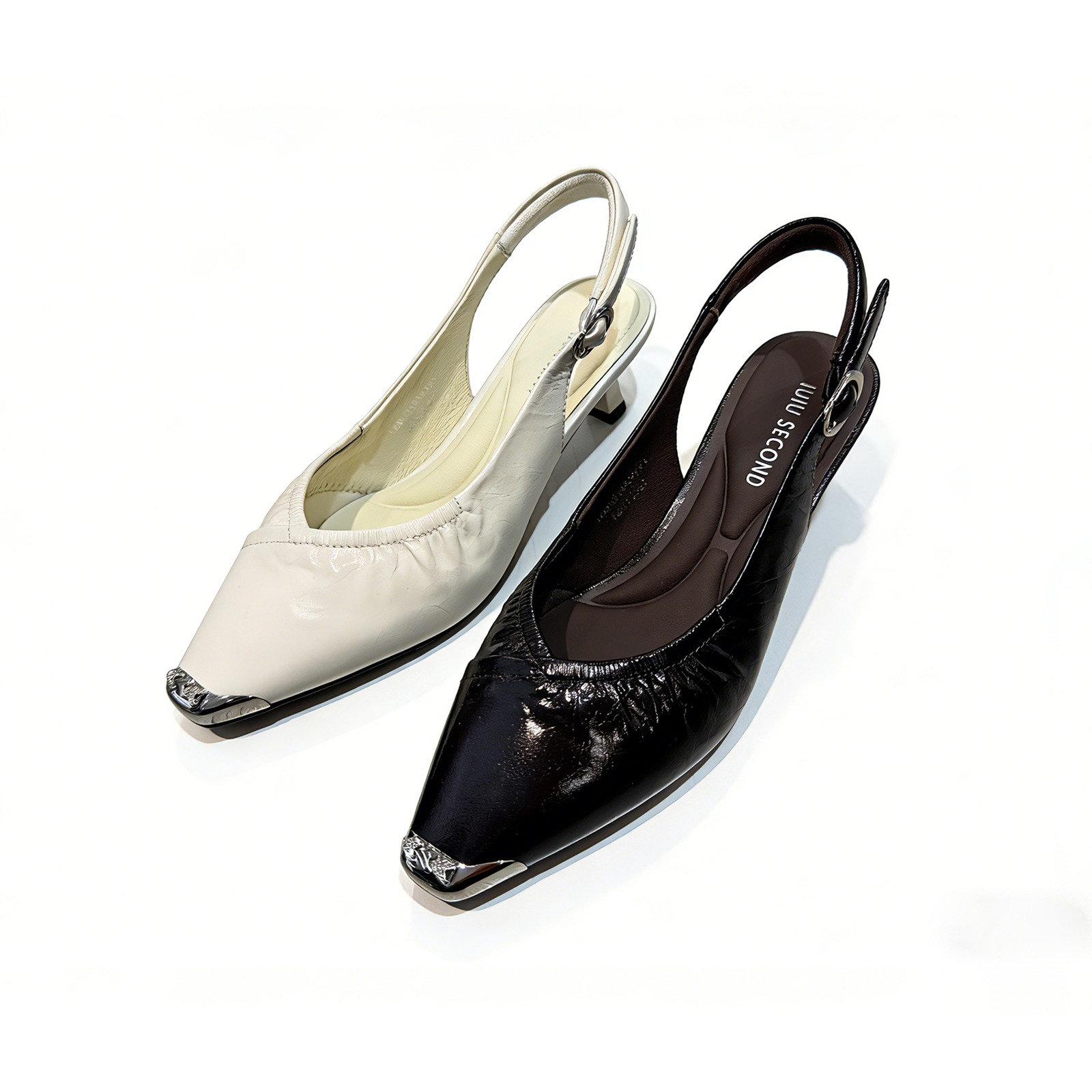 【牛皮革】西村名物夏季新款羊皮内里内垫舒适低跟前包后空小尖头时尚后空鞋U26AH18321