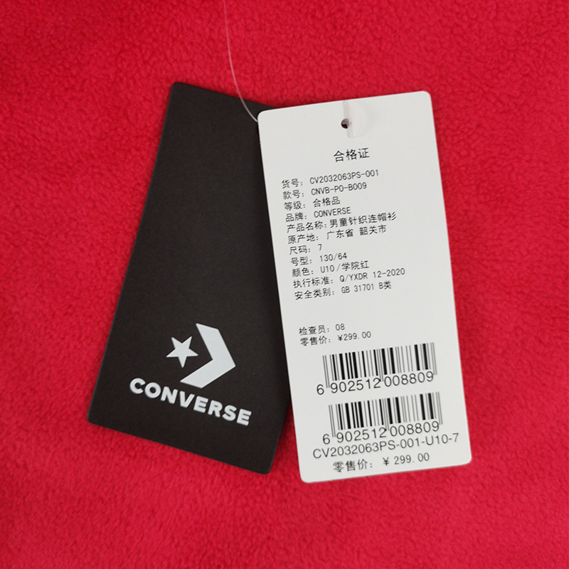 CONVERSE匡威童装秋新品男童休闲时尚加绒连帽卫衣CV2032063