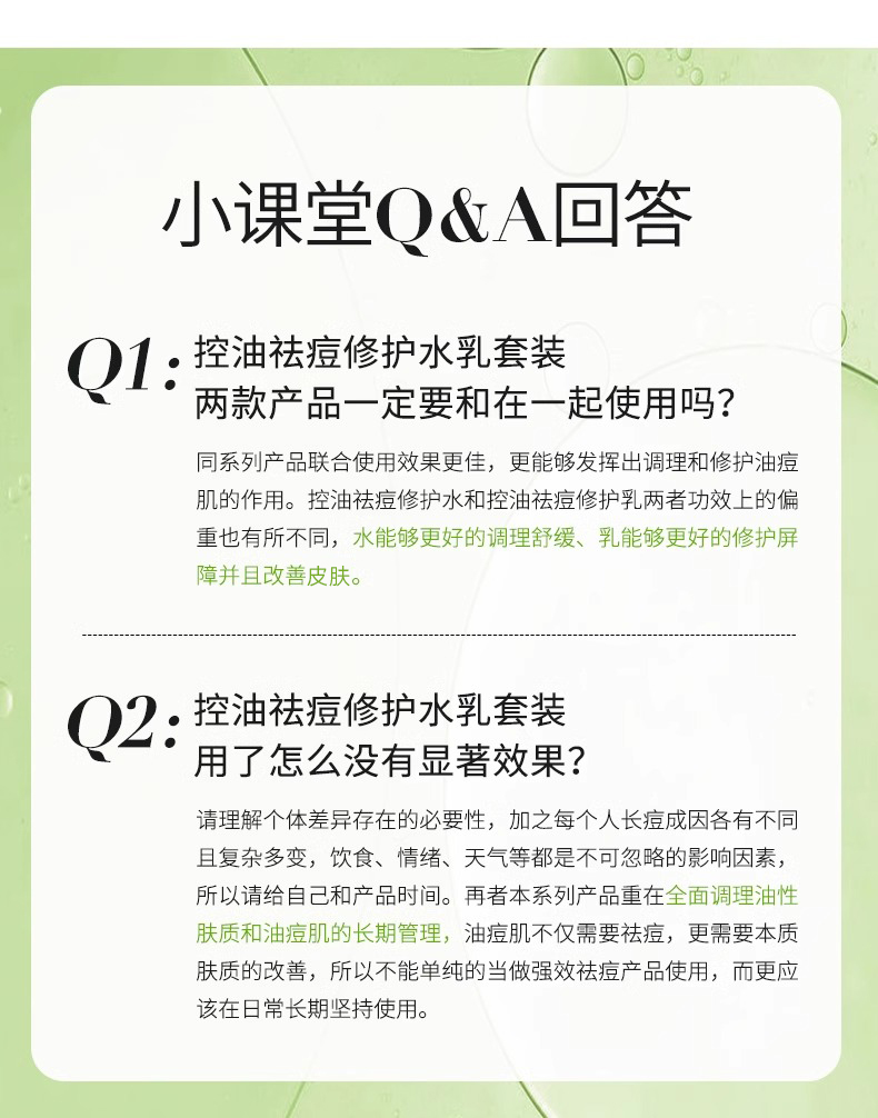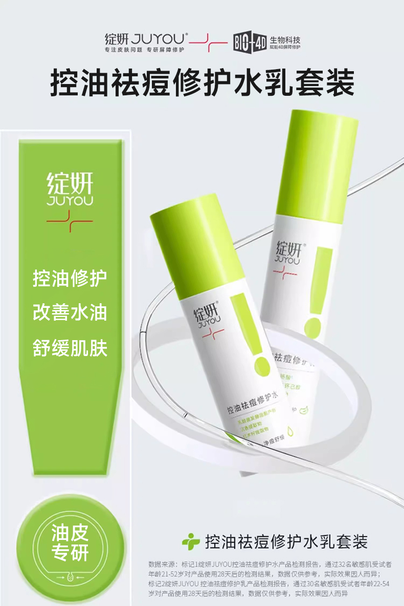 绽妍控油水乳油皮爽肤水乳液套装 清爽祛痘 修护平衡水油护肤套装
