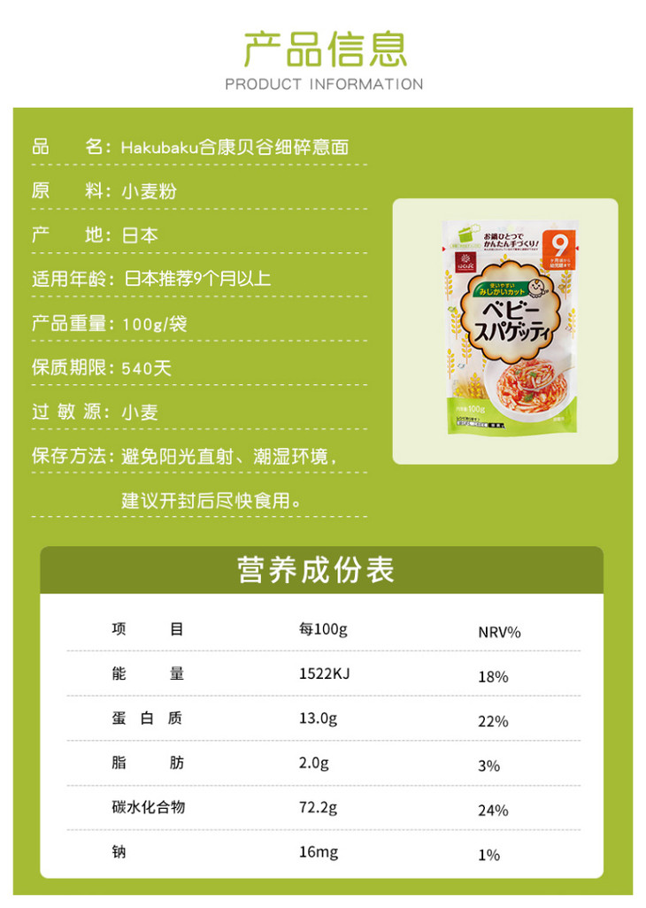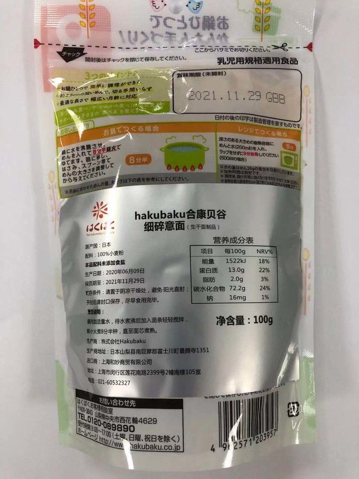 Hakubaku合康贝谷(黄金大地)细碎意面100克/包