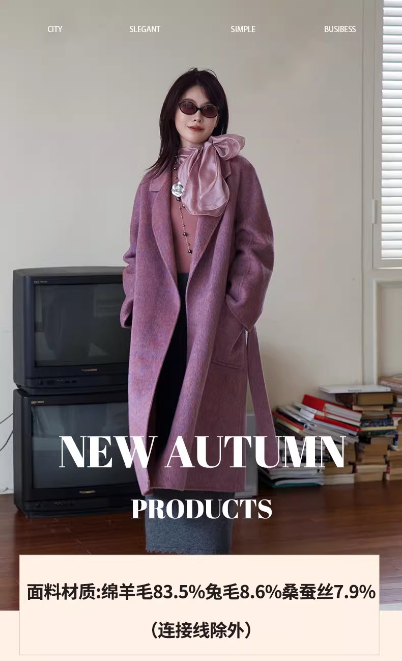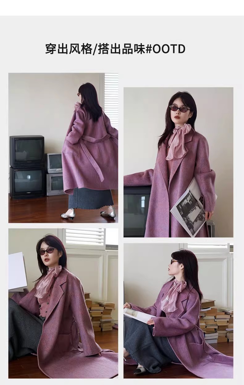 【门店同款】ENJOY2024年冬季柔韧与共瑰丽之夜腰带大衣 160045347