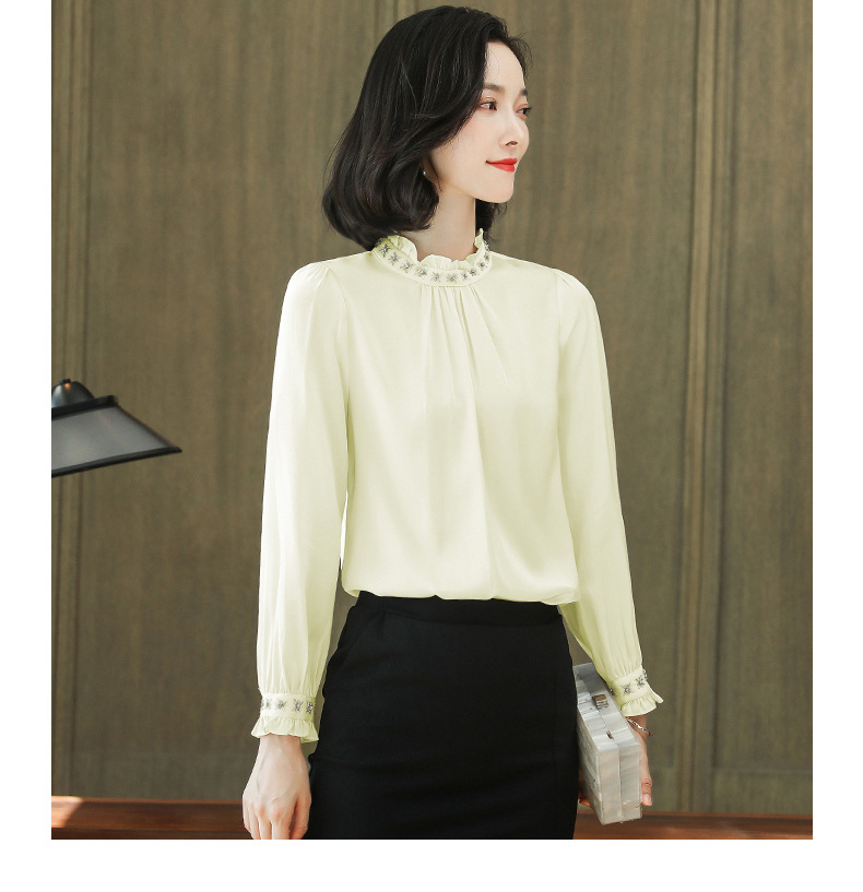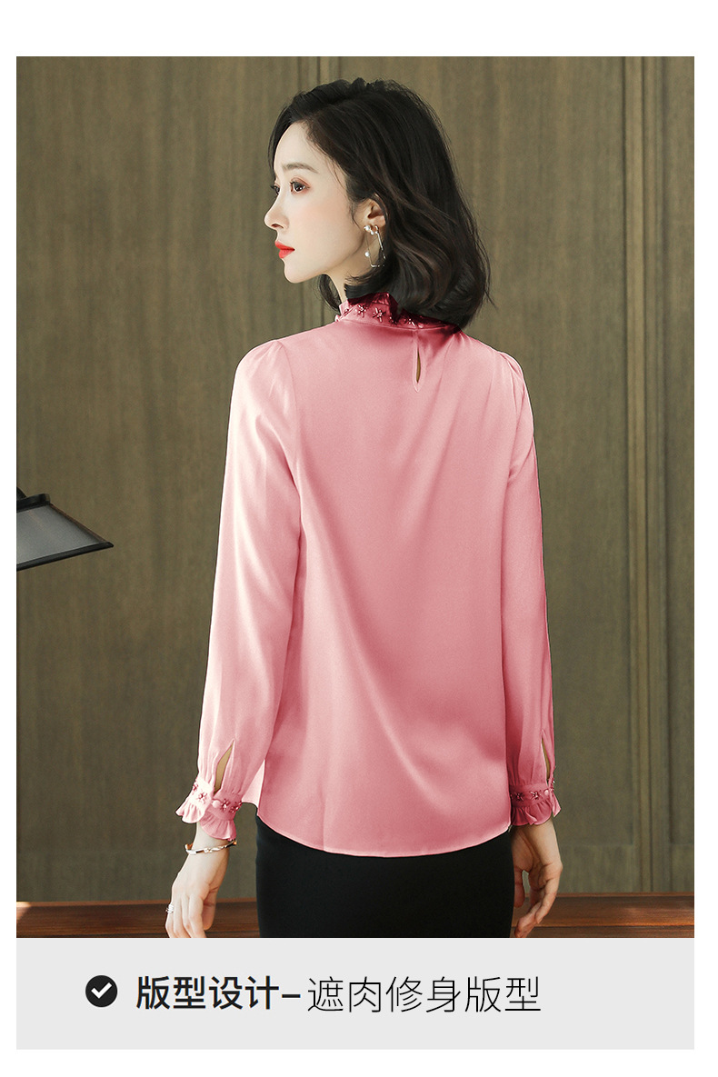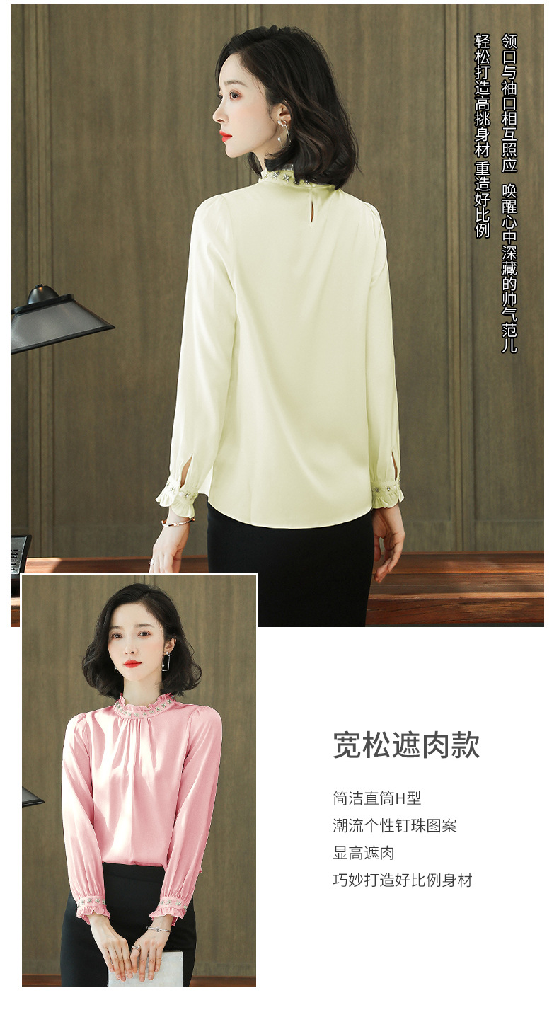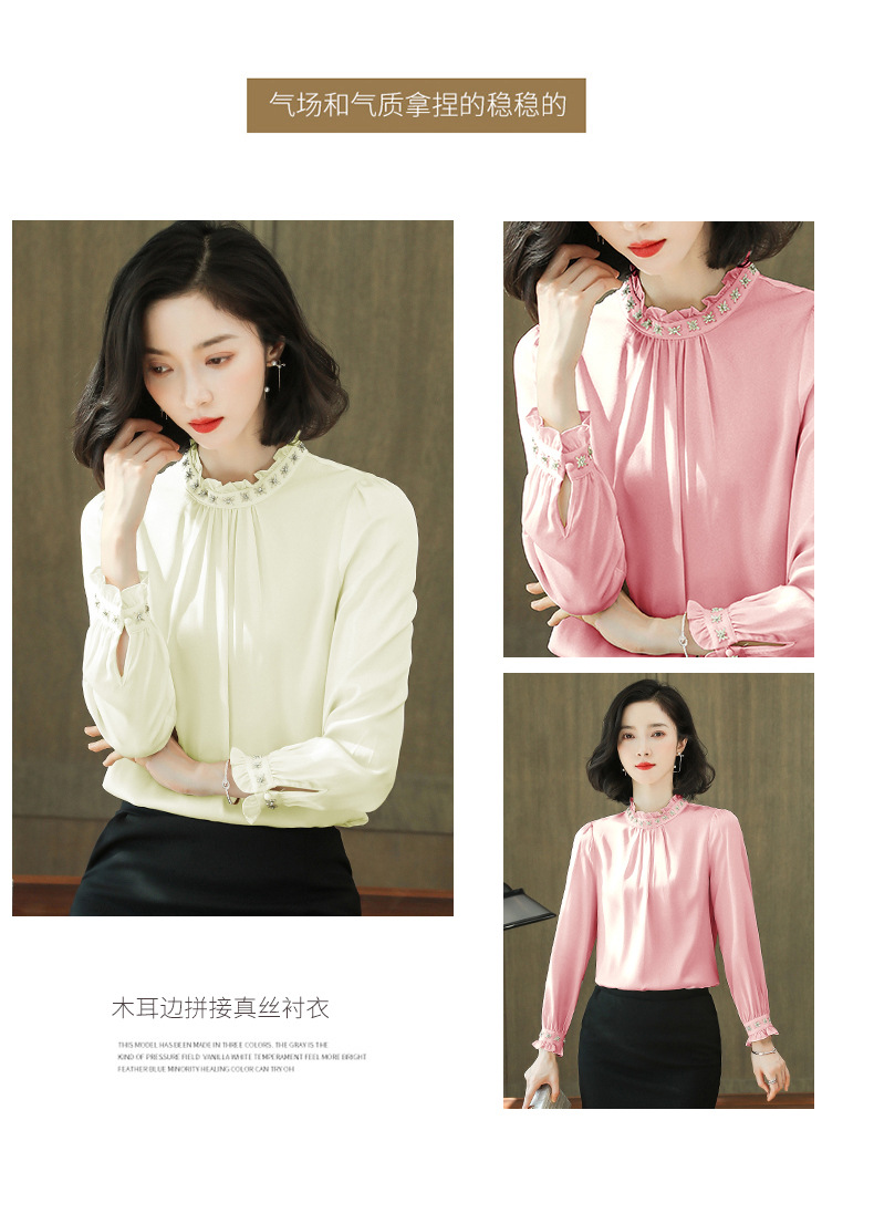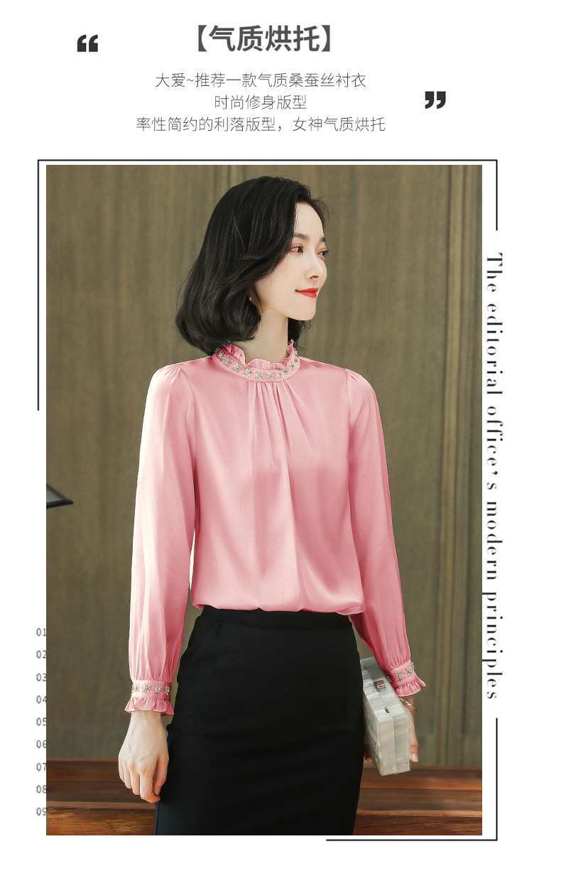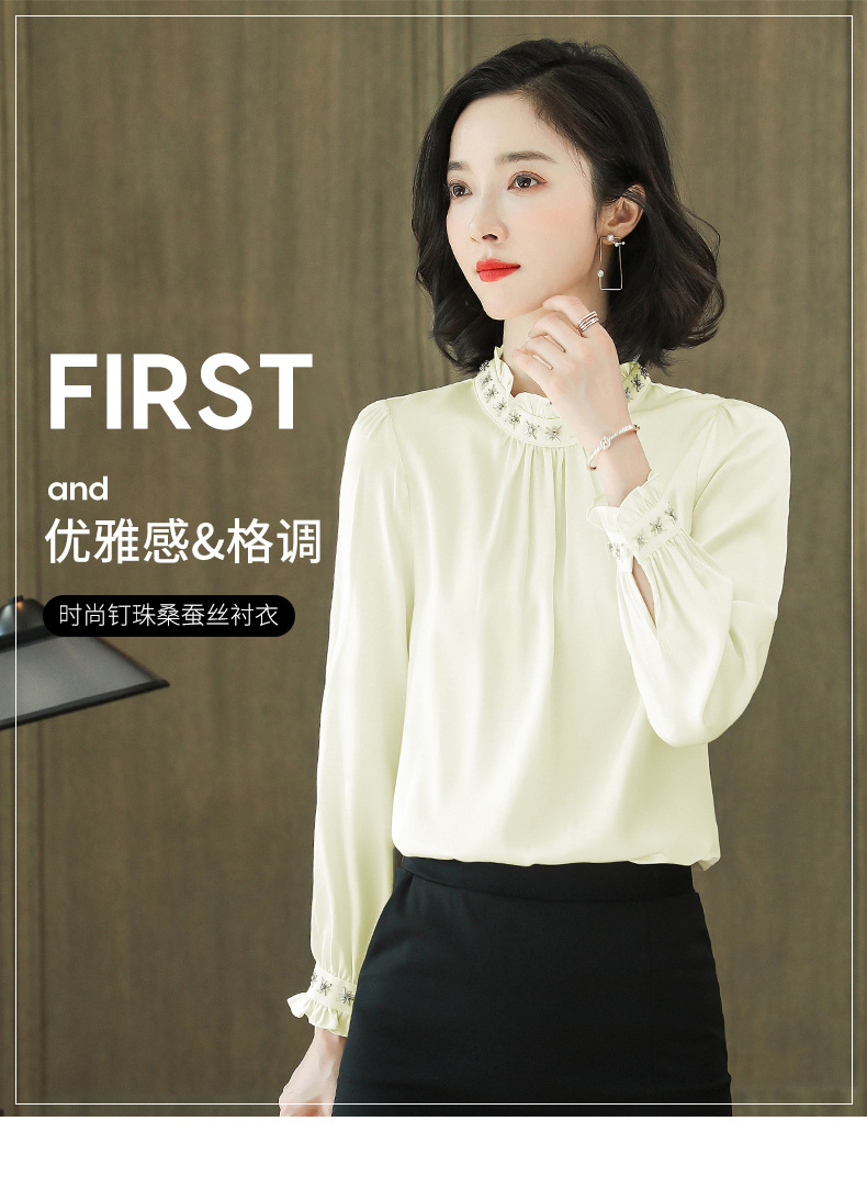 重磅真丝衬衫,长袖立领钉珠桑蚕丝上衣KQN-221221