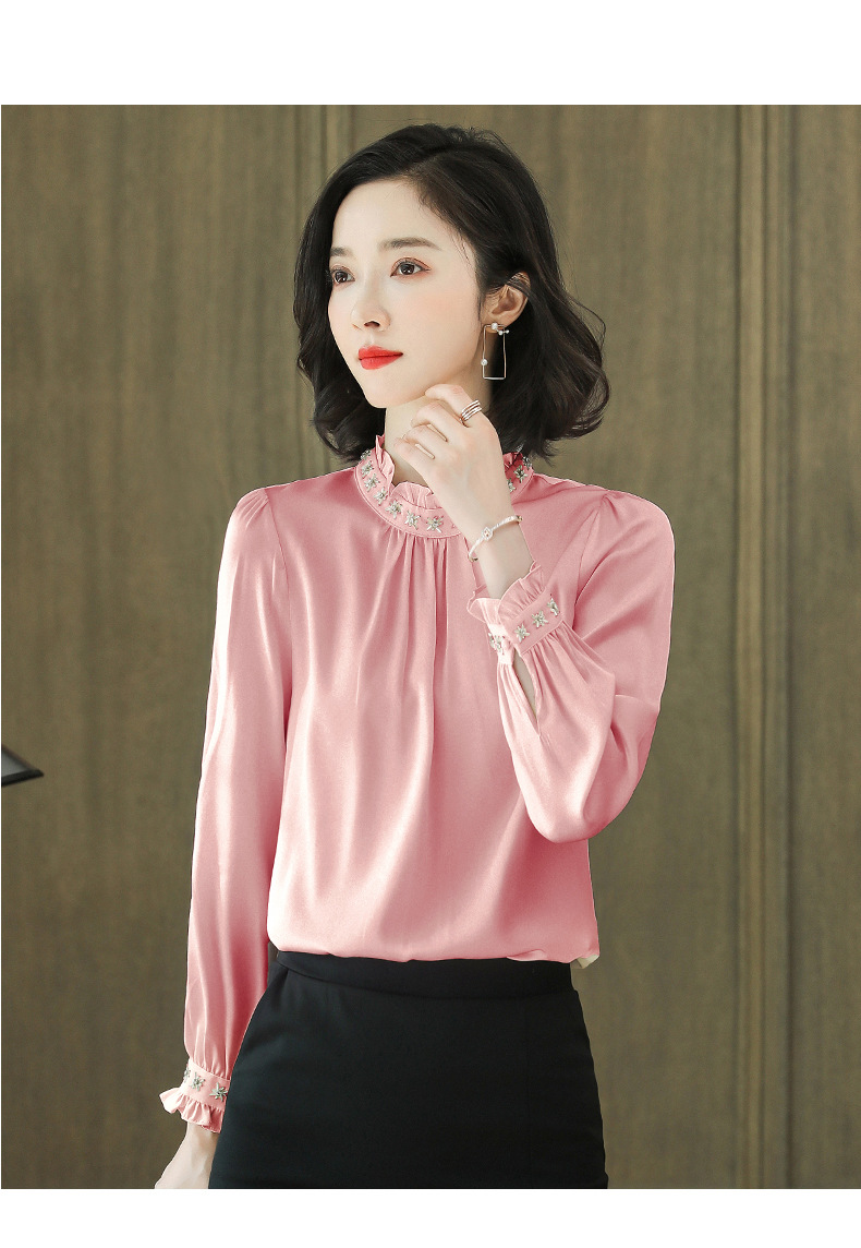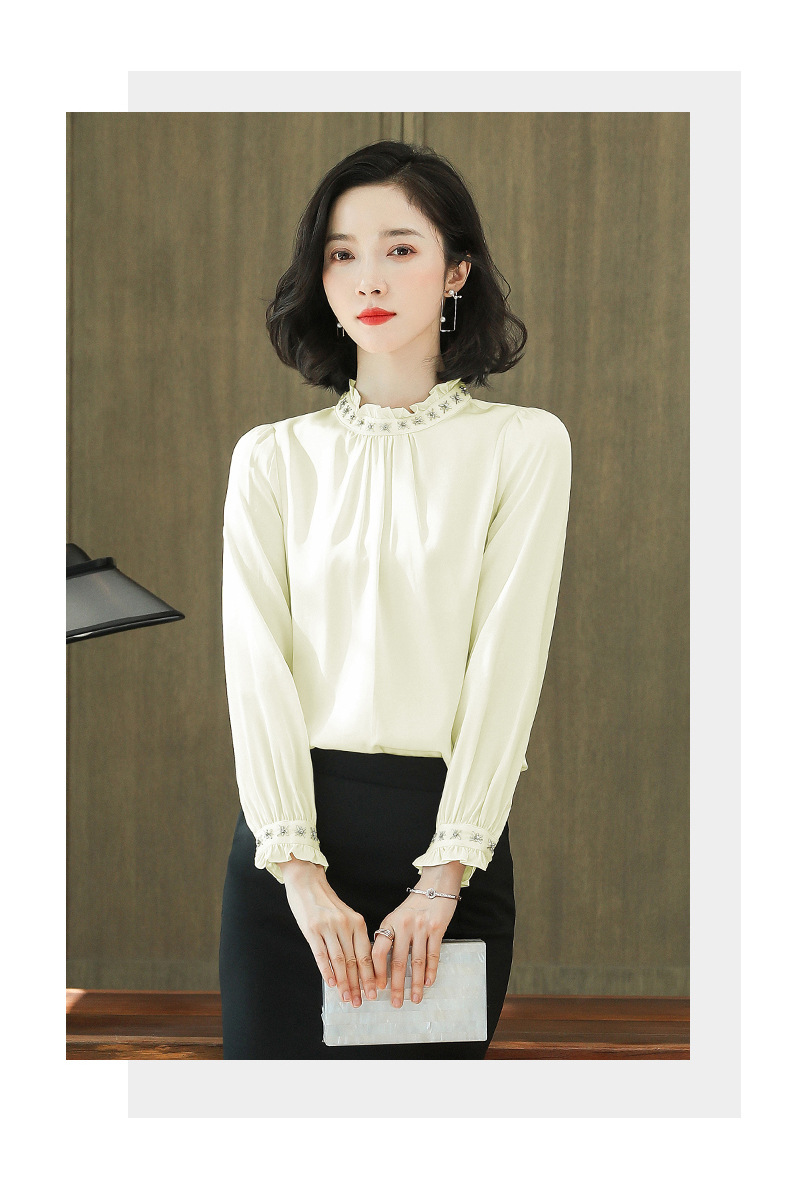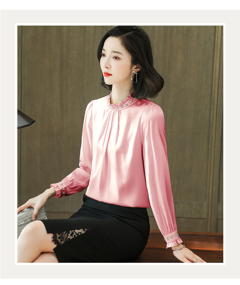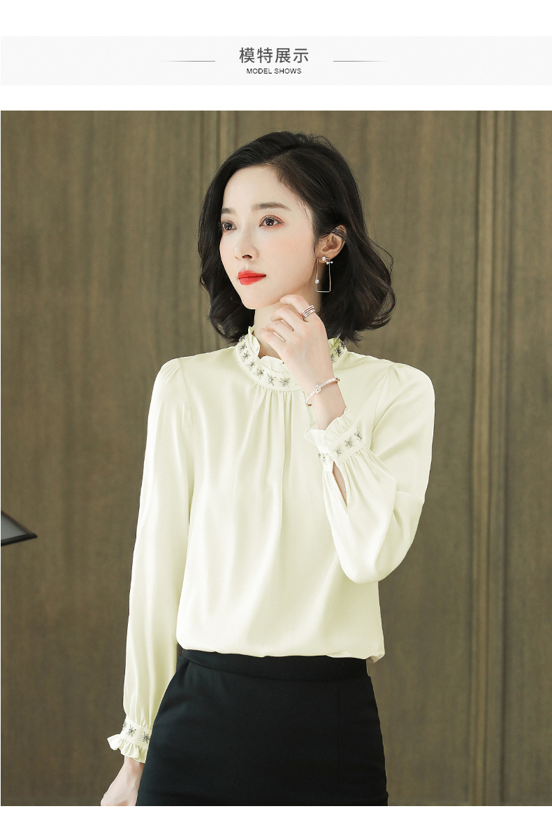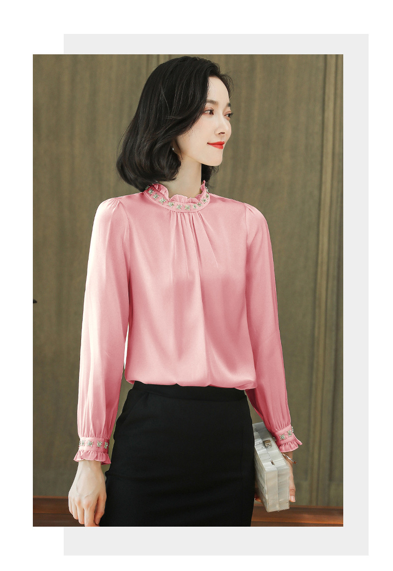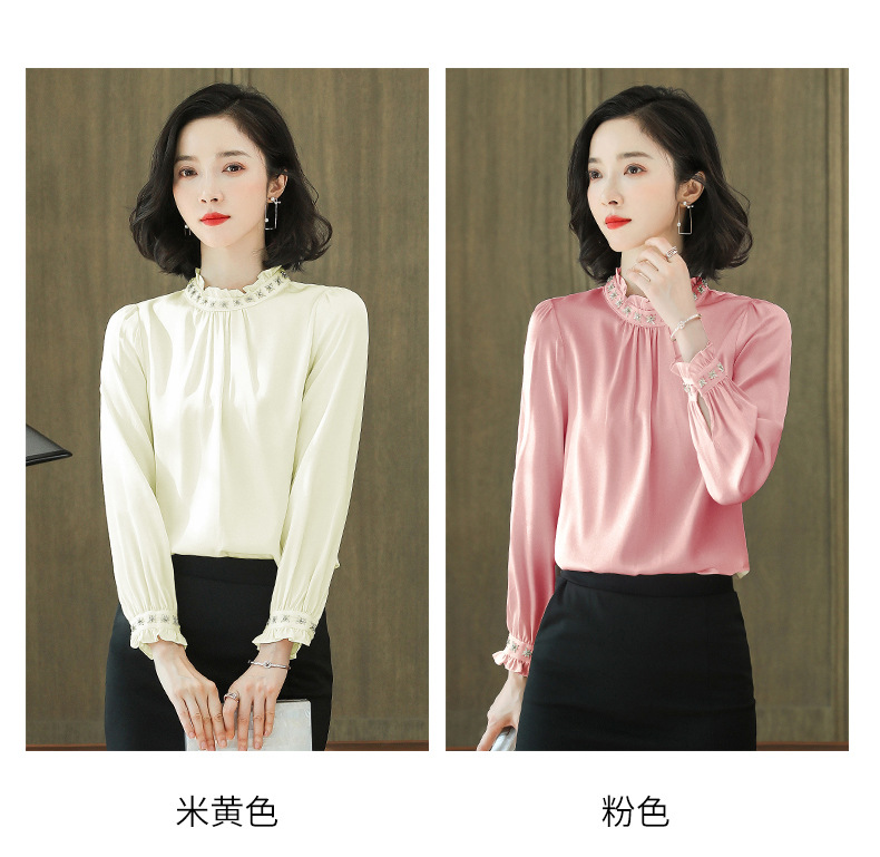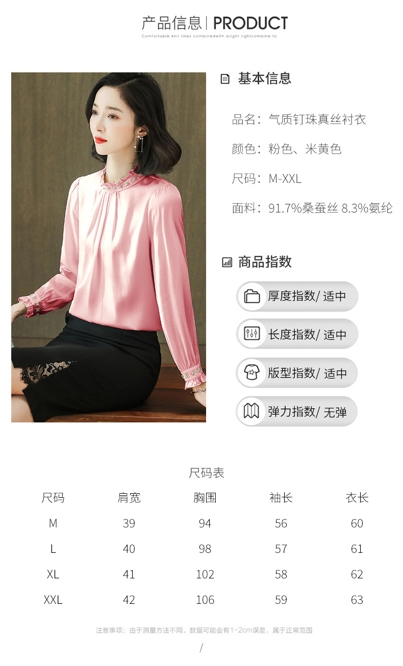 重磅真丝衬衫,长袖立领钉珠桑蚕丝上衣KQN-221221