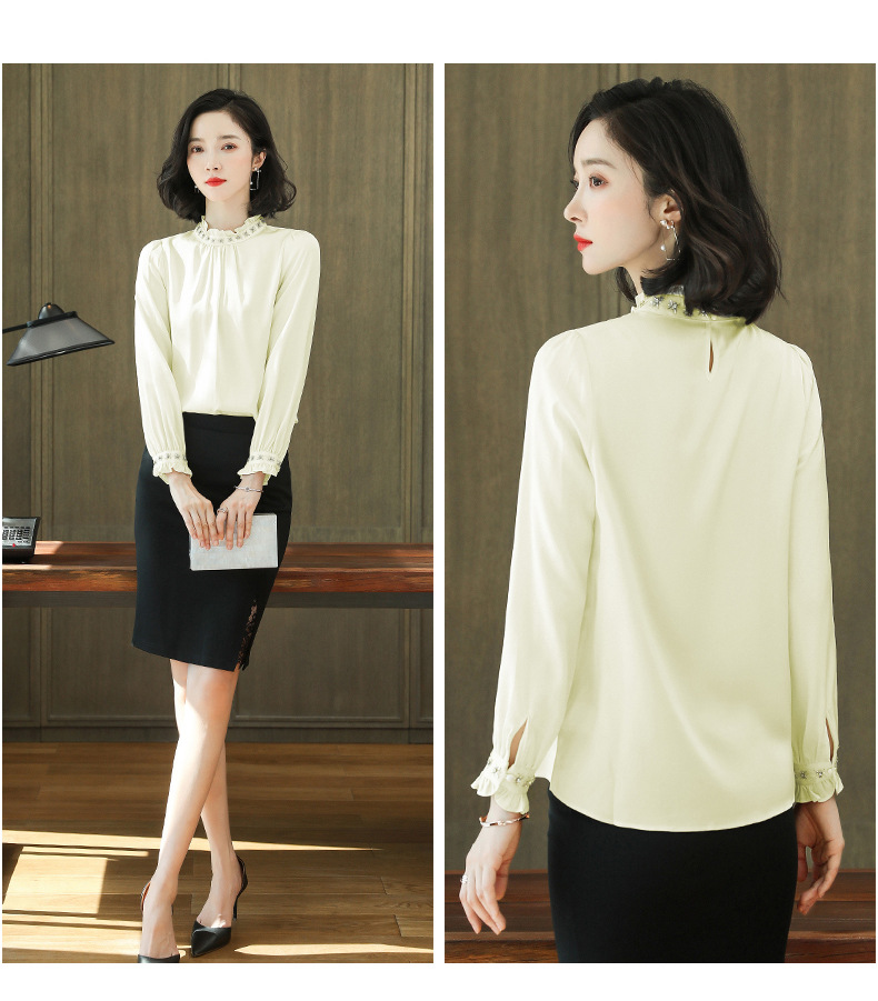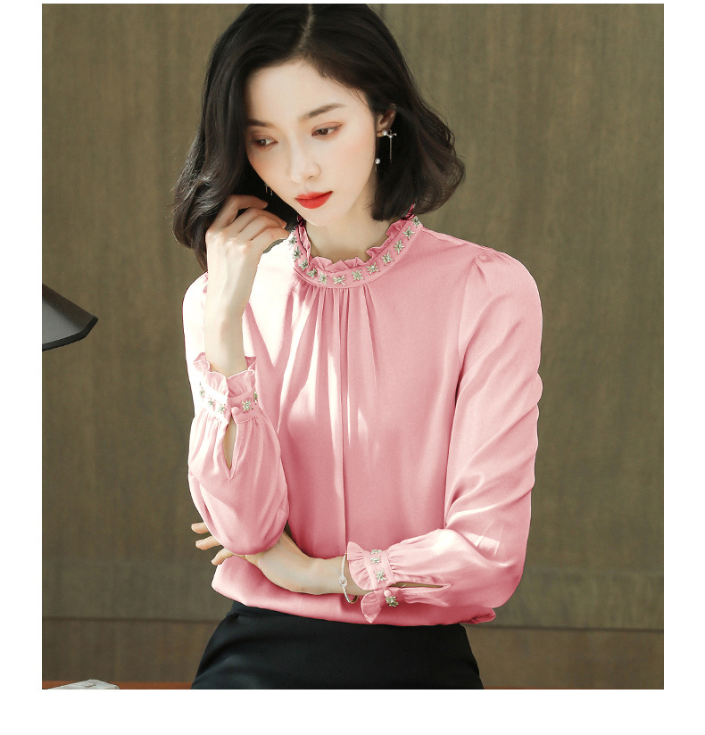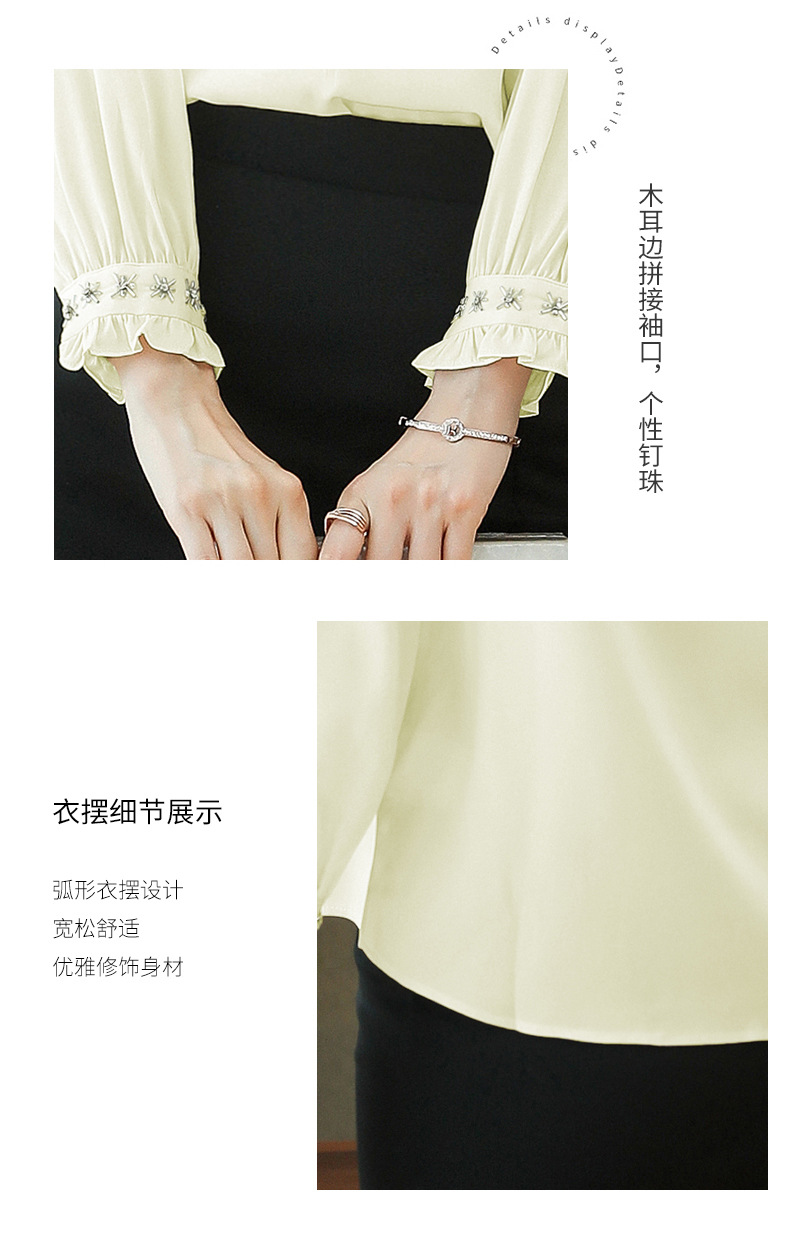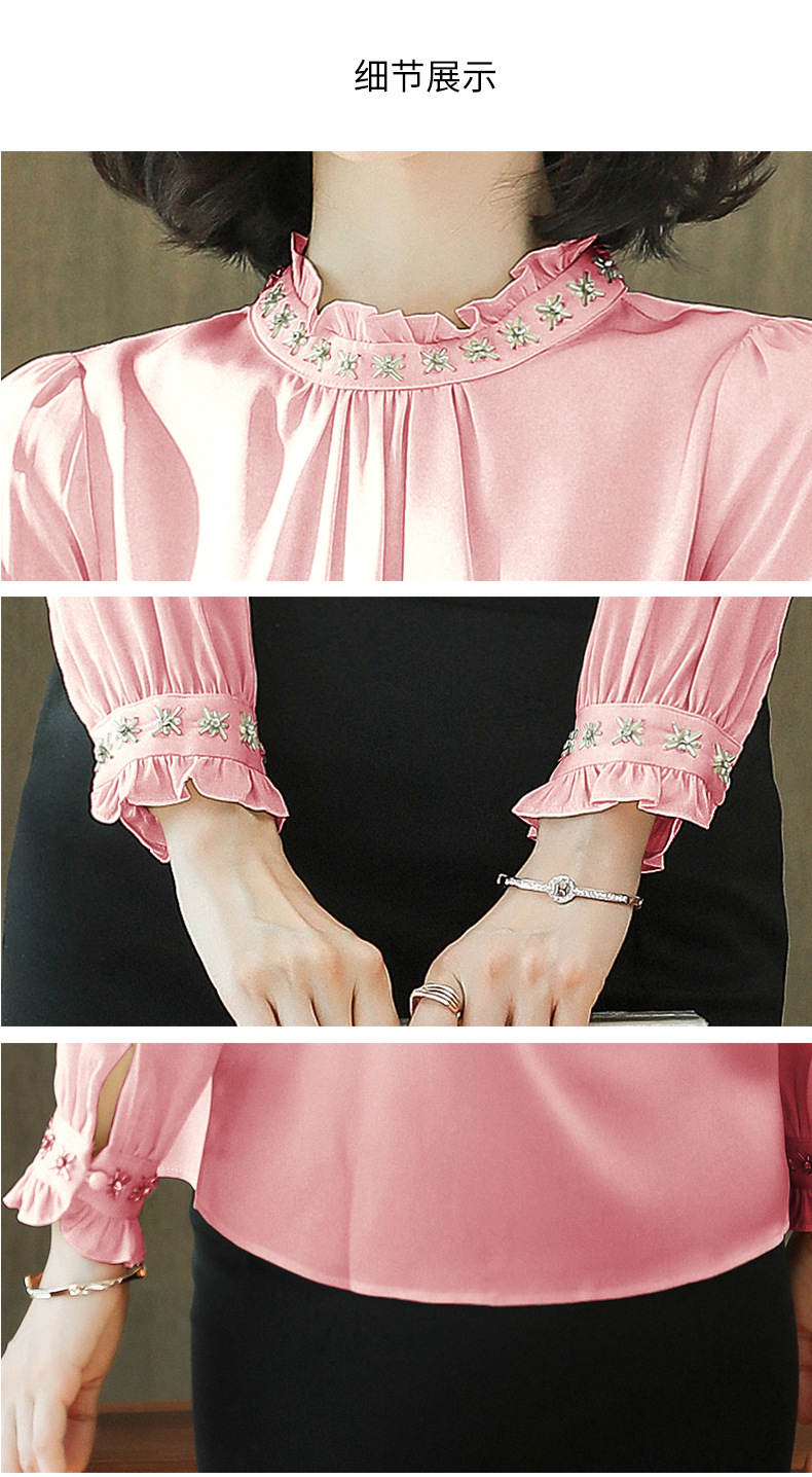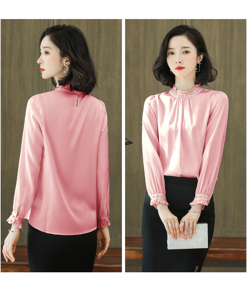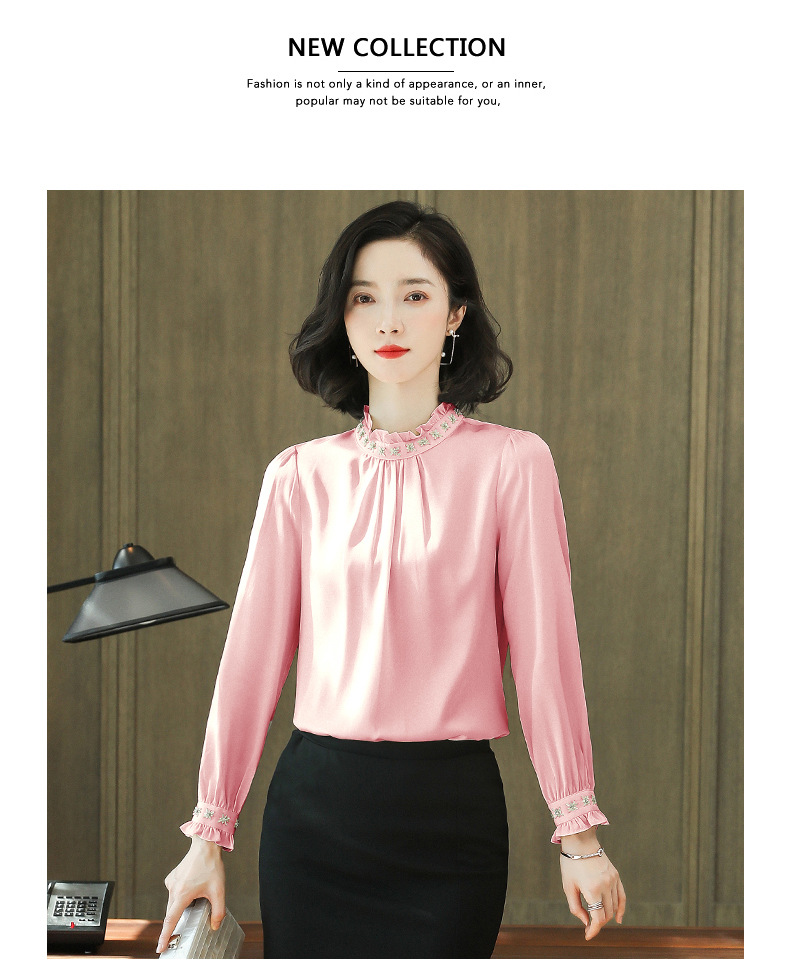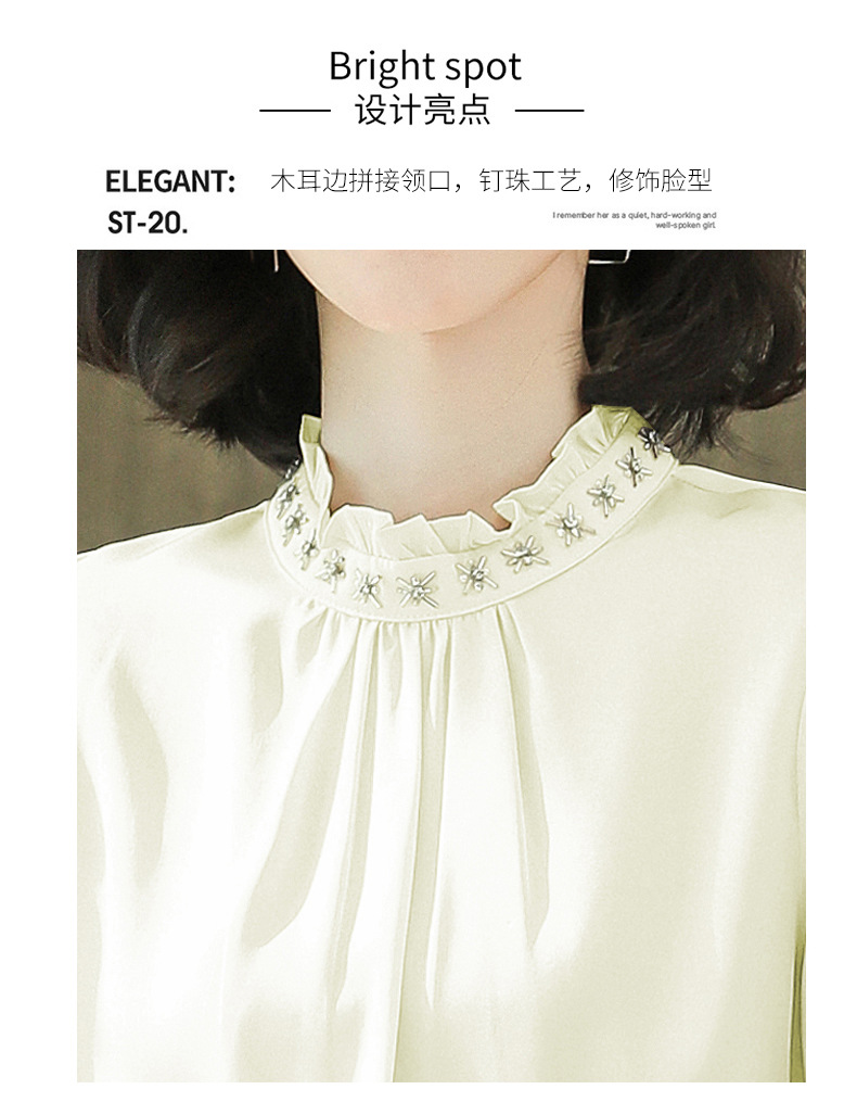 重磅真丝衬衫,长袖立领钉珠桑蚕丝上衣KQN-221221