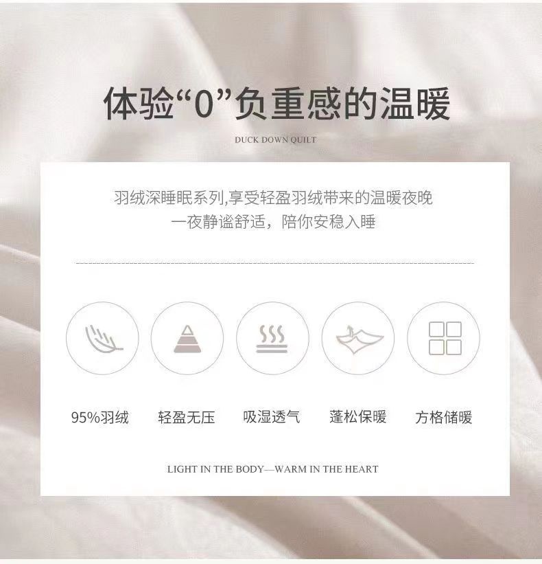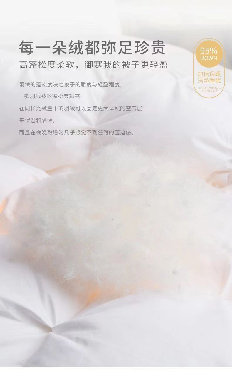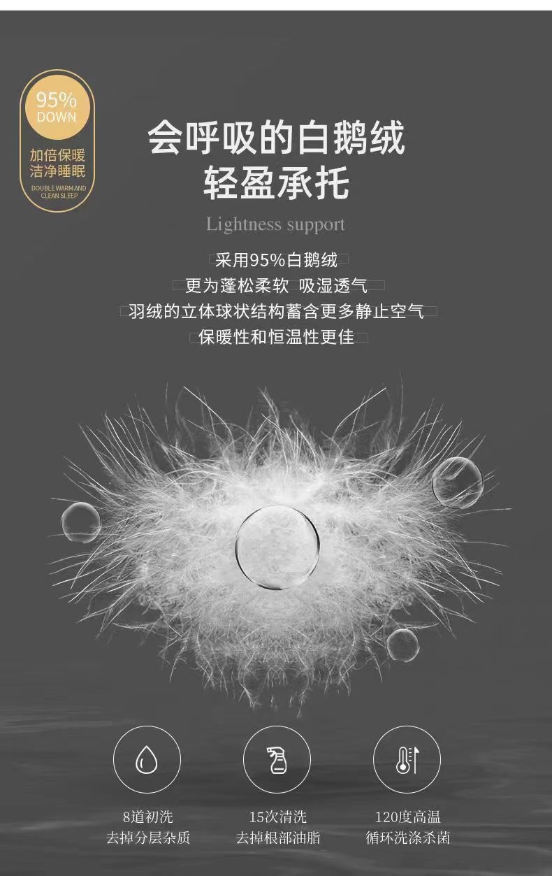 【95白鹅绒,1300克高填充】白鹅绒羽绒被