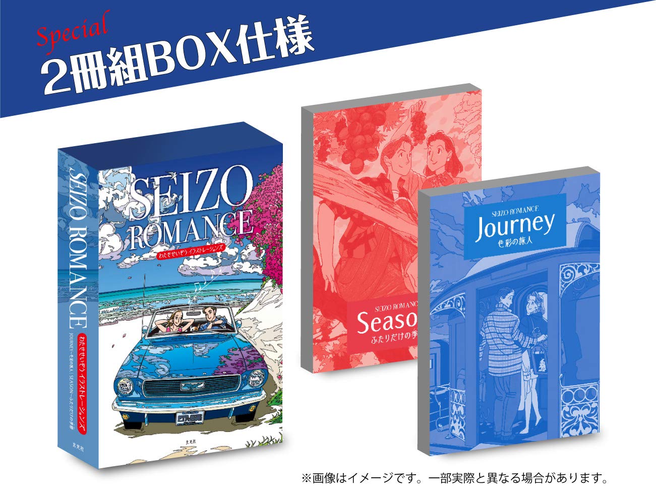 ケース入り2冊セットとなる本書は、わたせ氏の多岐にわたるイラストレーションを集めた初の本格的作品集です。まず青い表紙の「JOURNEY 色彩の旅人」は、わたせ氏の膨大なイラストレーションをカテゴリーごとに分類し、厳選して掲載。制作プロセスの取材記事やロングインタビューも掲載しています。赤い表紙の「SEASONS ふたりだけの季節(シーズン)」は、毎年製作・刊行されているわたせ氏のオリジナルカレンダーの30年以上にわたる全ビジュアルを、絵に添えられるポエムとともに収録。わたせ氏の世界を堪能し、その長きにわたるキャリアを俯瞰できる内容となっています。