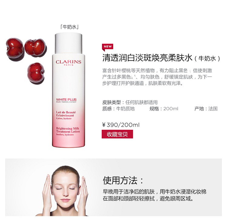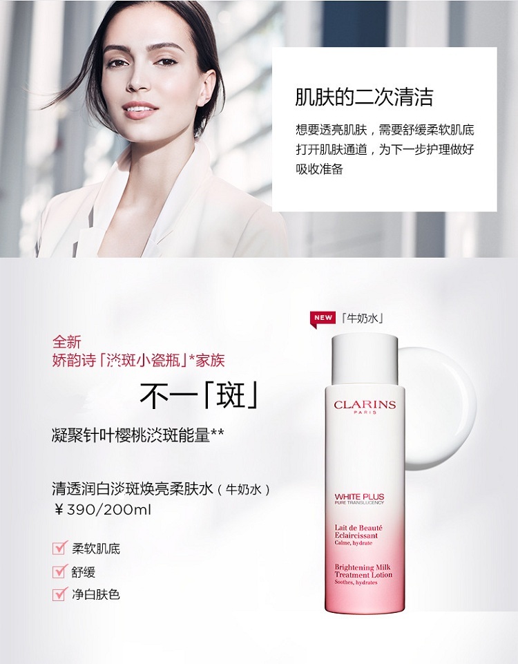 CLARINS/娇韵诗 「牛奶水」清透润白柔肤水爽肤水200ML「丰润型」