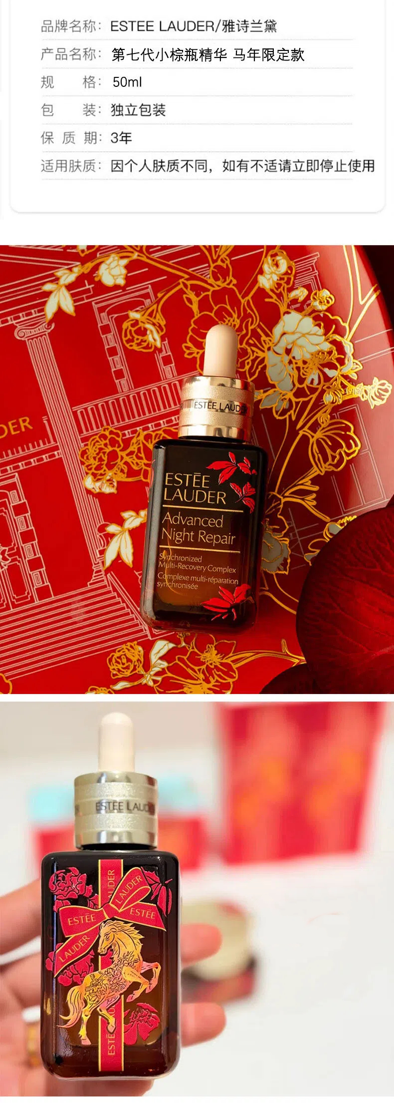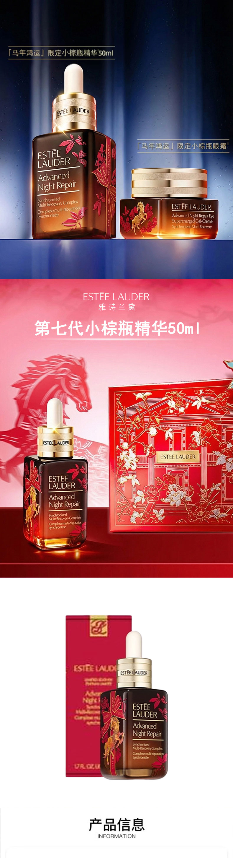 心选丨马年限定 雅诗兰黛小棕瓶精华50ml+眼霜15ml配礼盒礼袋 顺丰发货 合并订单不发货