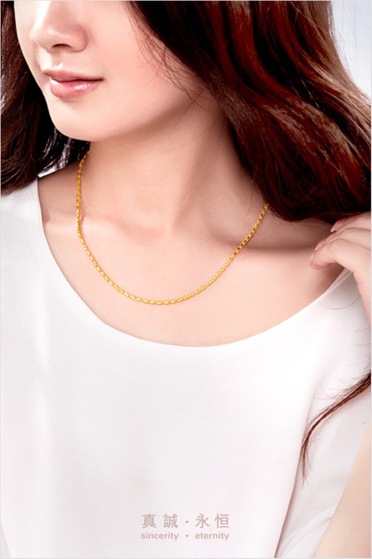 周大福时尚车花足金黄金项链素链计价F184587 约10.3g
