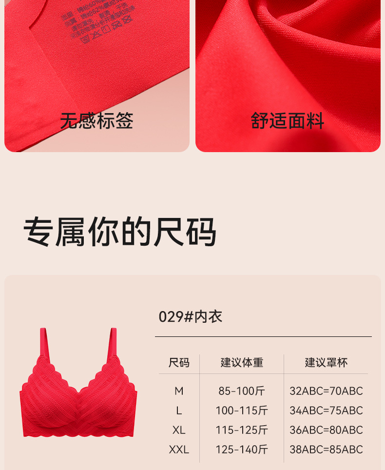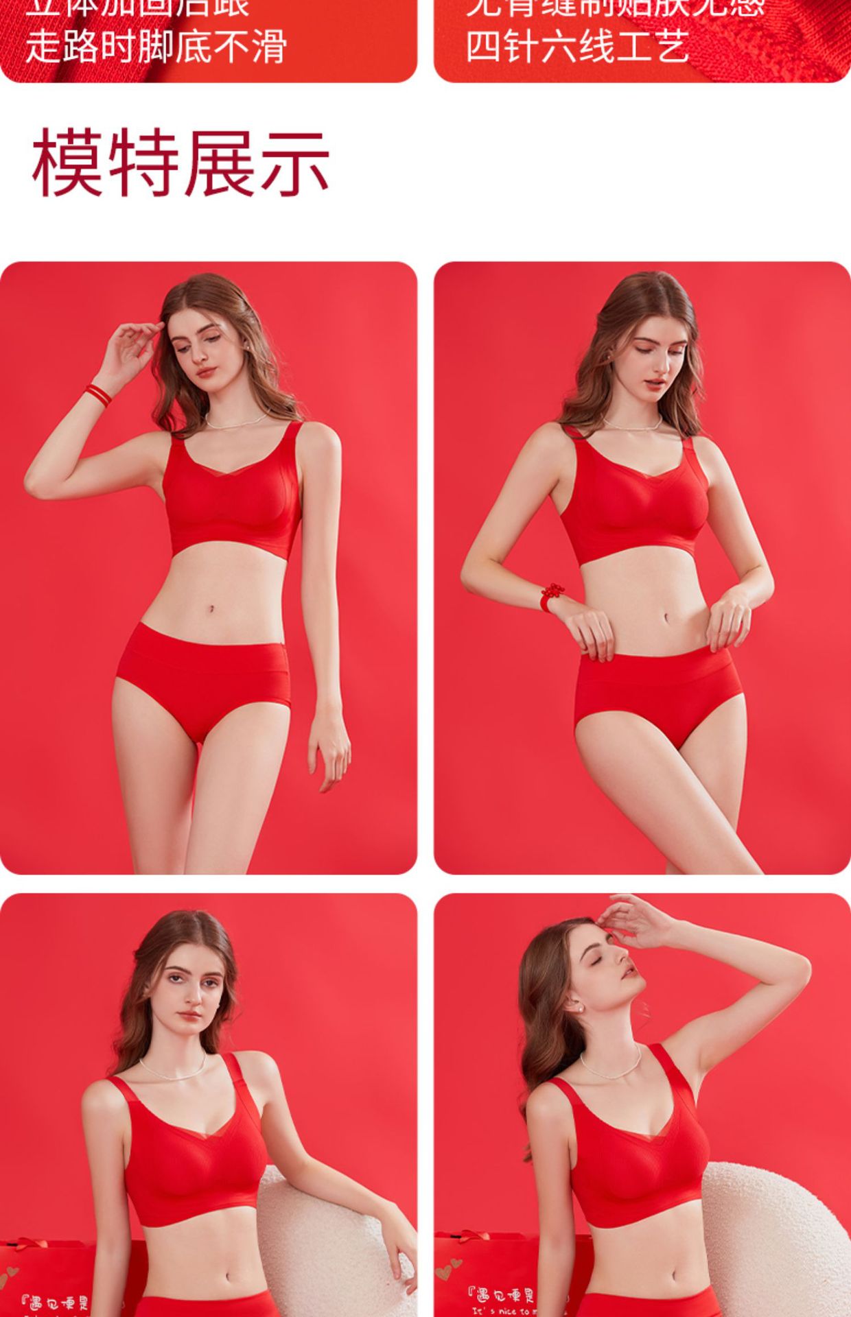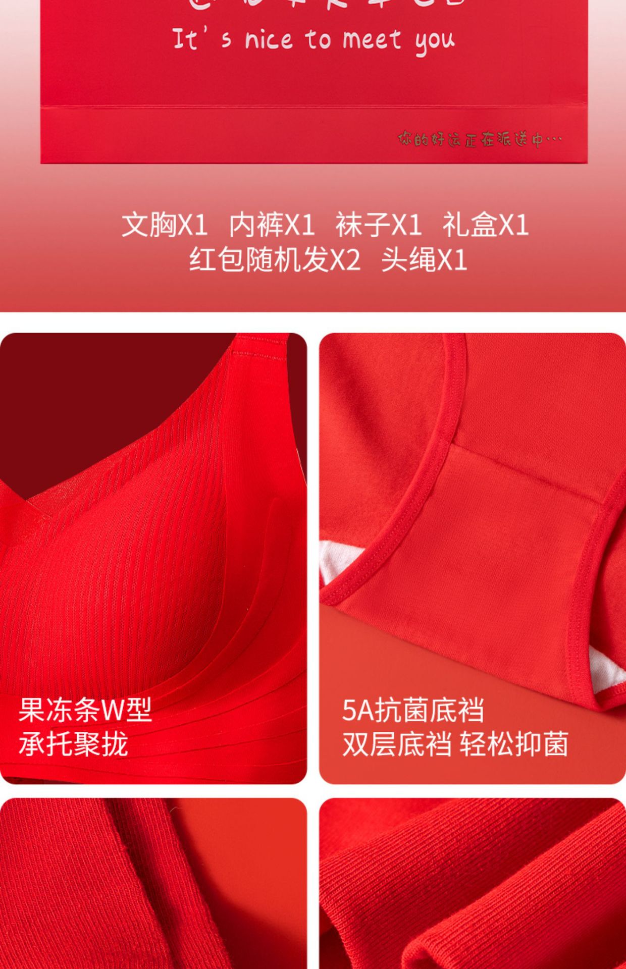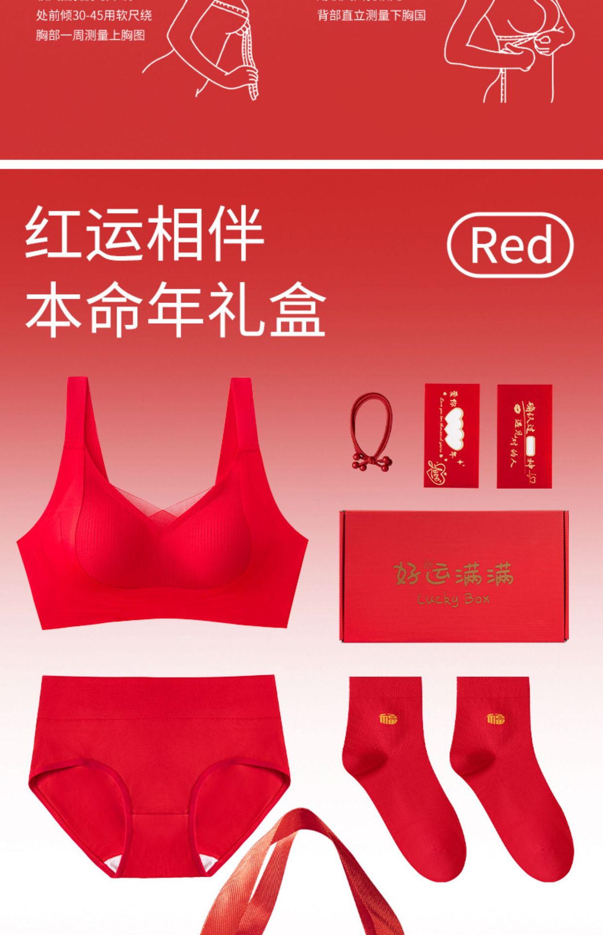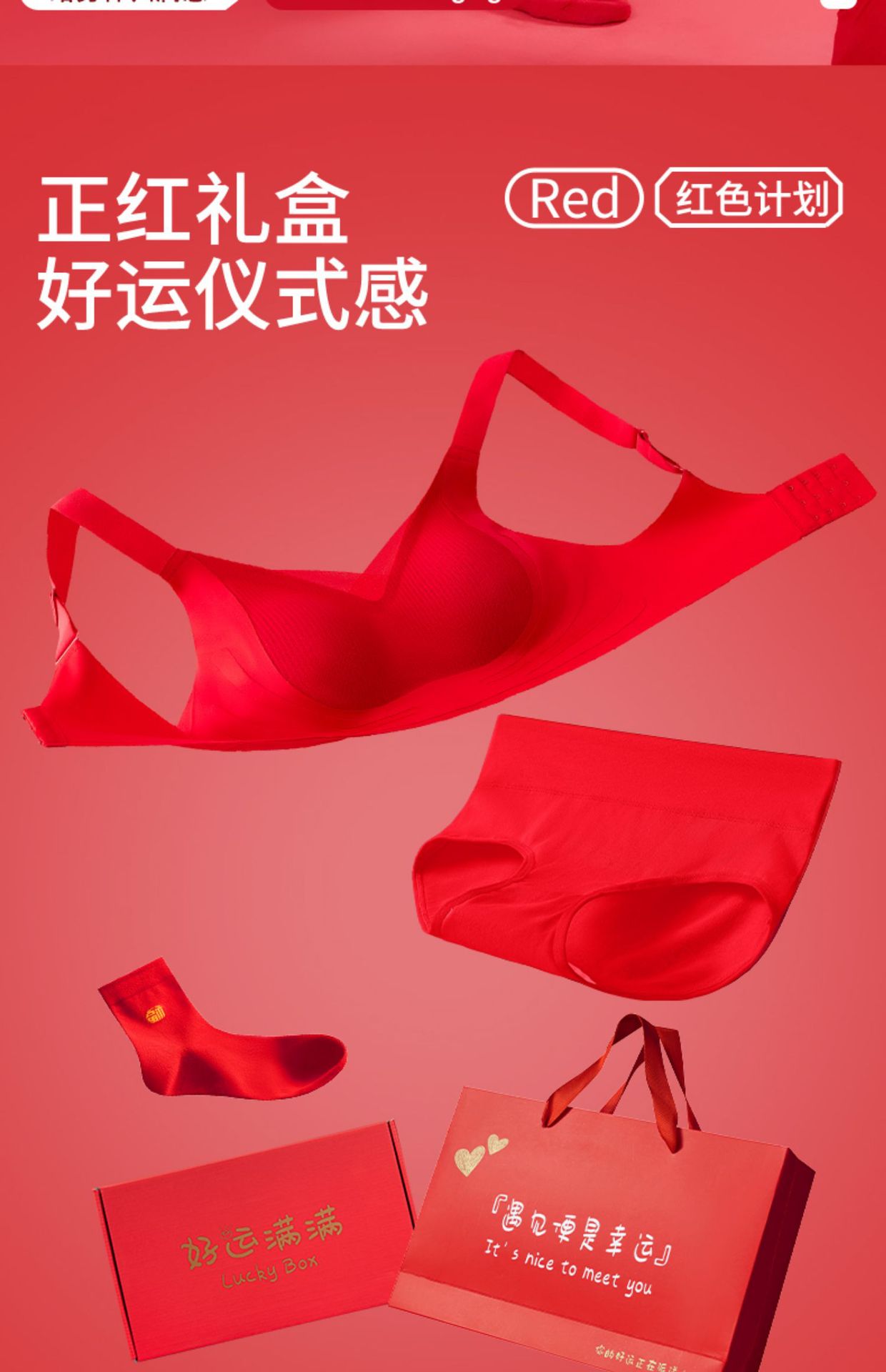 【红运相伴】蛇年本命年红色内衣内裤 喜庆结婚大红无痕文胸礼盒装
