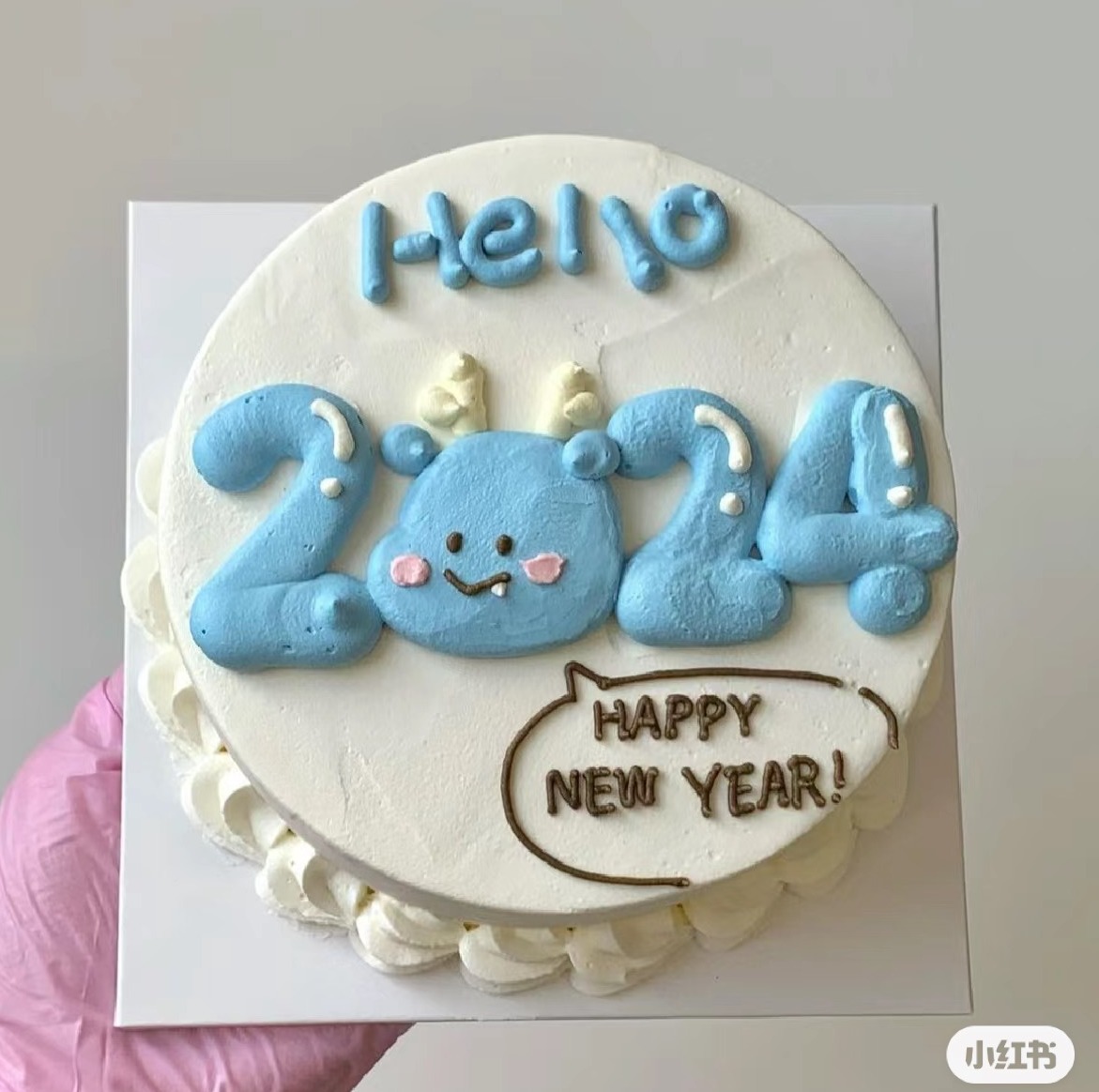 【双色可选】可爱卡通风手绘元旦新年蛋糕【HELLO 2024】