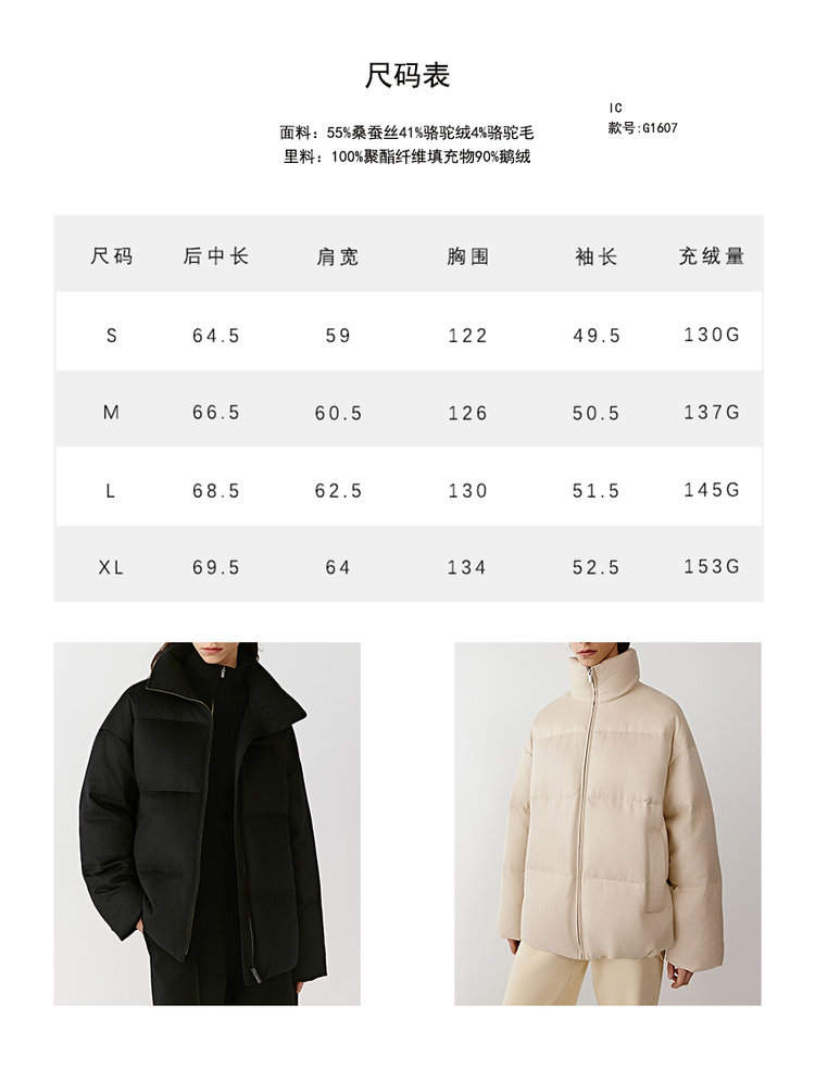 【高品质私服】【IC丝驼绒羽绒服】绒朵高蓬松度 羽绒久穿依旧蓬松G1607-CC【无标出货 介意慎拍】