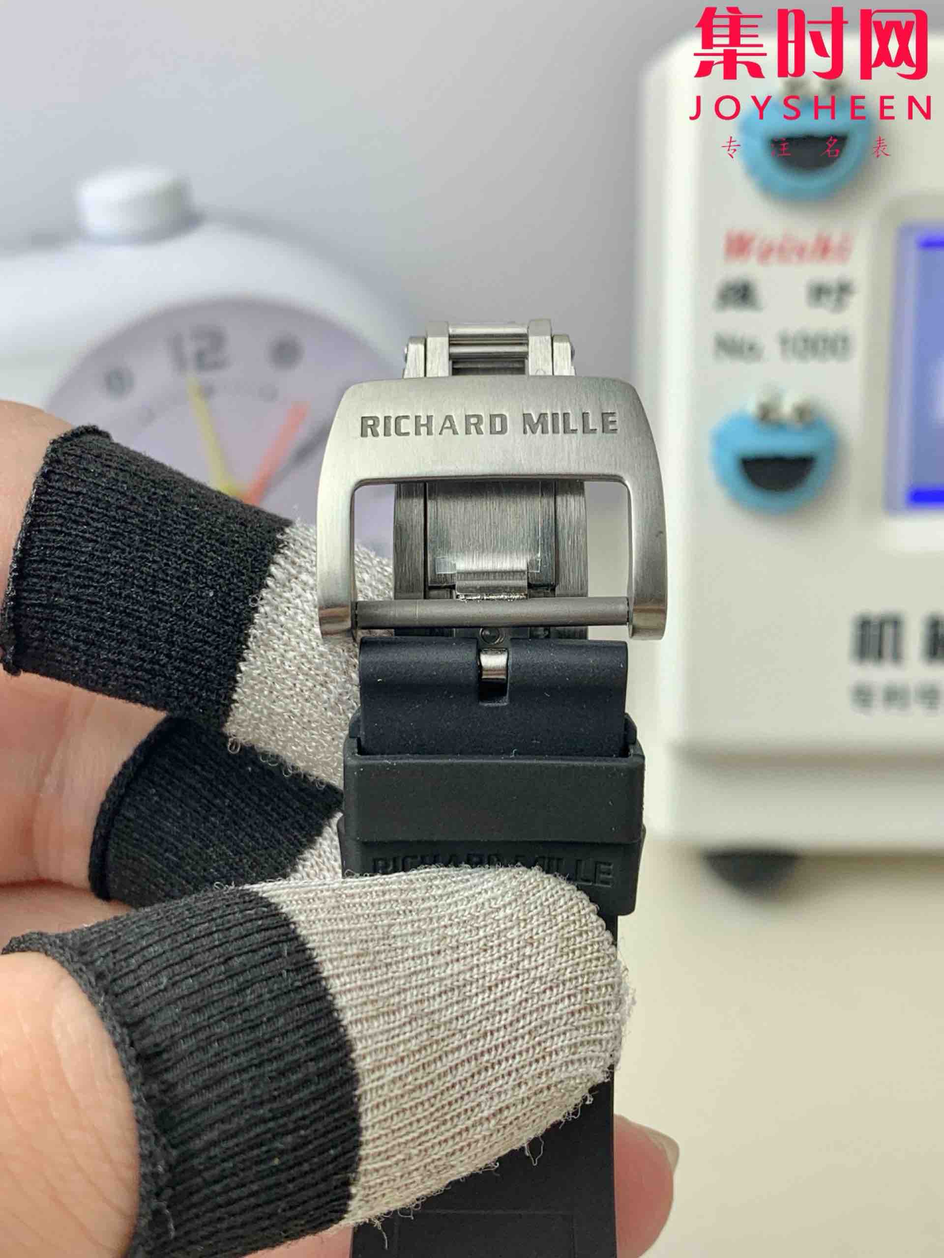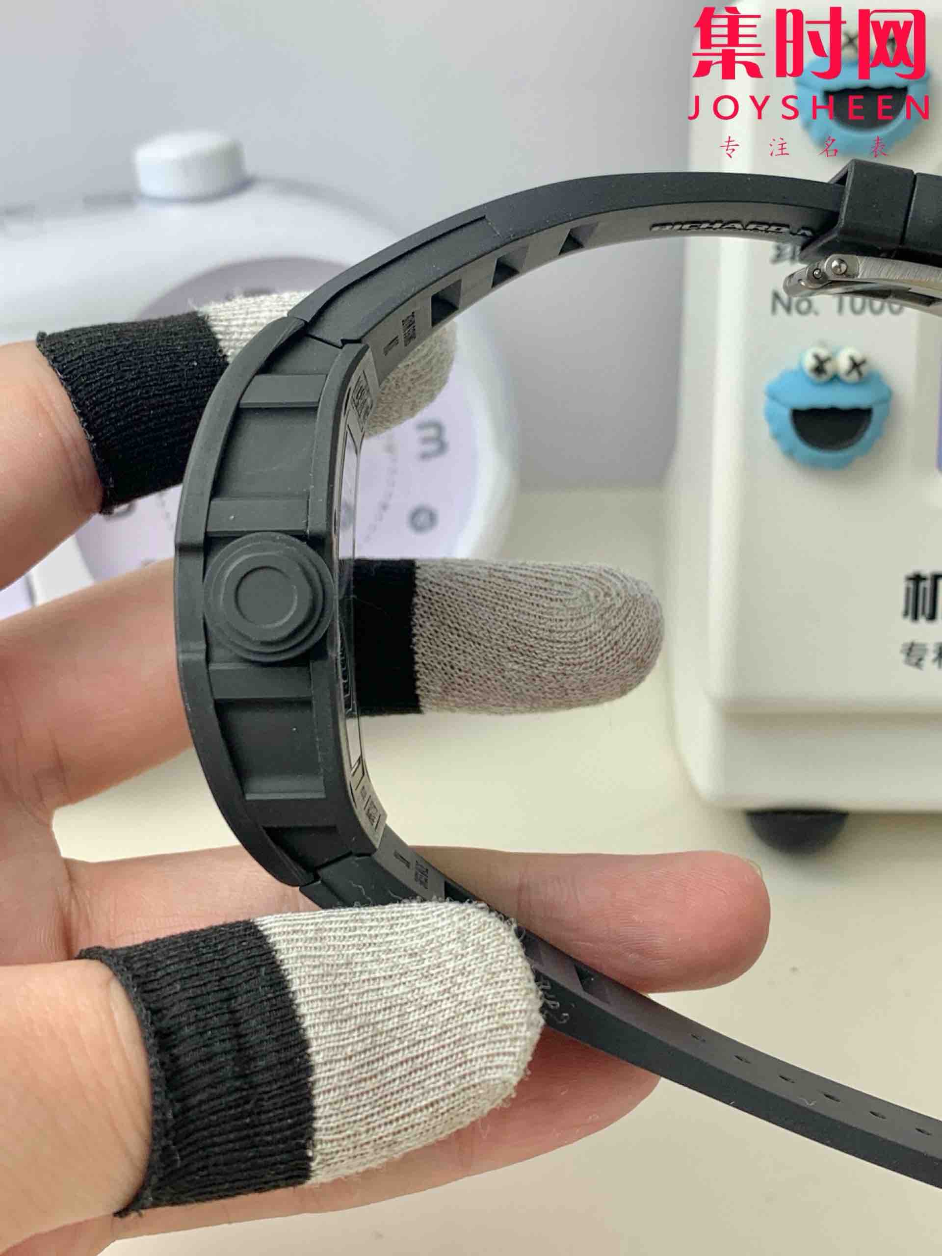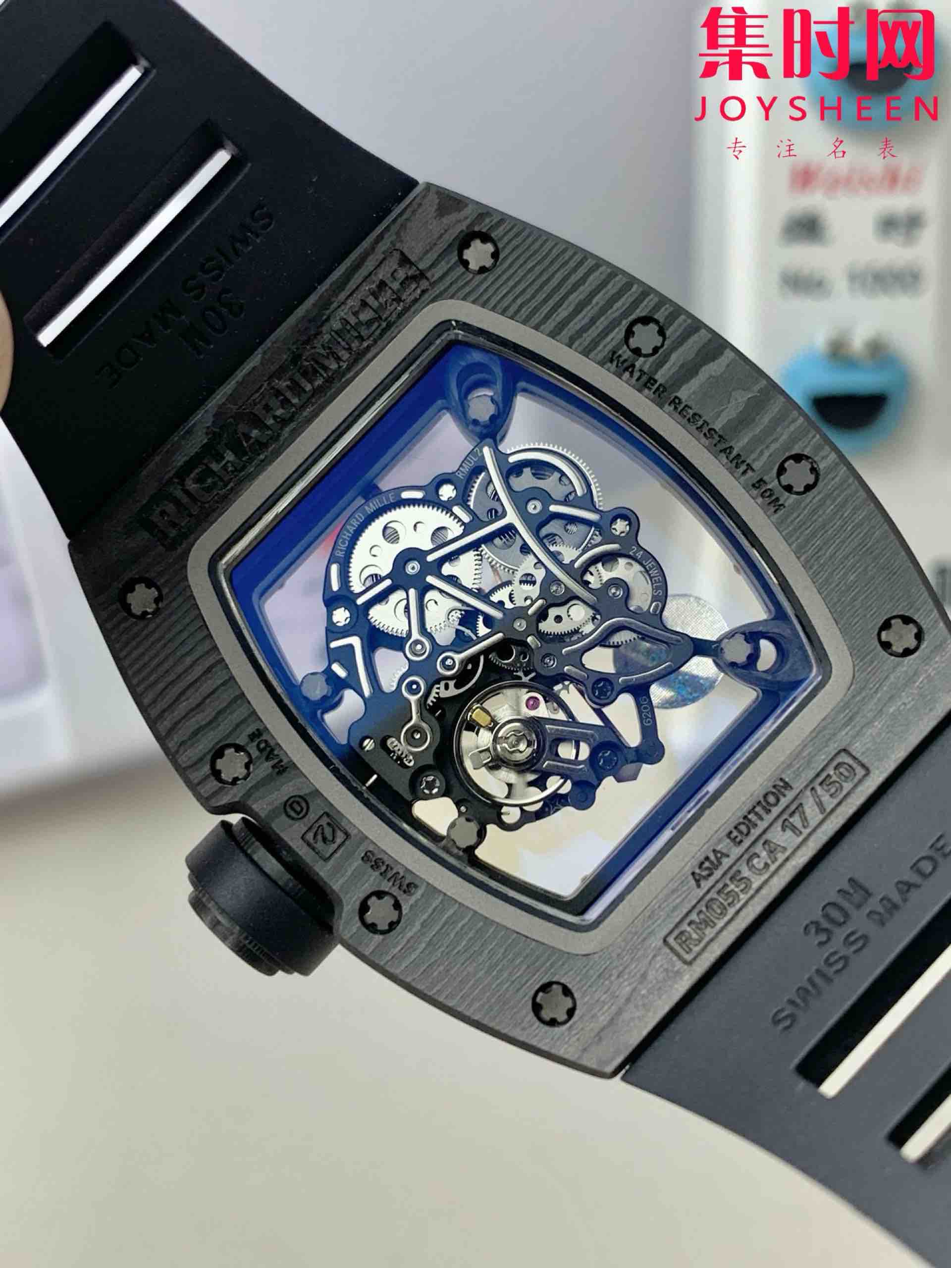 理查德米勒 APS新款RM055 RM55 黑金碳 碳纤维壳 男士腕表 丹东RMUL2一体机 里查德以其轻便时尚为主题,我们所有的金属件都采用钛金属制作同步原版(看见的看不见的金属配件全是钛),作为亿万富豪的入场券,我们采用定制丹东一体机芯RMUL2,表壳,表带以及所有配件