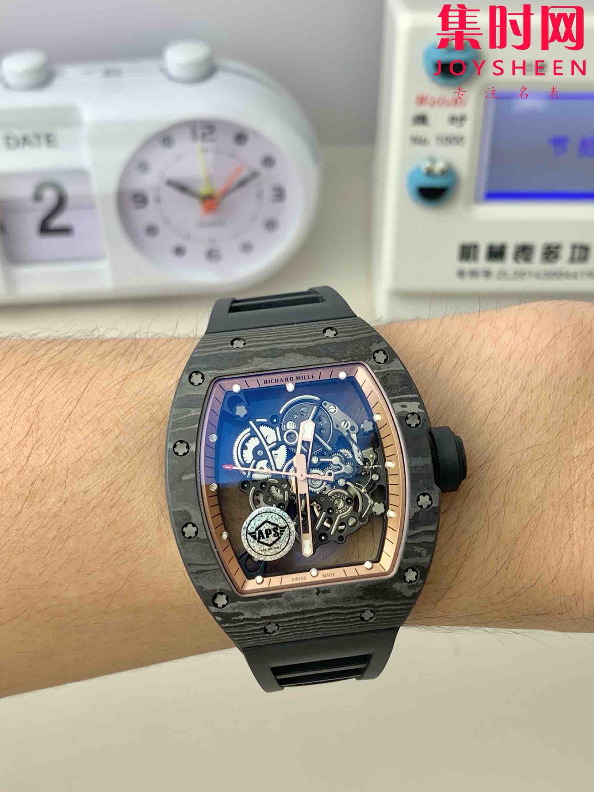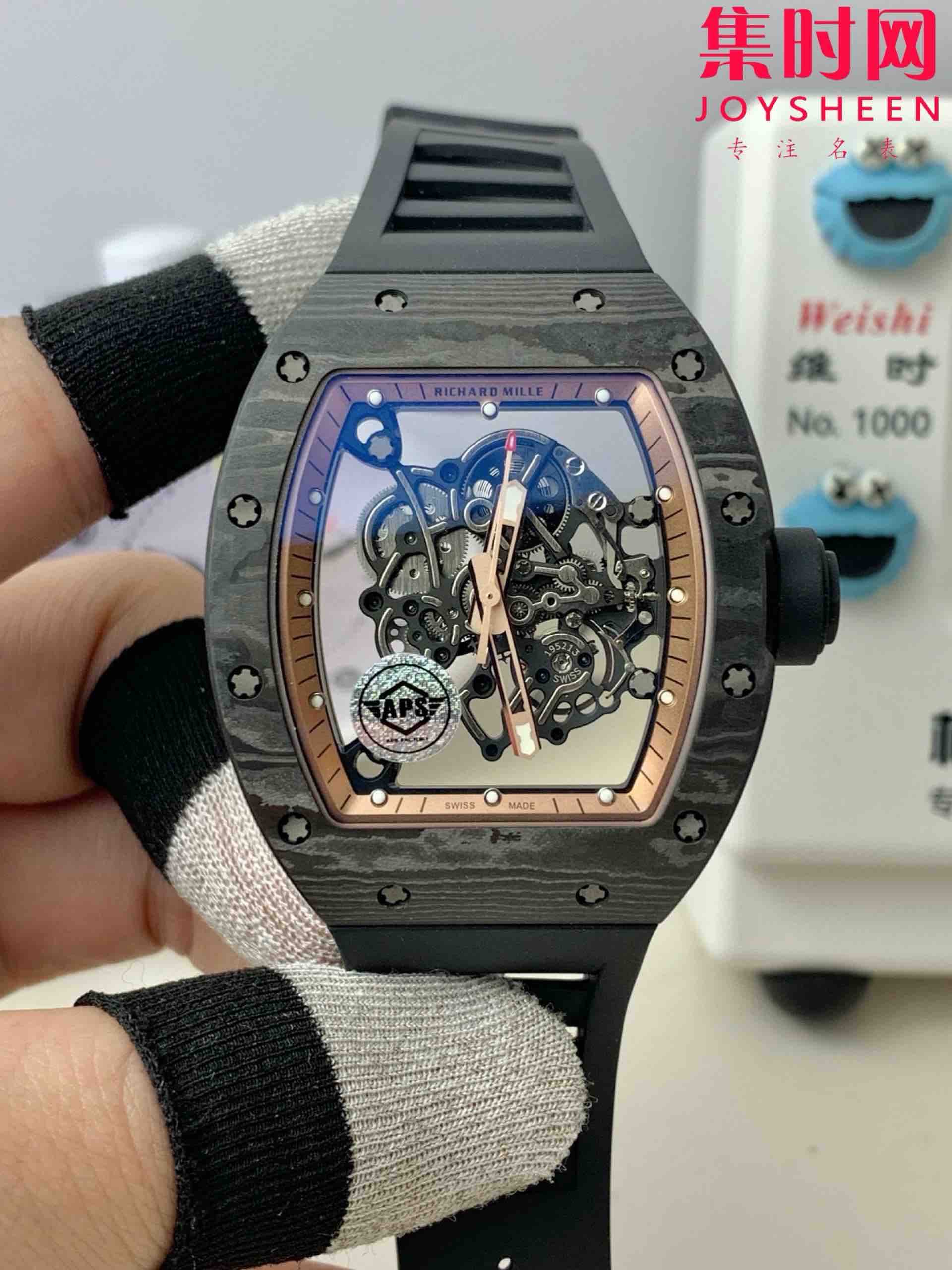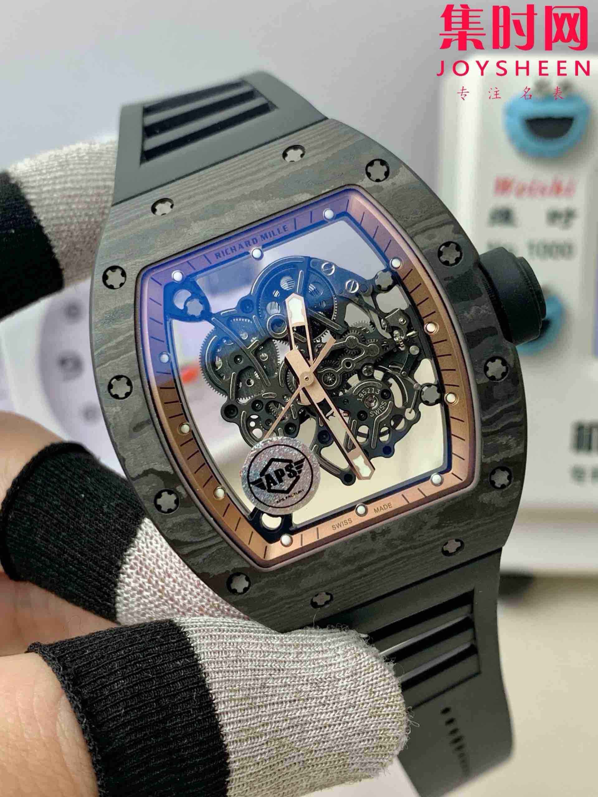 理查德米勒 APS新款RM055 RM55 黑金碳 碳纤维壳 男士腕表 丹东RMUL2一体机 里查德以其轻便时尚为主题,我们所有的金属件都采用钛金属制作同步原版
