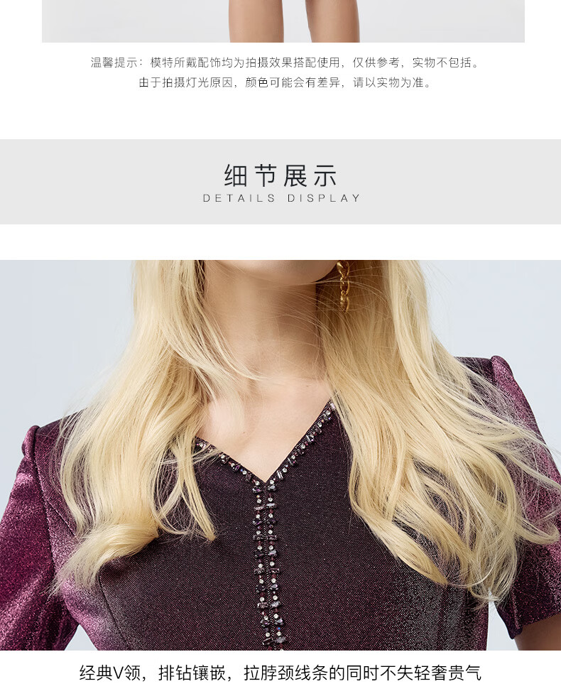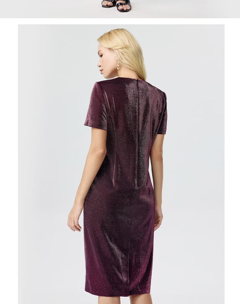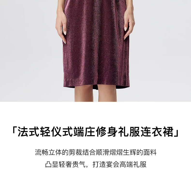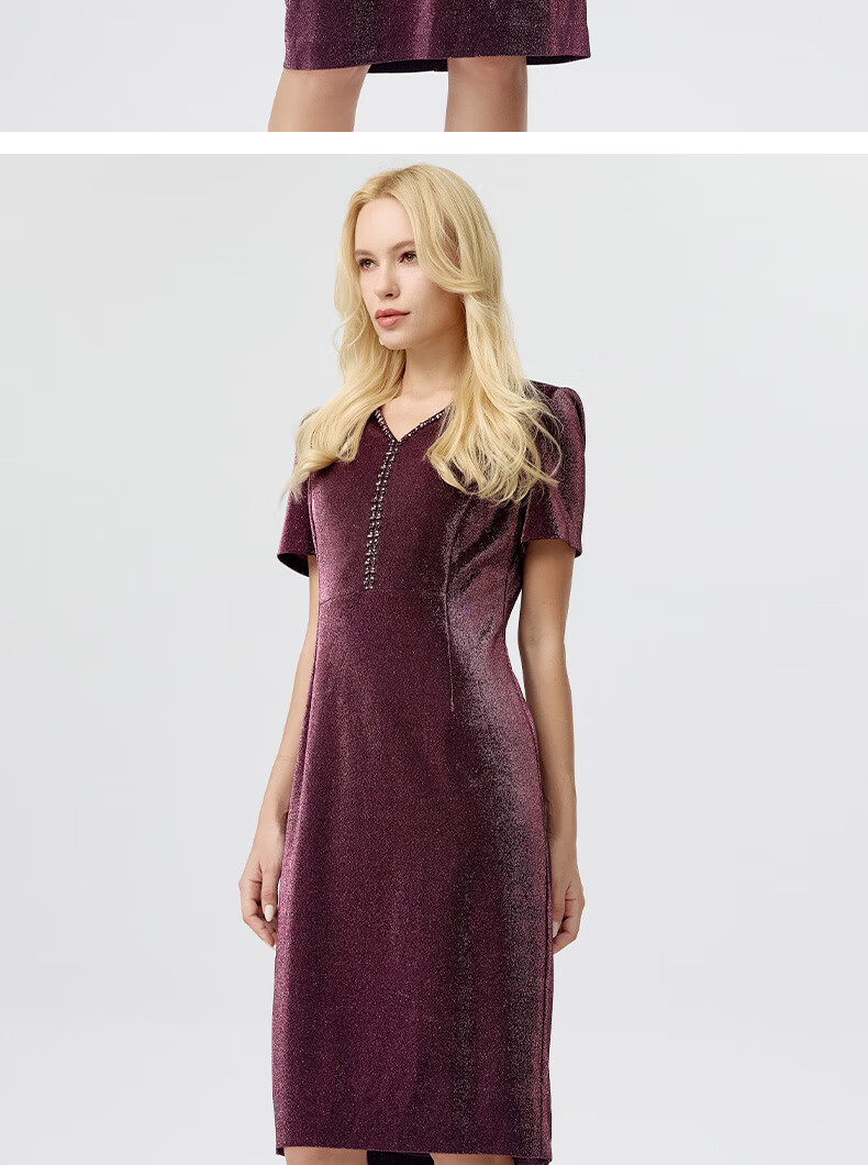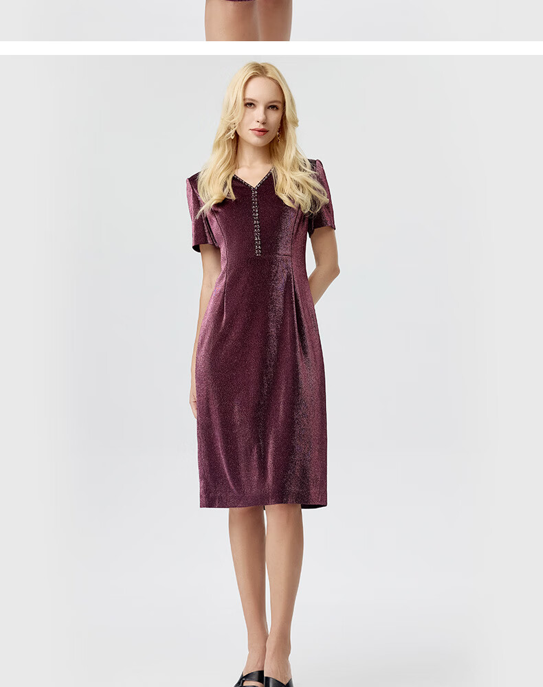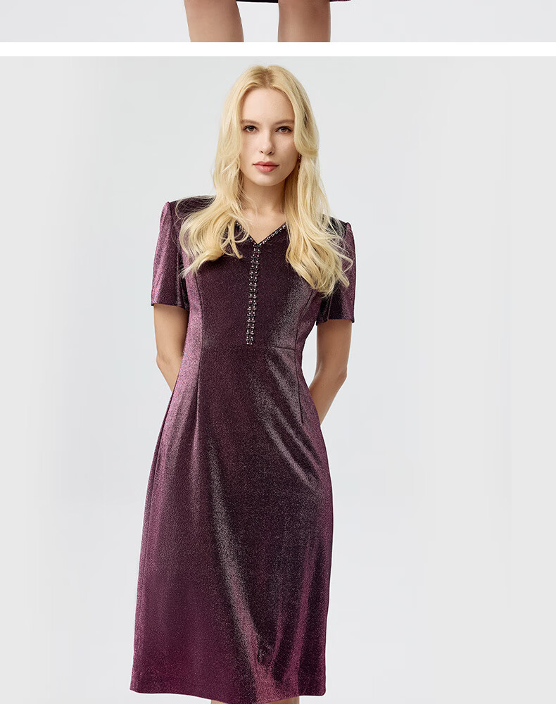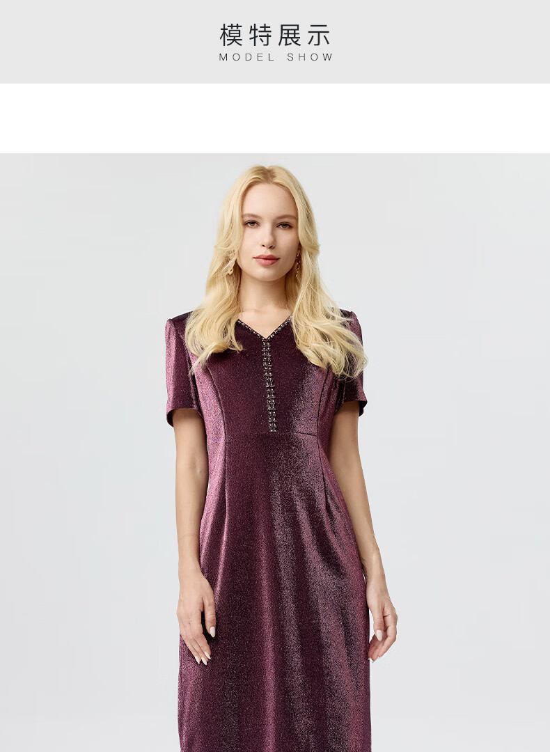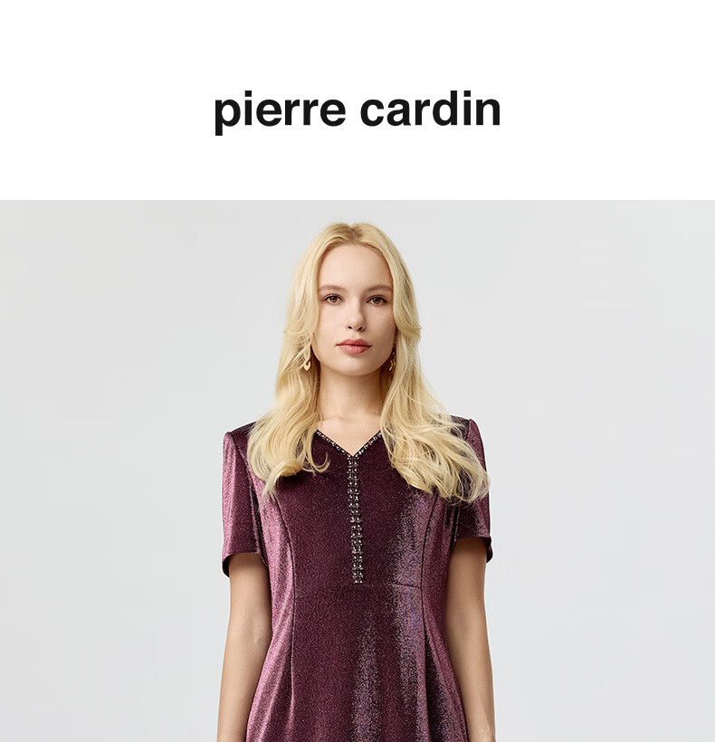 皮尔卡丹女装连衣裙紫色短袖镶钻亮闪闪中长款一步裙P3241D3107Z0
