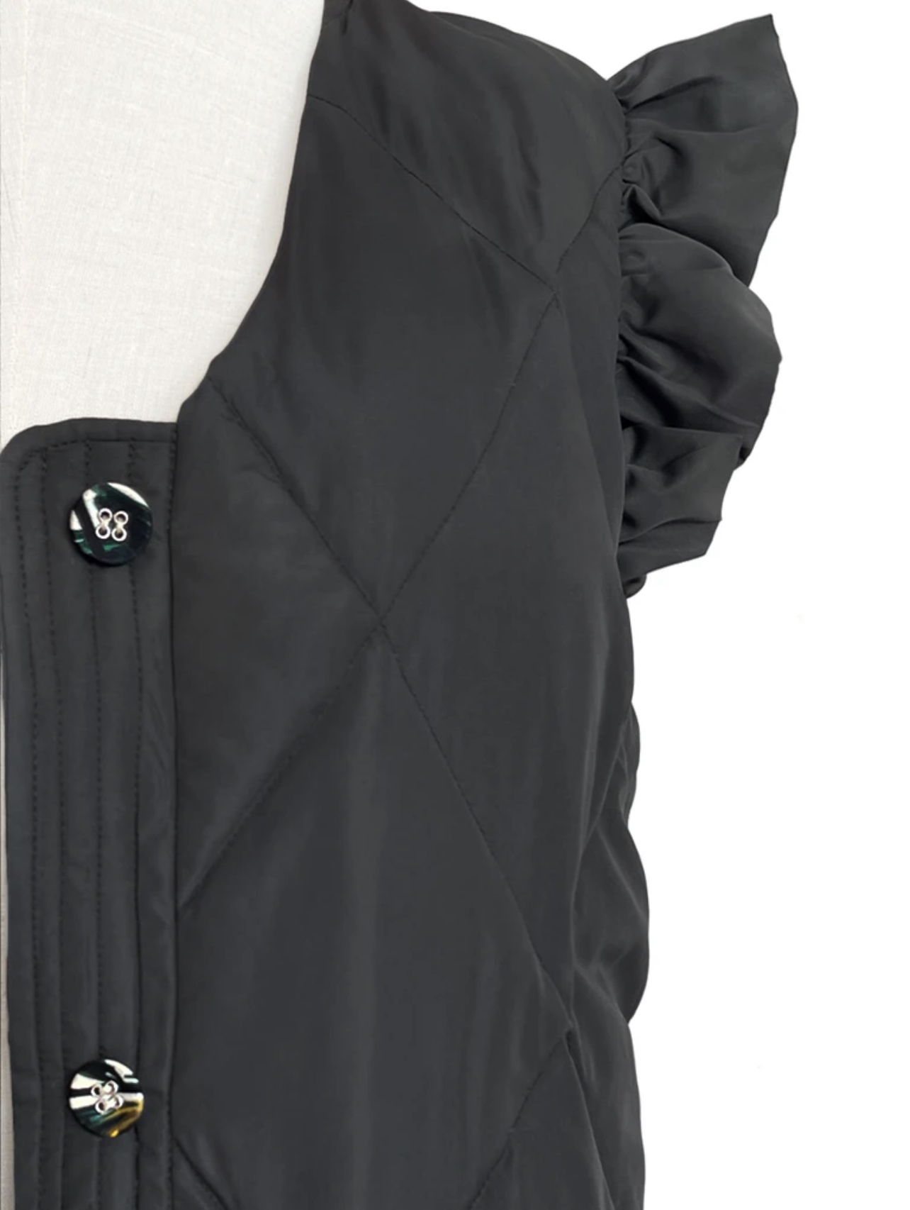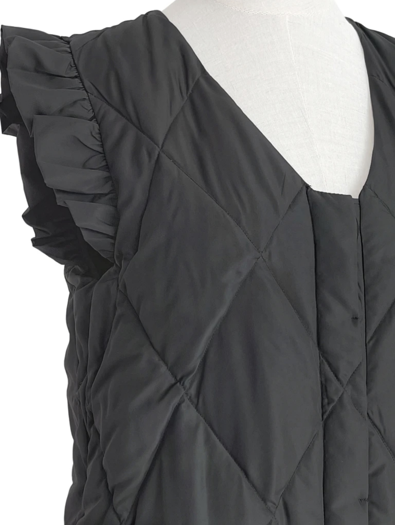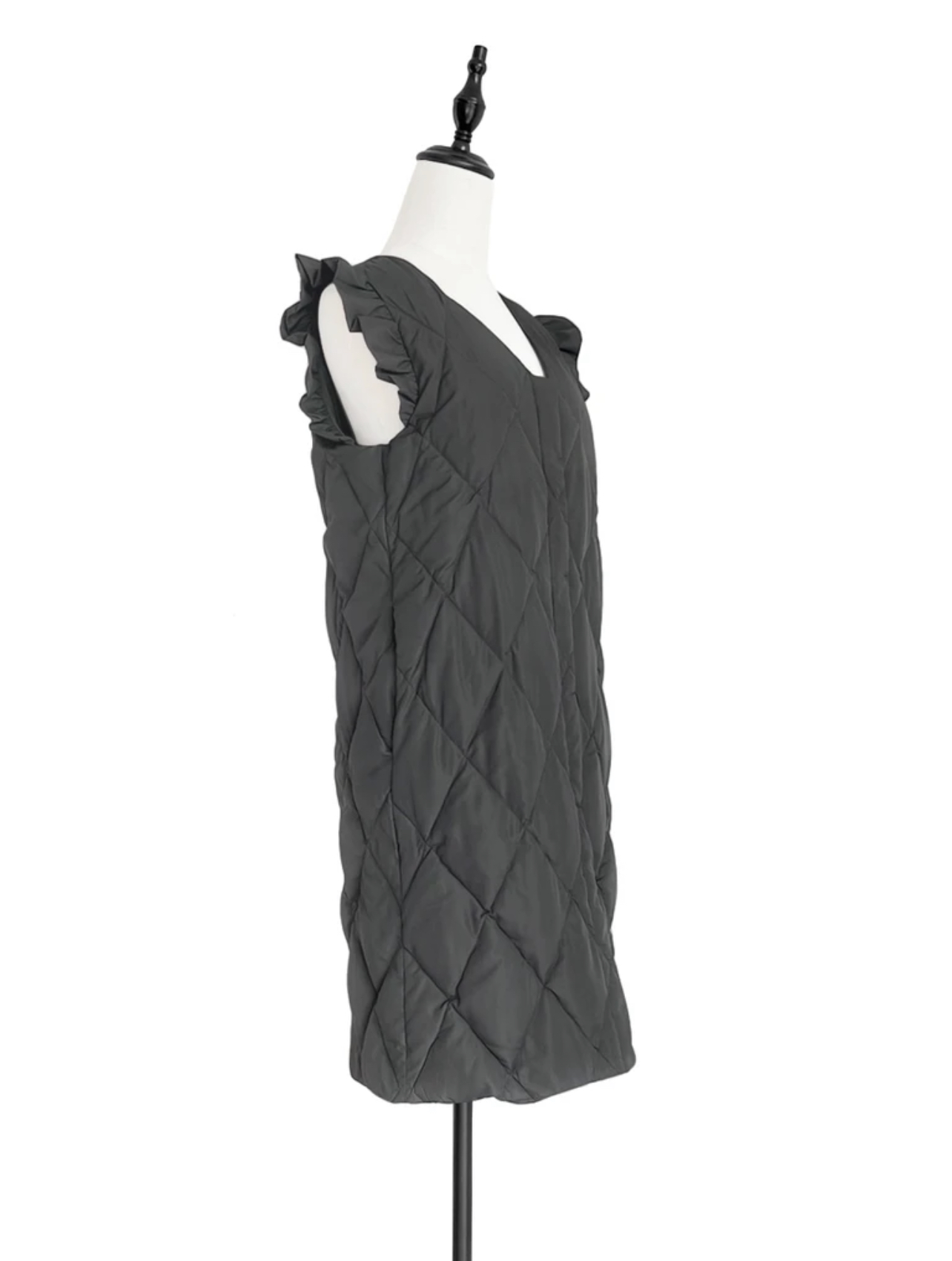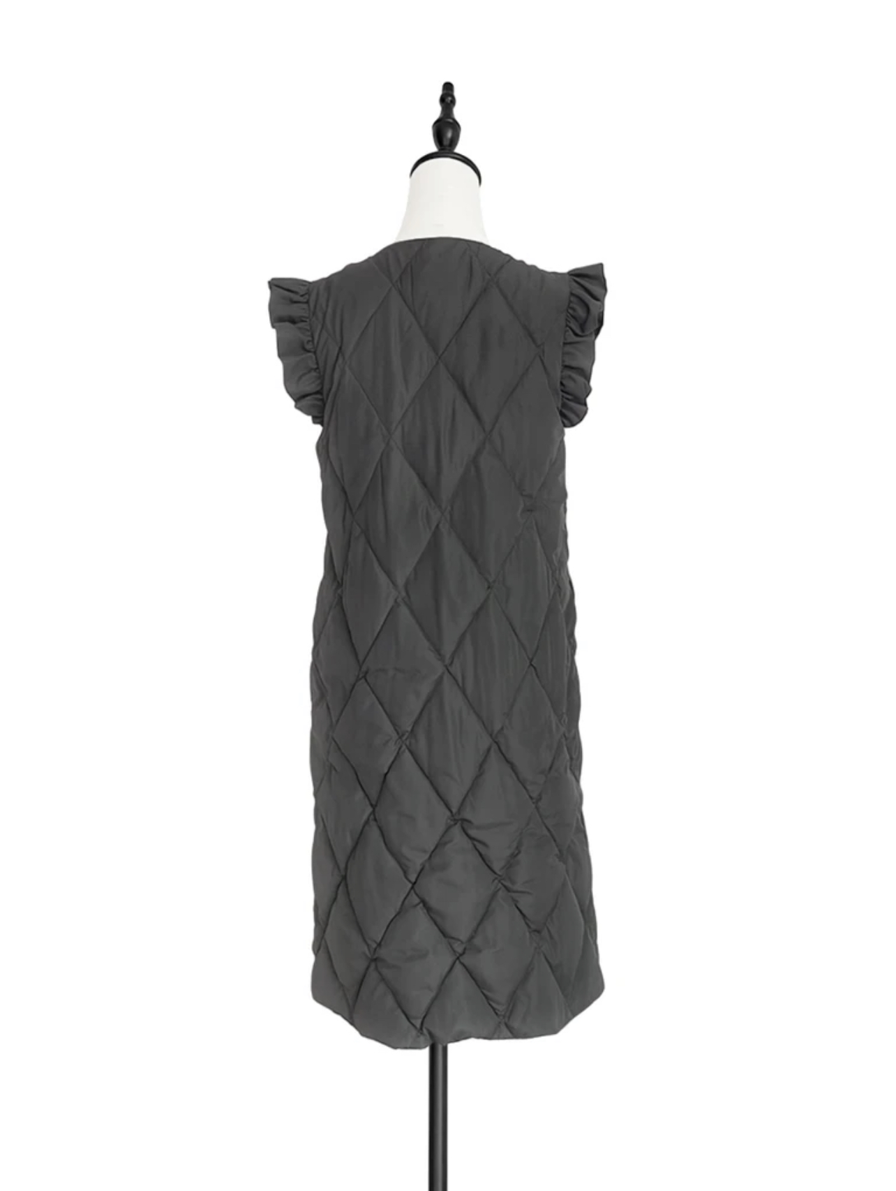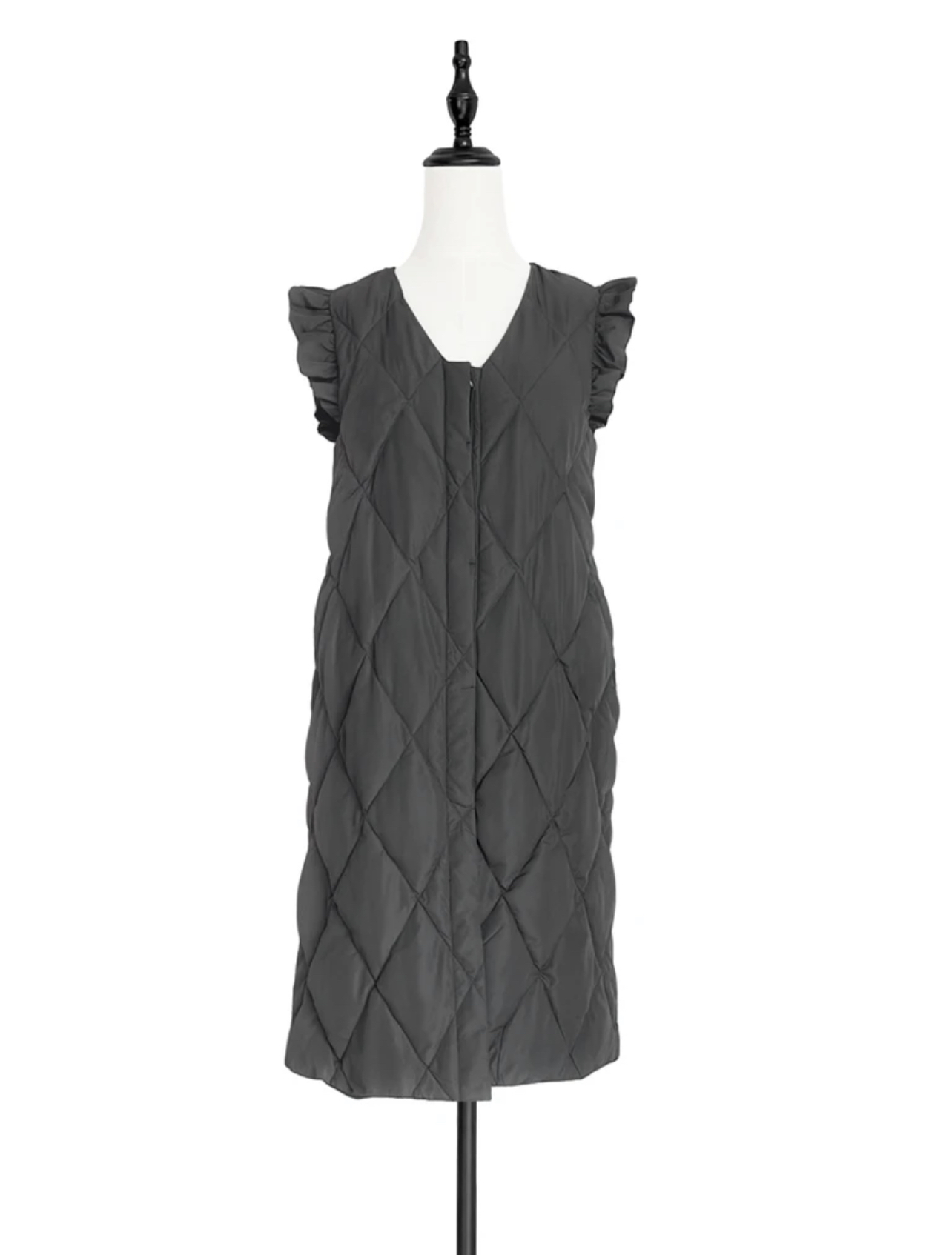 TYNVIE 木耳边饰肩鹅绒长背心- 炭灰色