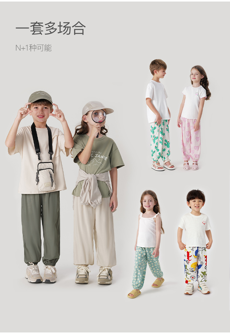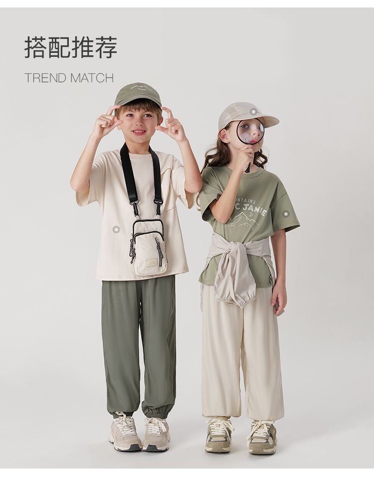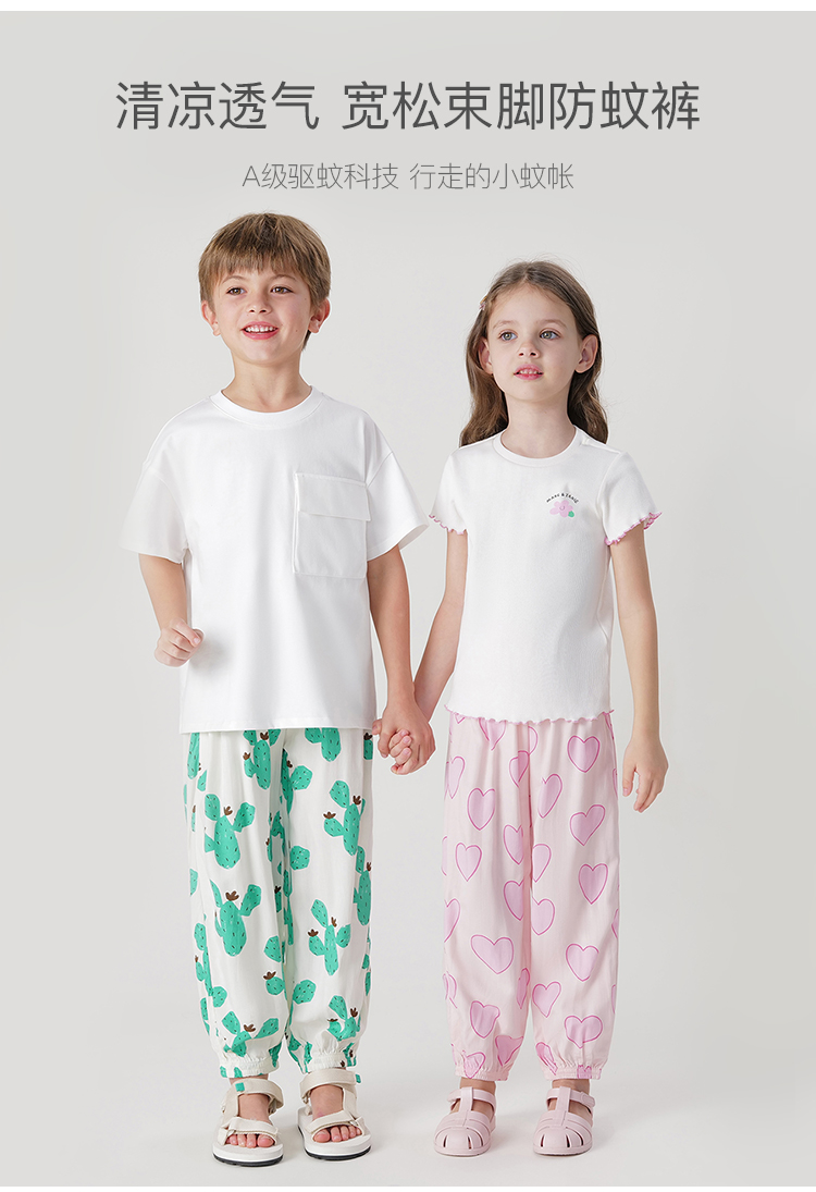 马克珍妮夏装男女童垂感透气防蚊裤束脚裤230568
