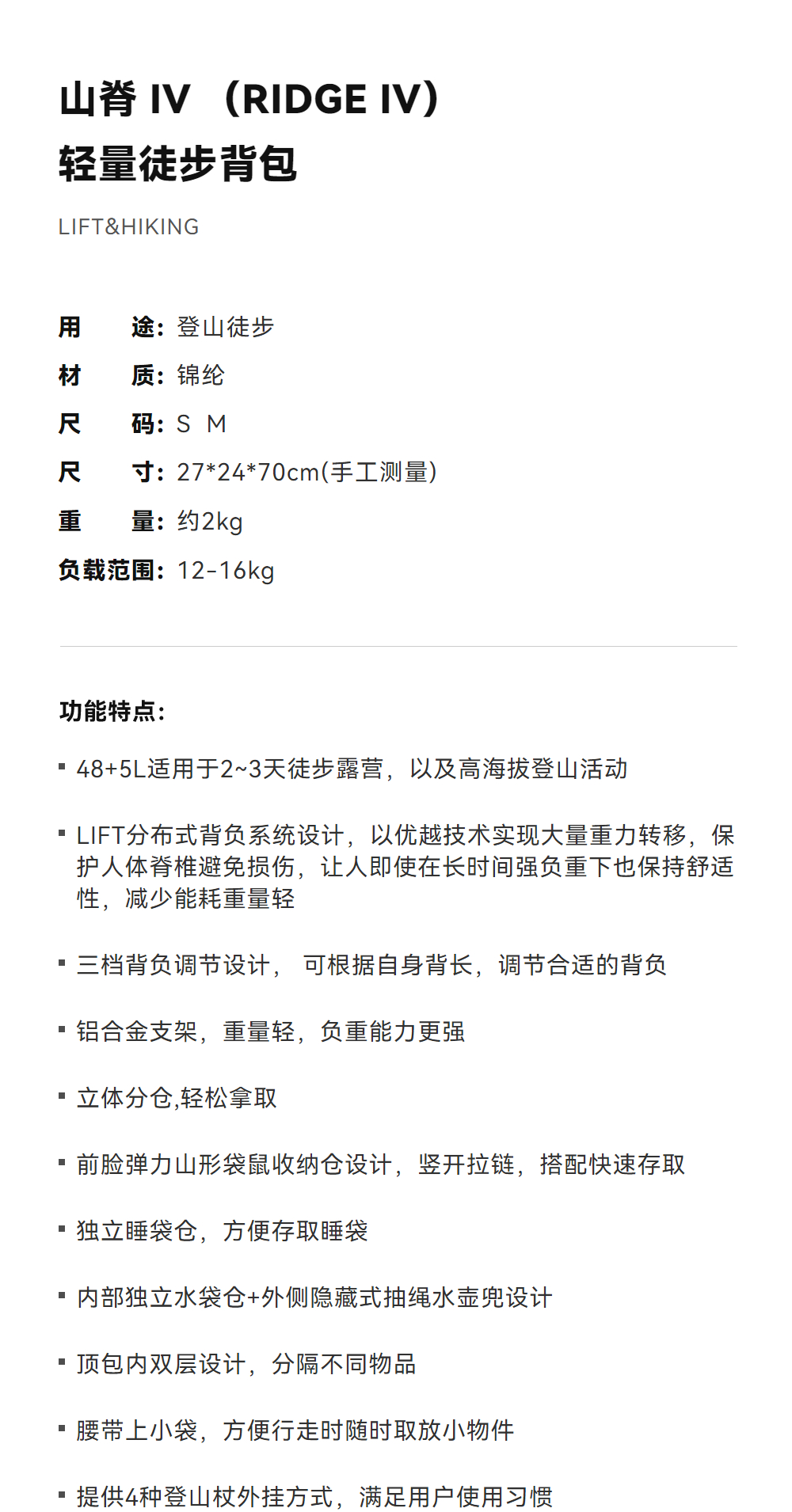 KAILAS凯乐石 山脊 48+5 轻量徒步背包 KA2553016【Z】