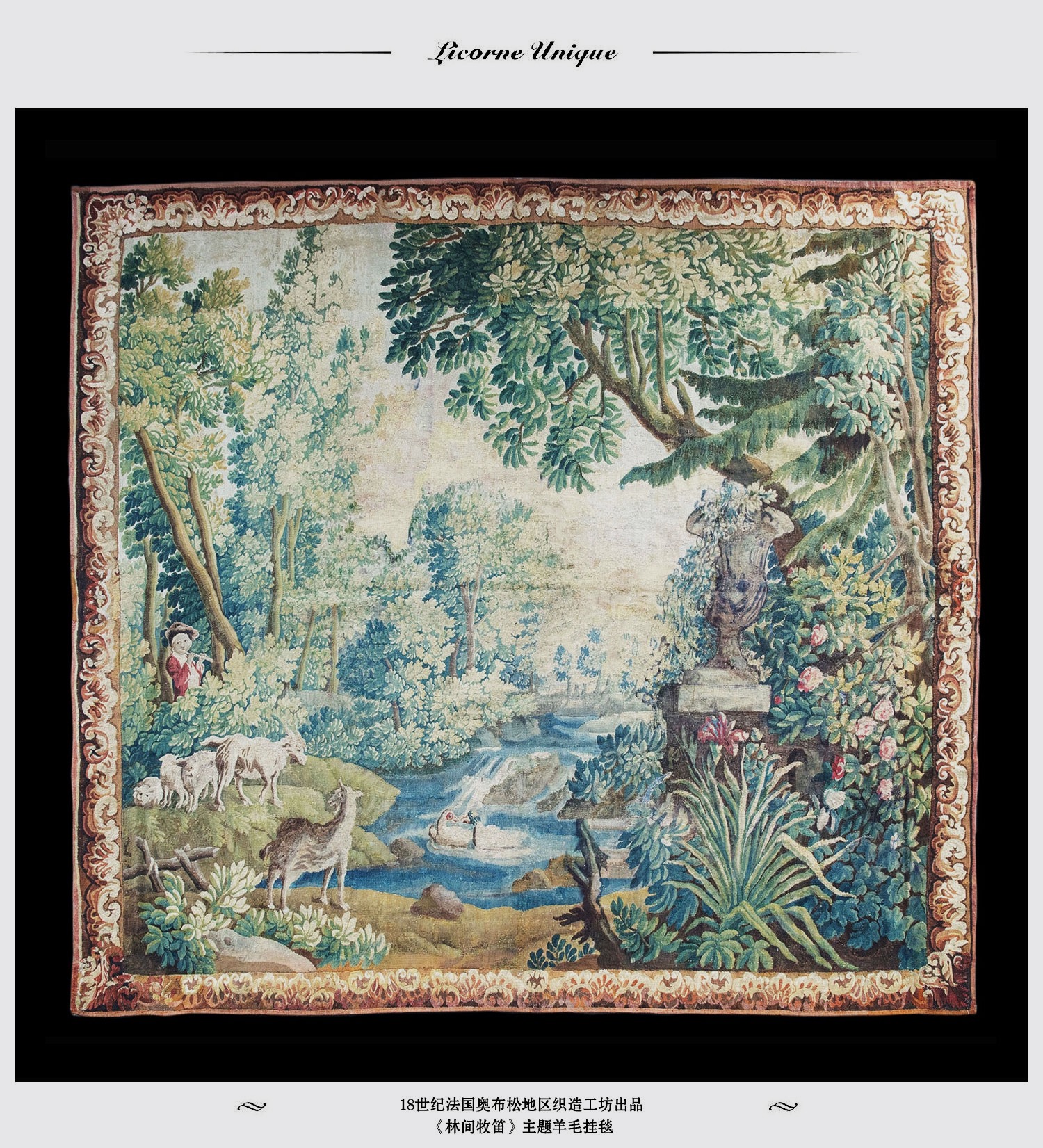 独角鹿西洋古董家居装饰布艺背景墙欧式羊毛挂毯法国织造工坊出品