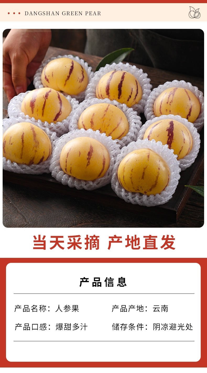 【福利❗️27.9/3斤装🔥云南石林人参果】石林产地直供❗️爆汁香甜,现摘现发锁鲜,果肉金黄细腻,自带淡雅果香,适配日常鲜食,口感清爽解腻,新鲜现摘应季水果树上熟清甜黄心大果L
