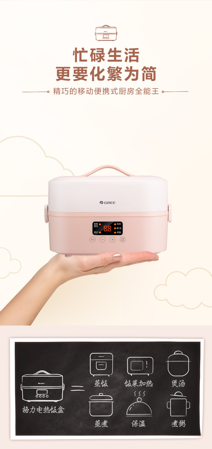 【预售】格力·电热饭盒  DFH-1501Z (海棠粉) 商品图4
