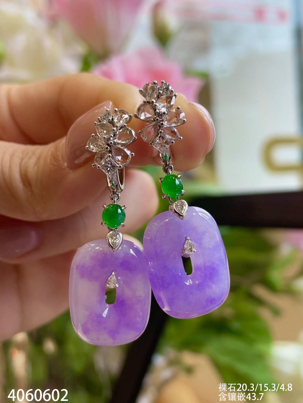 4060602,紫罗兰平安扣耳坠。具体价格微信咨询