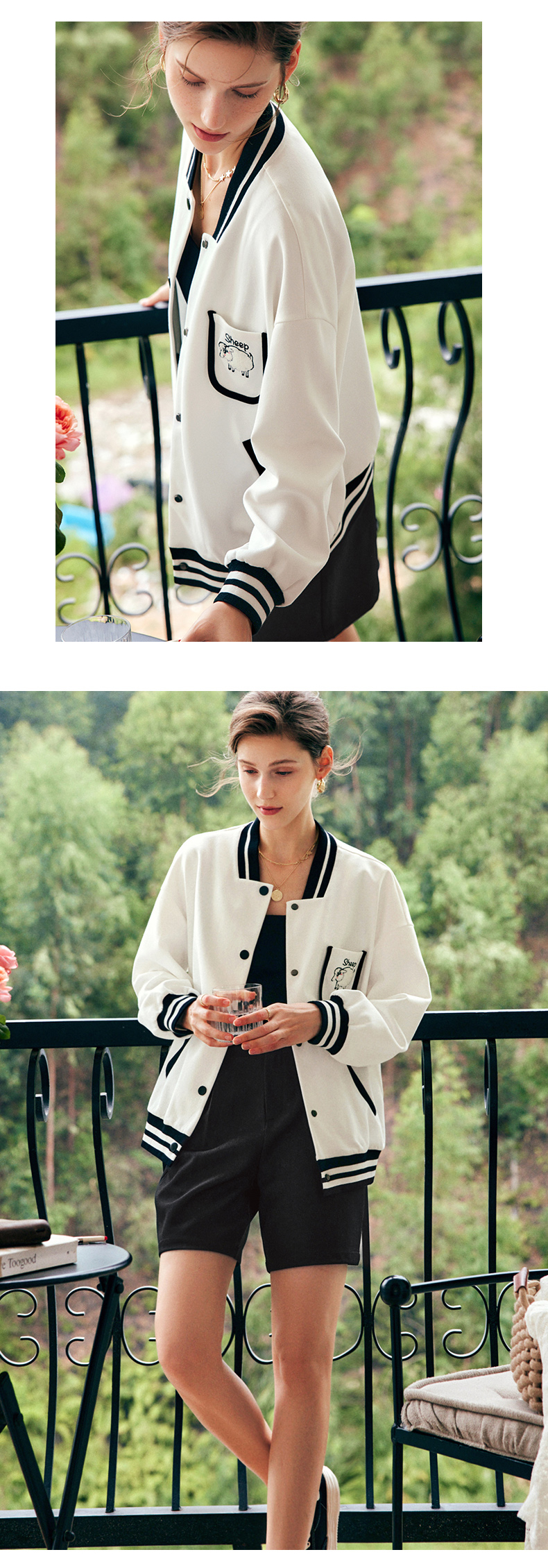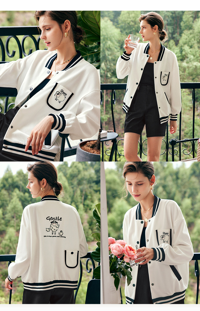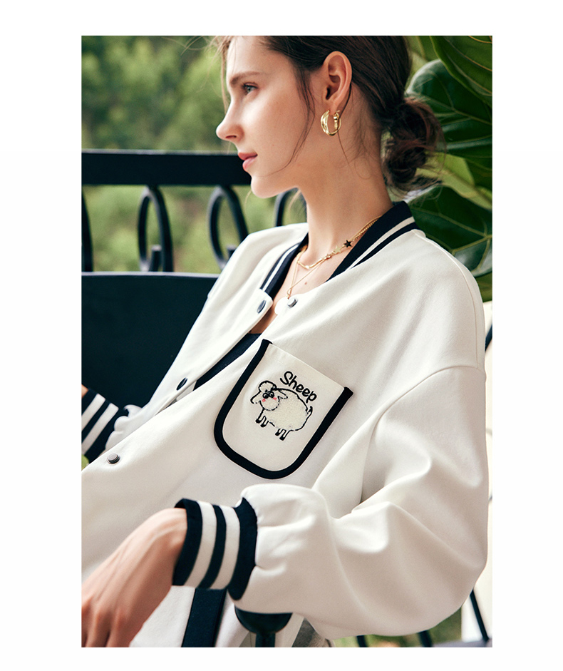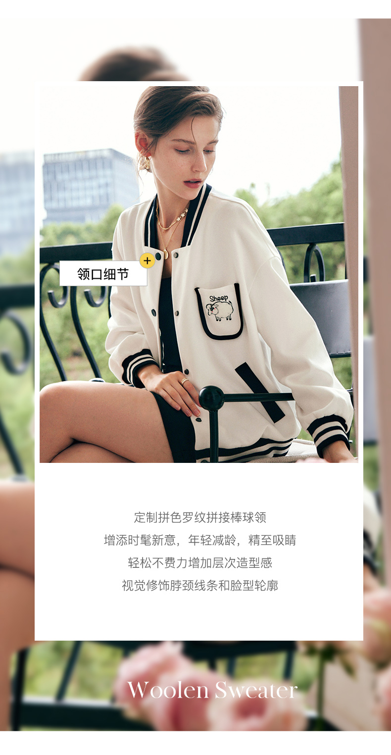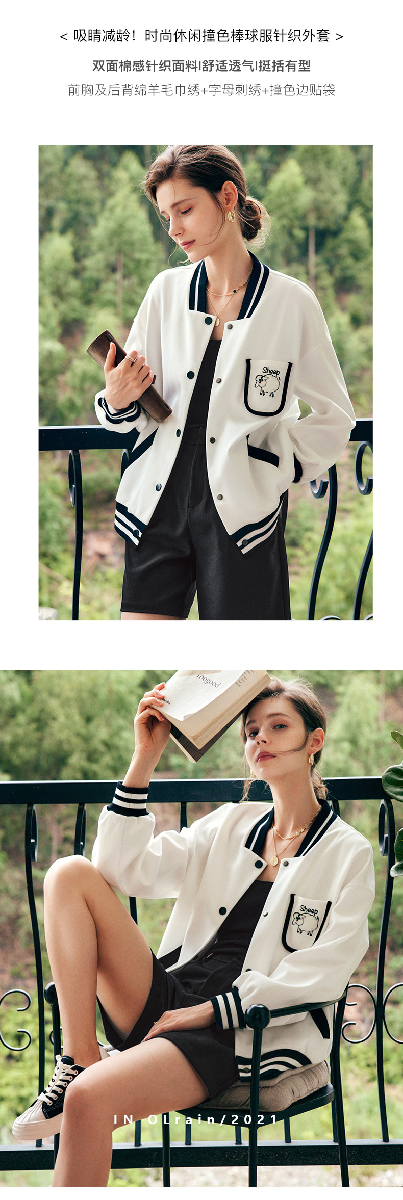 OLrain欧芮儿法式撞色针织短外套女秋季2022年新款宽松刺绣棒球服
