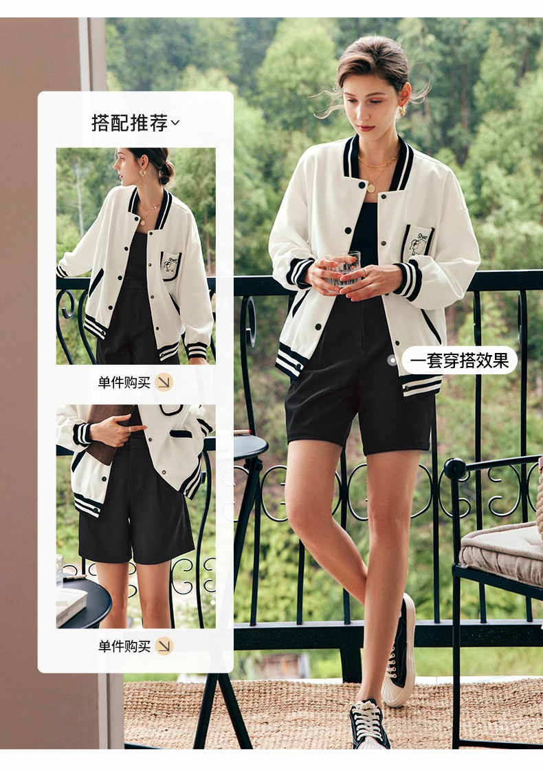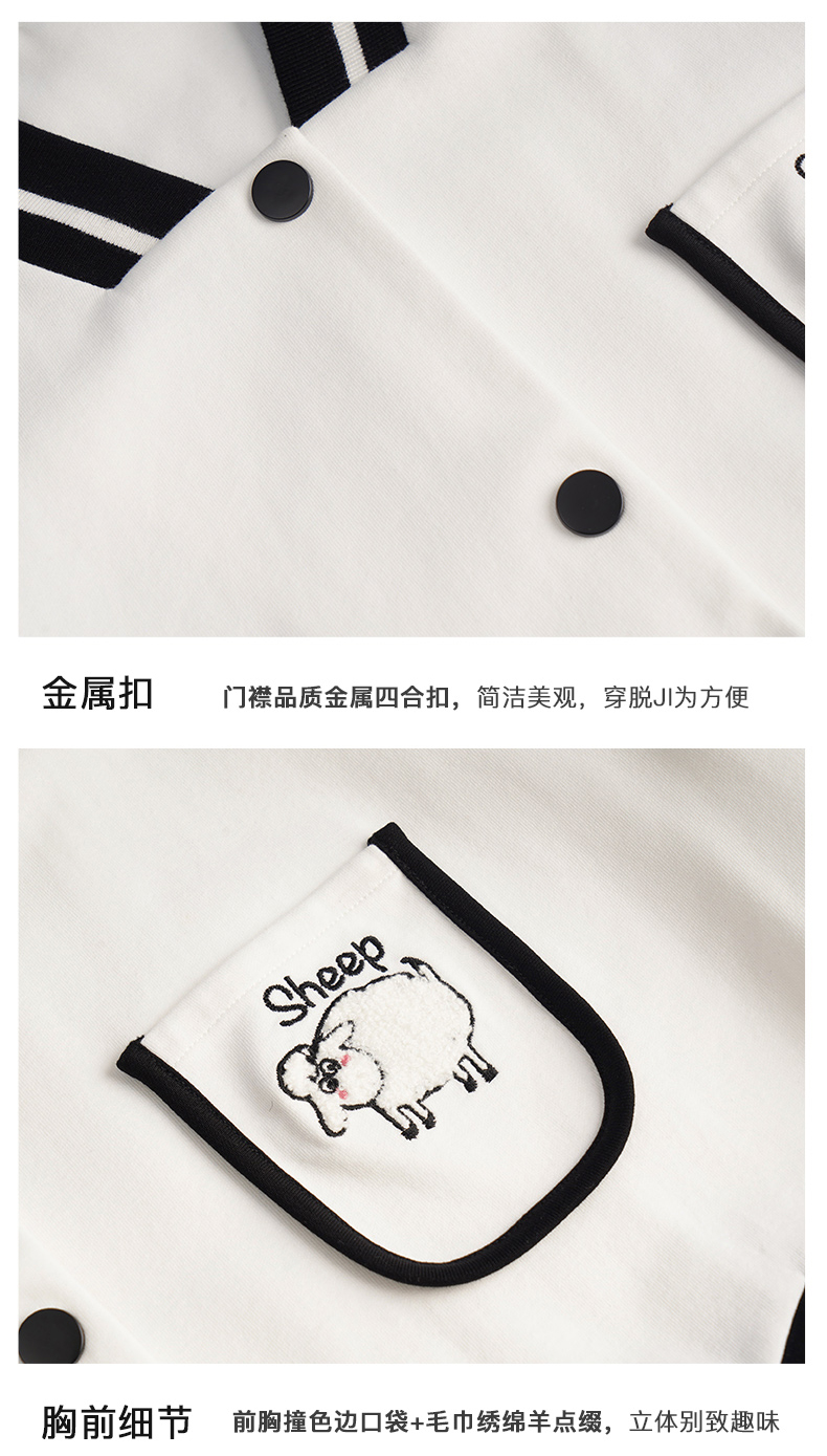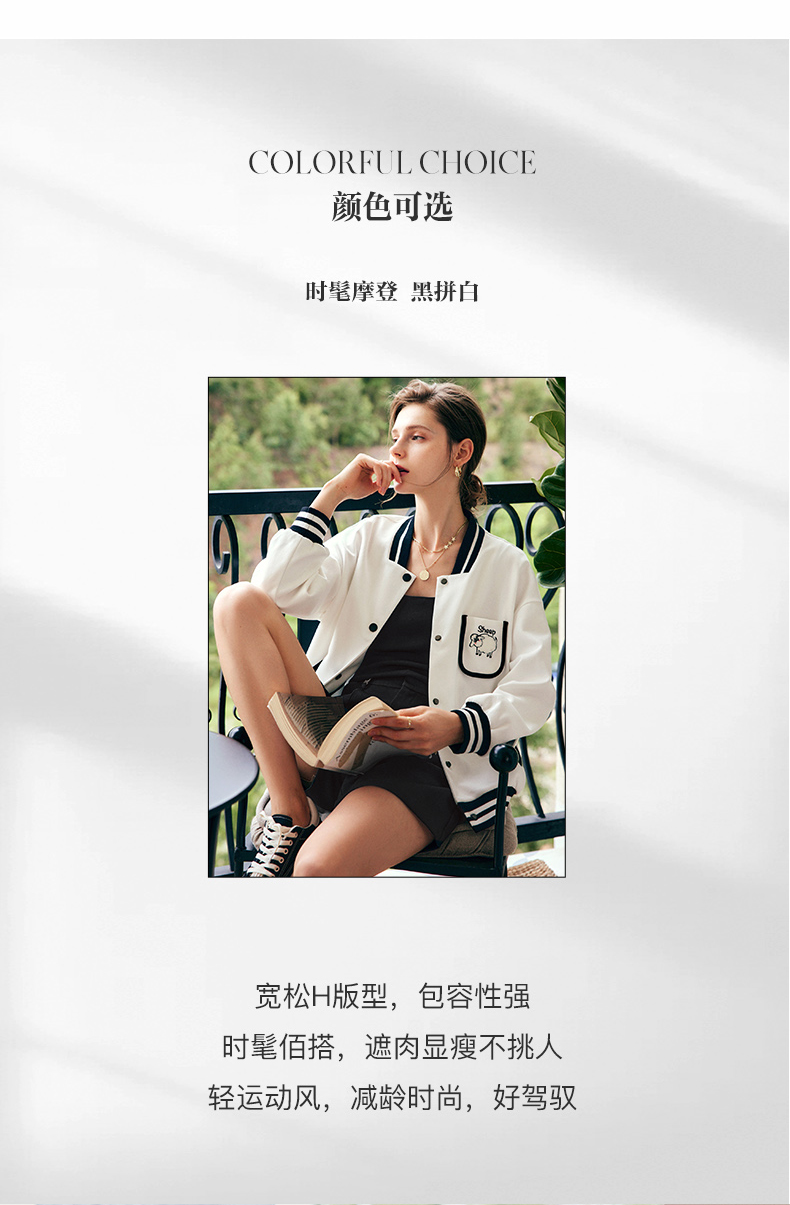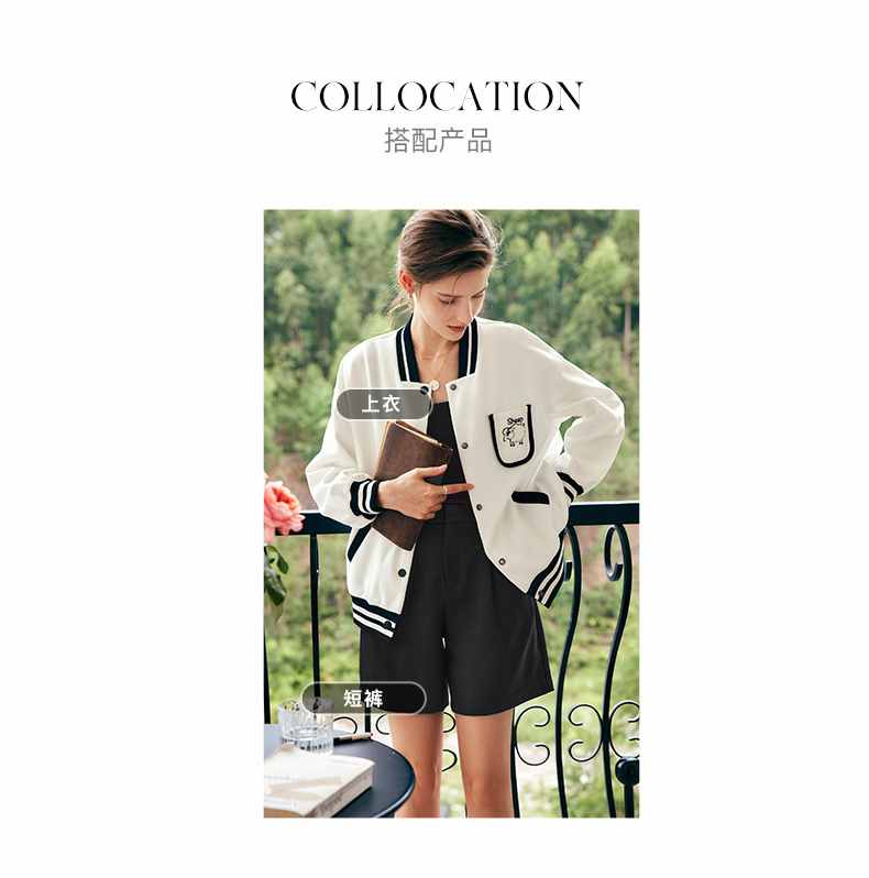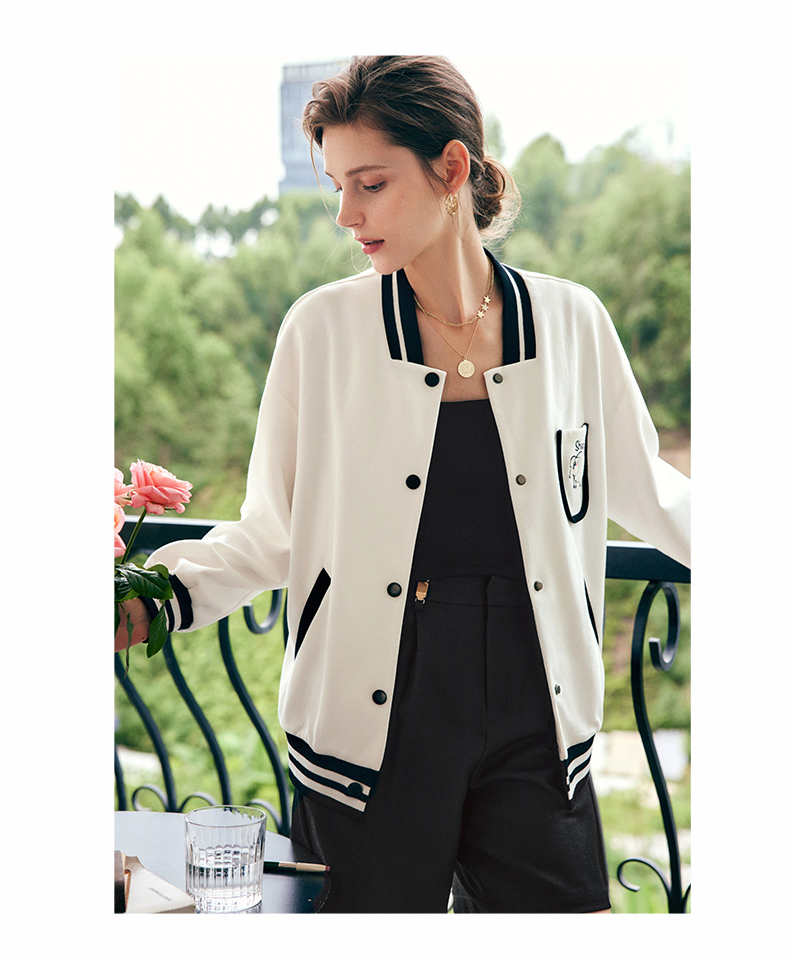 OLrain欧芮儿法式撞色针织短外套女秋季2022年新款宽松刺绣棒球服