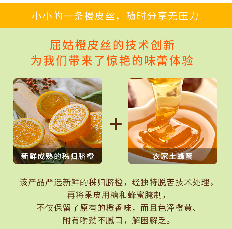 【严选】【秭归脐橙+农家土蜂蜜 入口香甜 有嚼劲 开胃又解乏】屈姑橙皮丝 60G/袋 (厂家直发)