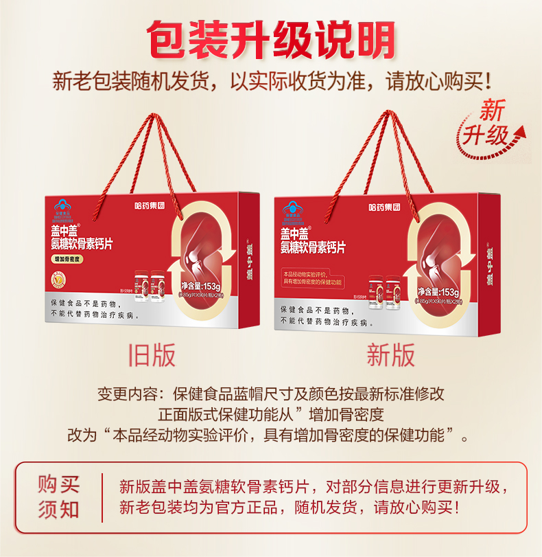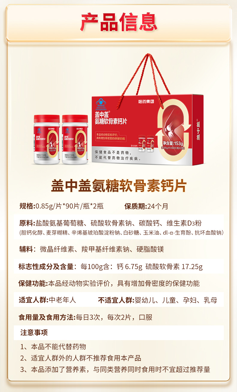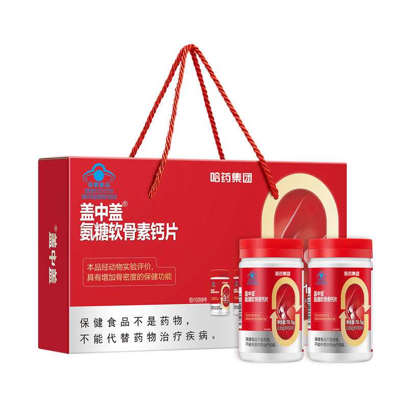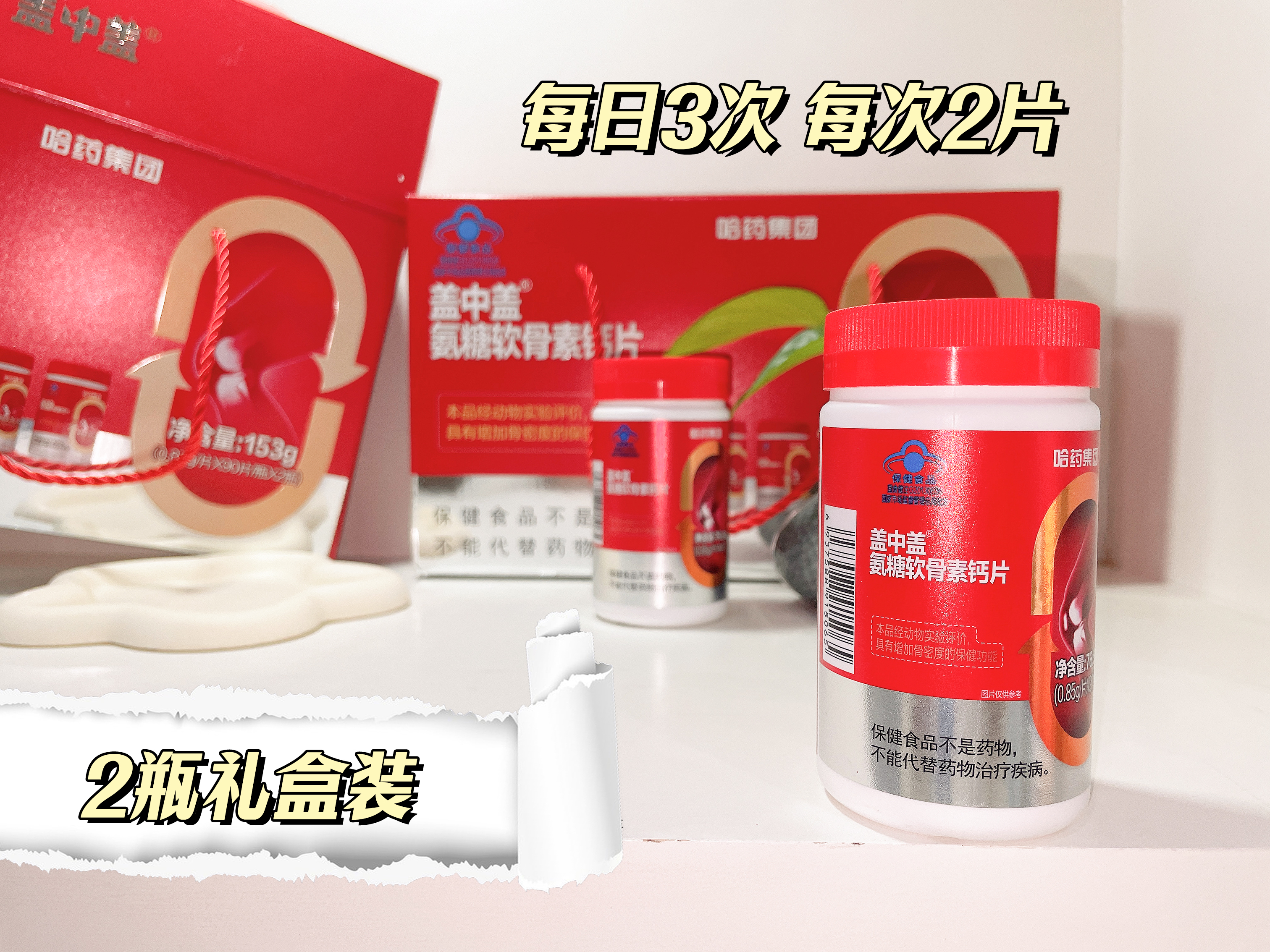 【多妈团购 哈药盖中盖氨糖软骨素维生素D钙片90粒*2礼盒】软骨硬骨一起补 钙片氨糖二合一,维护中年、中老年骨骼关节健康,增强骨密度,更加适合中老年人的氨糖-咸喜仓