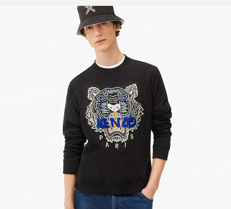 【二】KENZO 高田贤三 男士棉质经典大虎头长袖卫衣 黑色 FC55 SW123 4XL 99