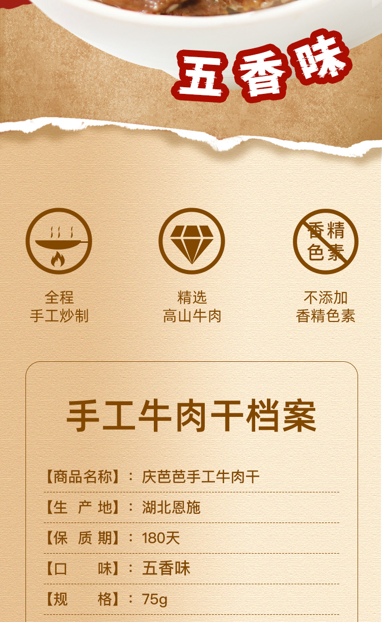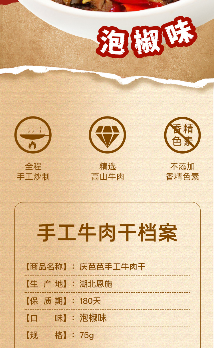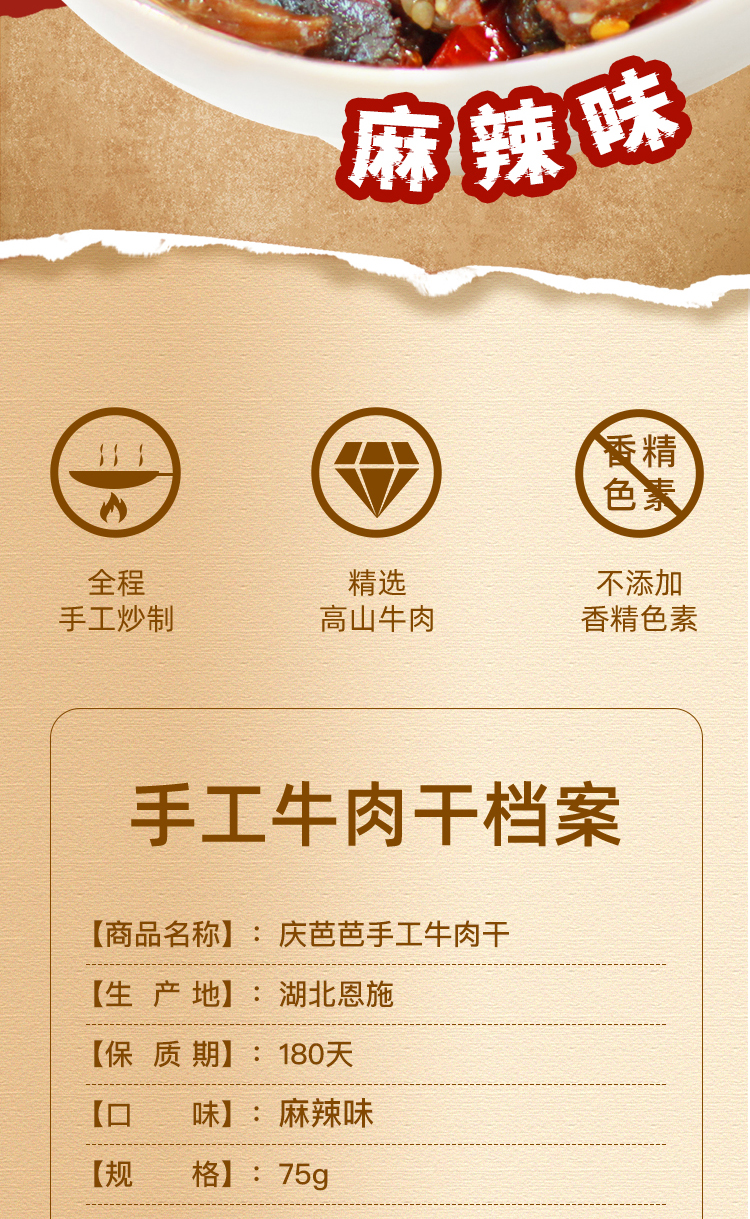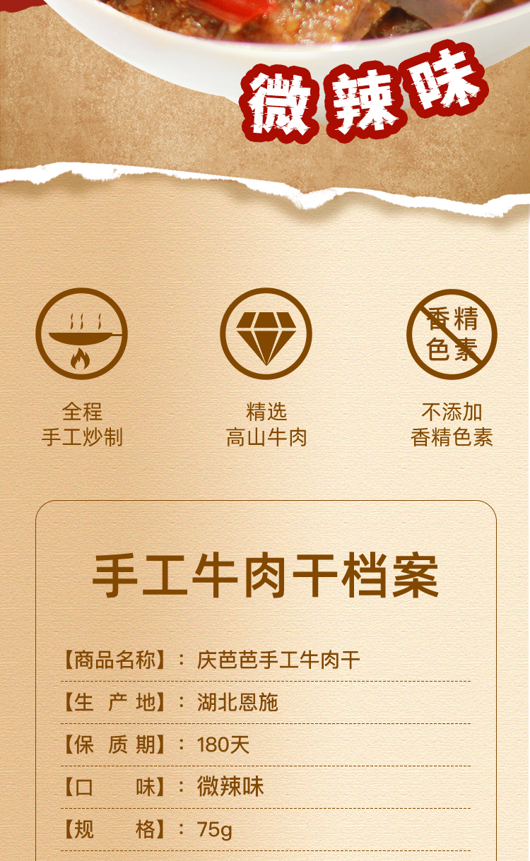 恩施 利川【庆芭芭】 手工鲜牛肉干75g装