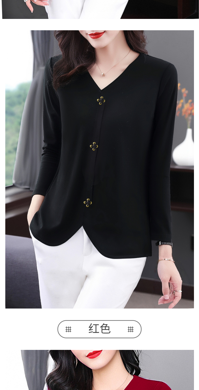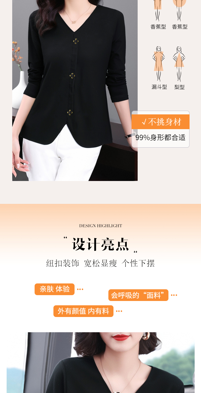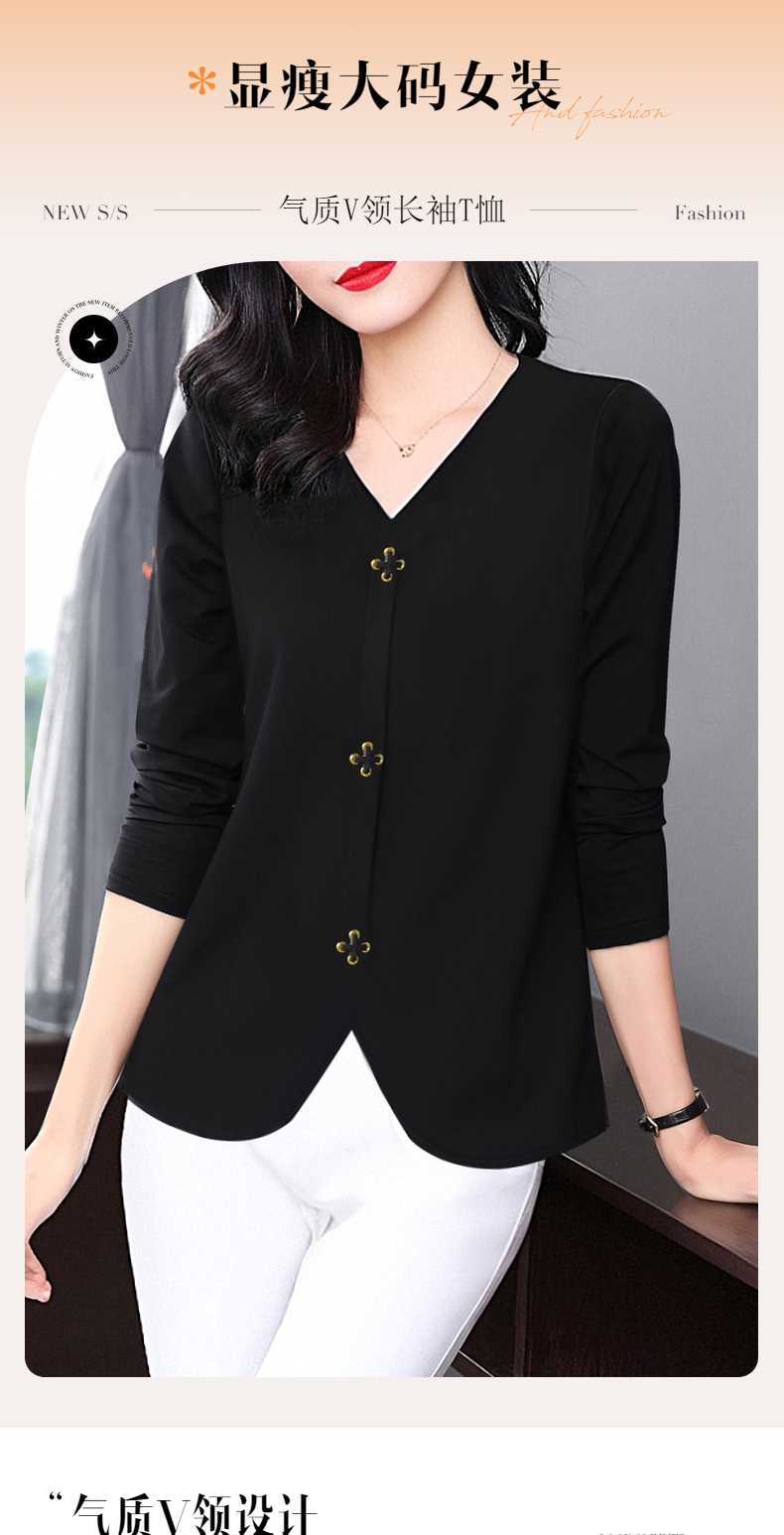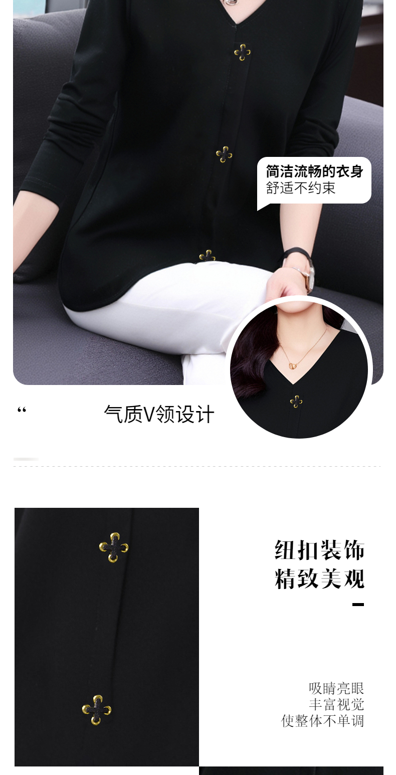 v领长袖t恤女2026早春装新款大码洋气打底衫中年妈妈黑色女士上衣