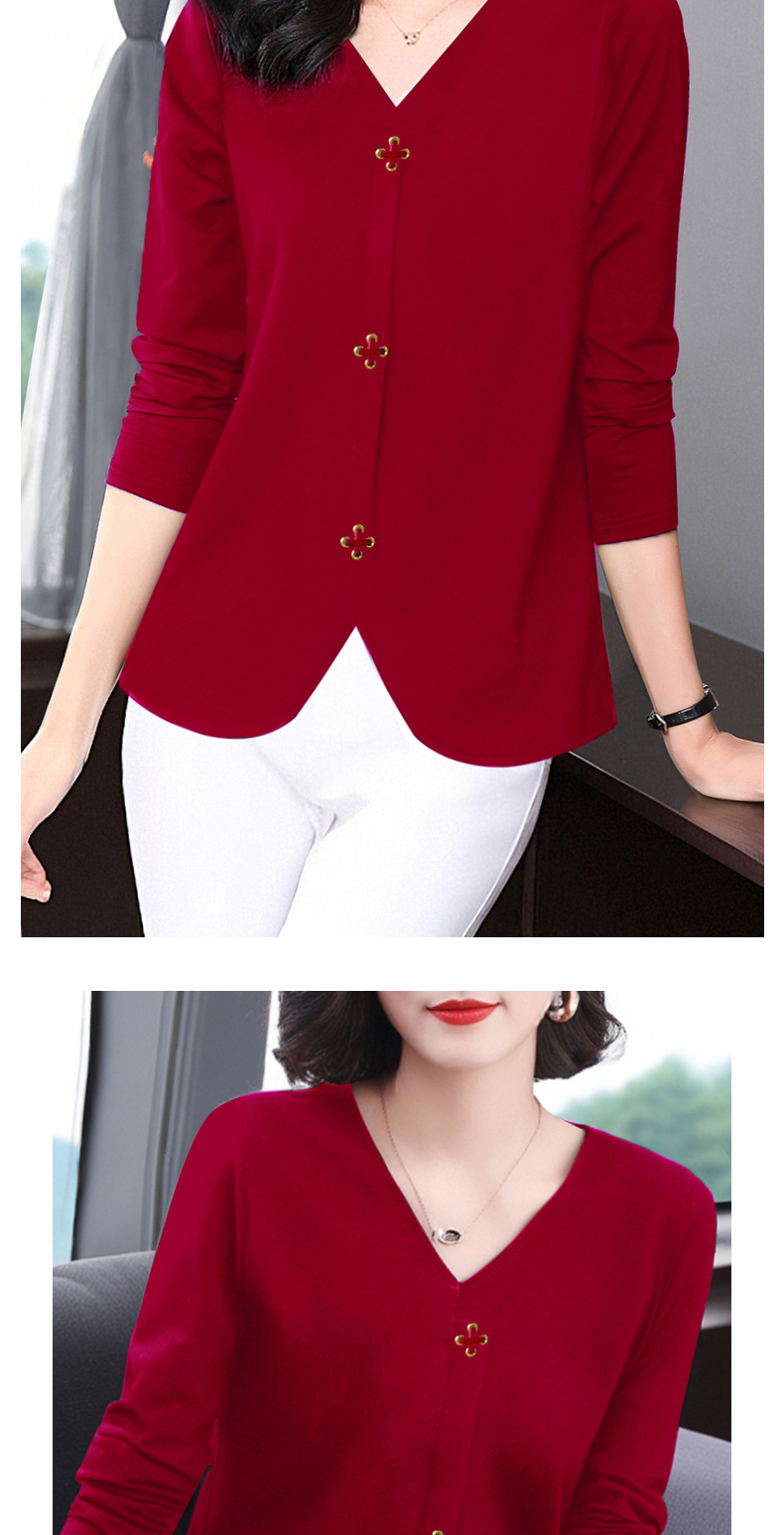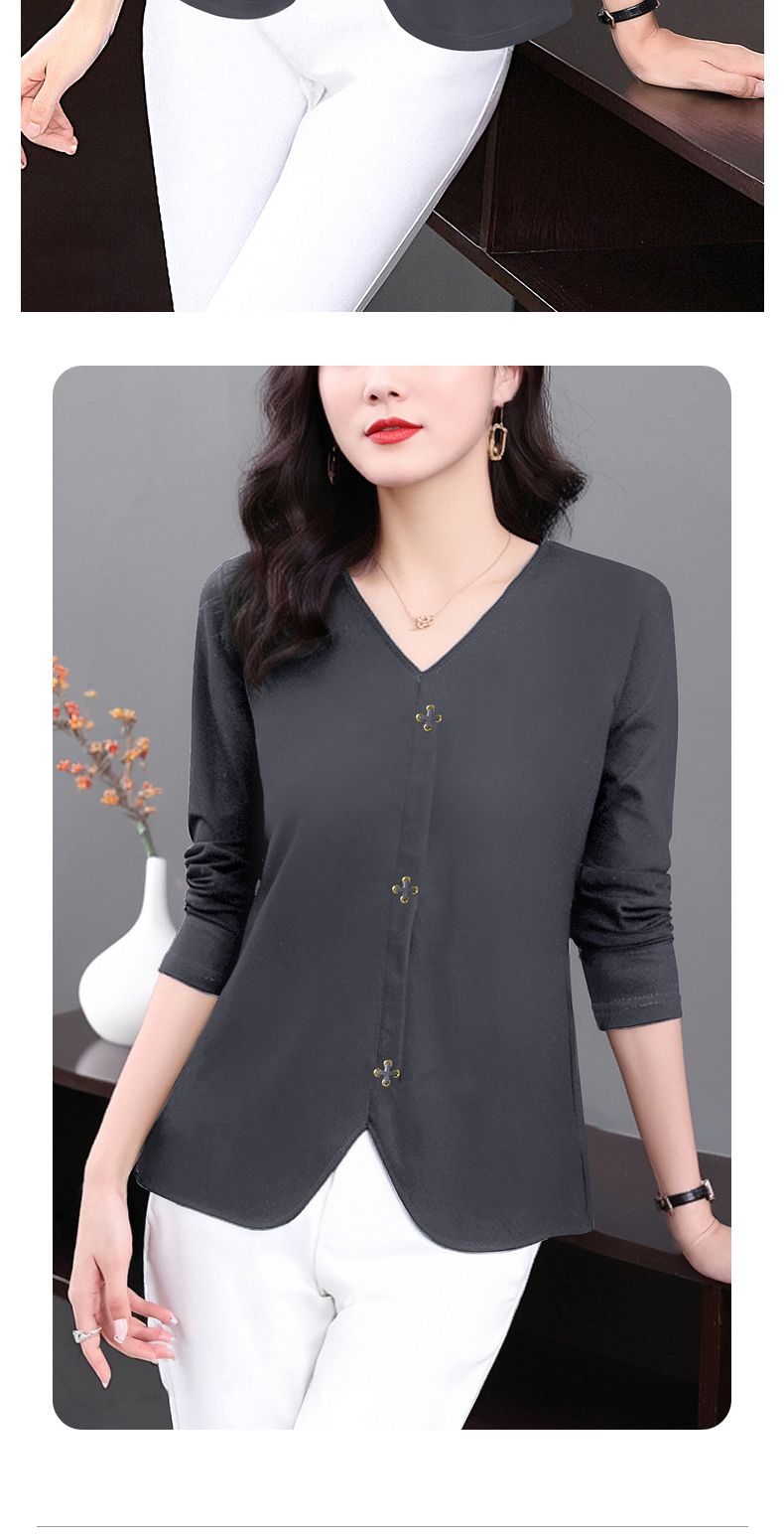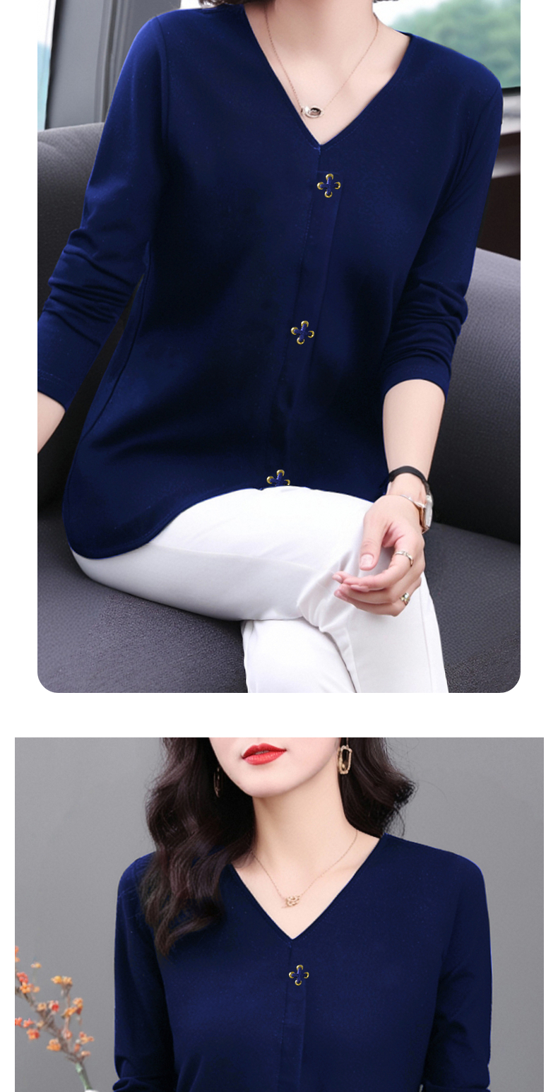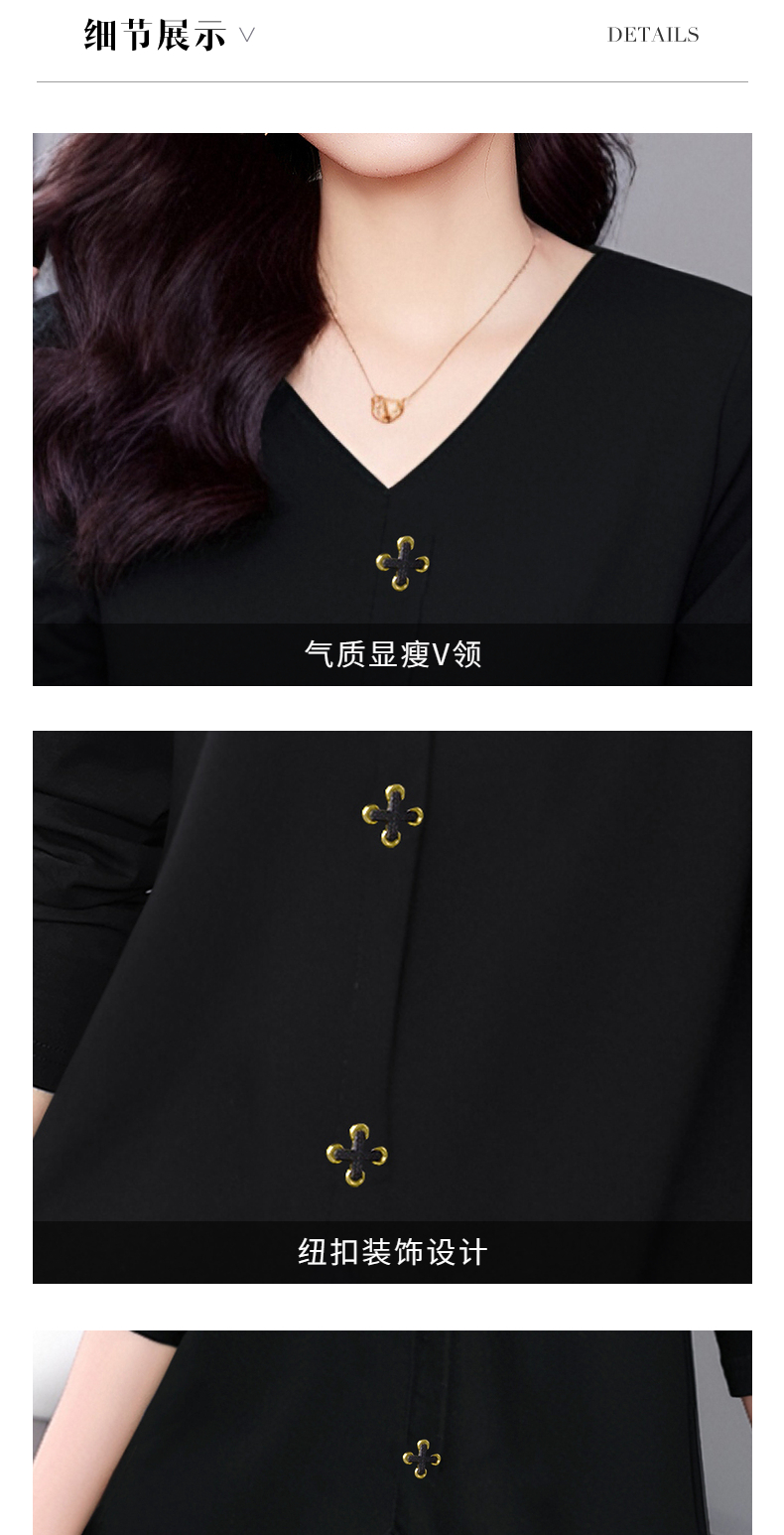 v领长袖t恤女2026早春装新款大码洋气打底衫中年妈妈黑色女士上衣