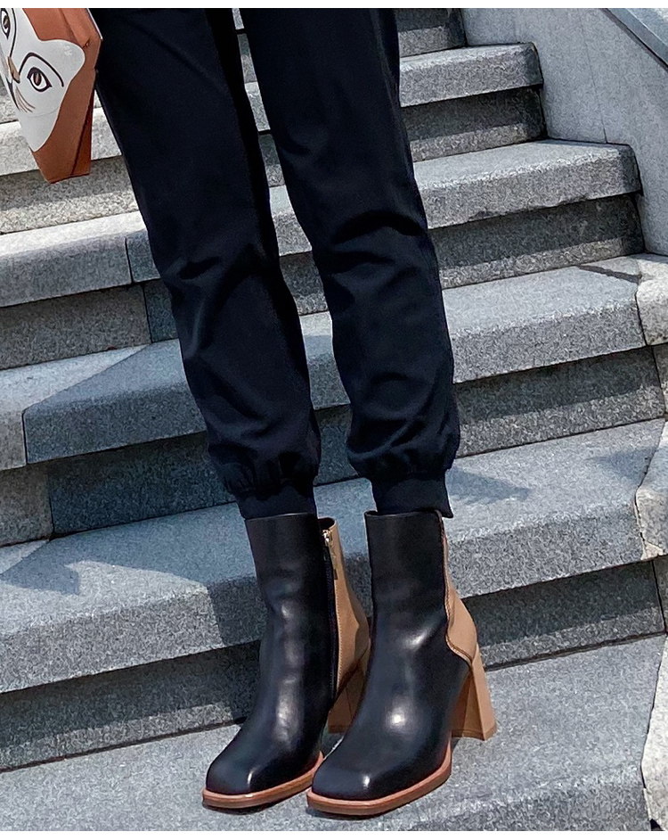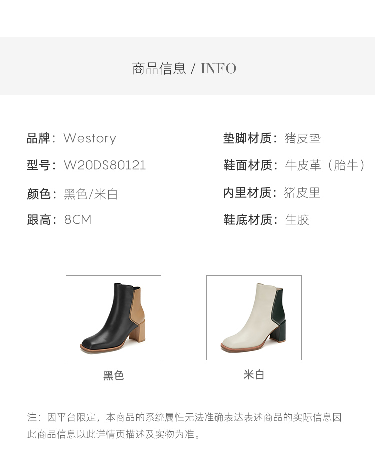 westory2020冬季新款真皮漆皮高跟靴英伦风切尔西靴女W20DS80121