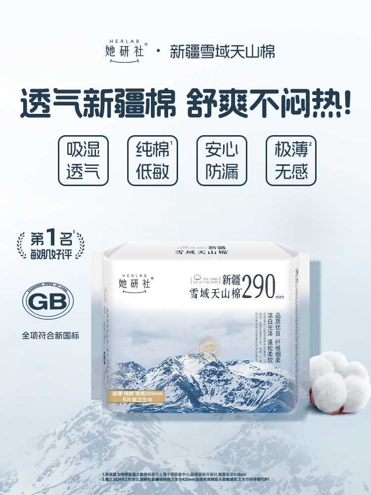 Herlab她研社 新疆天山棉卫生巾290mm*6片装