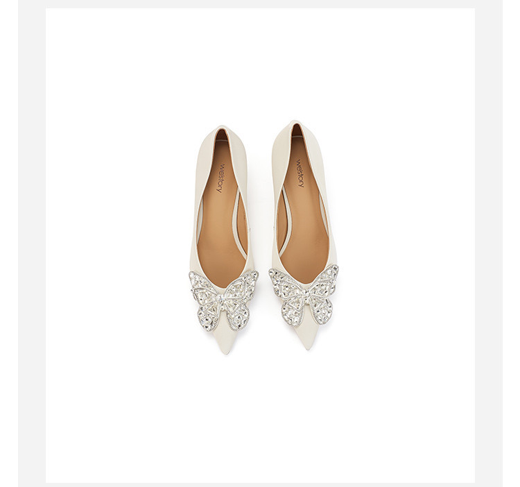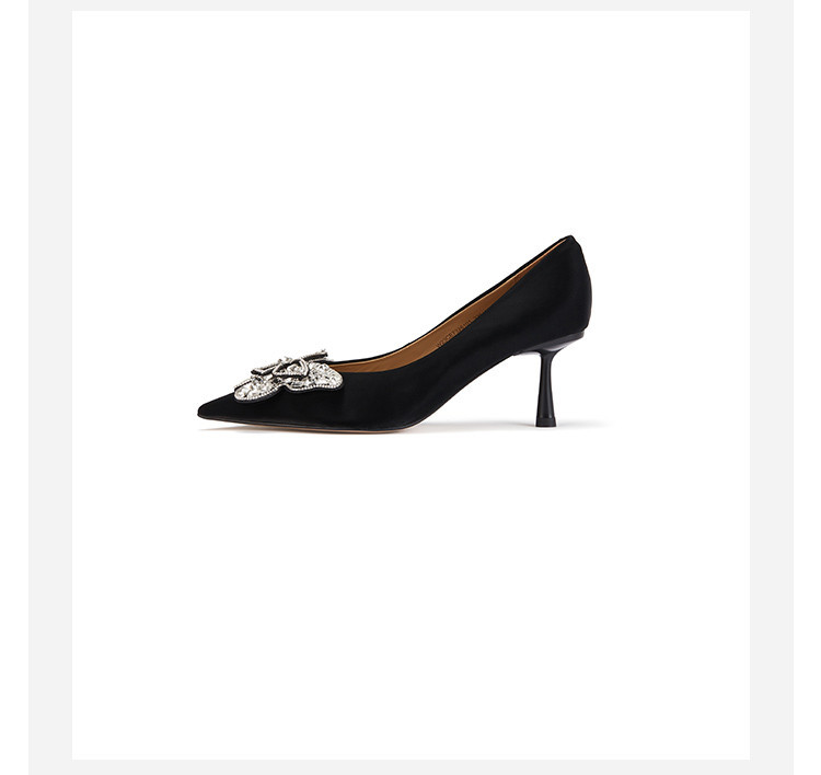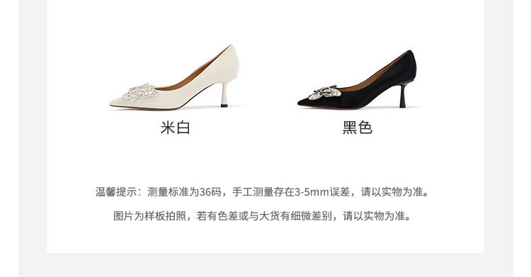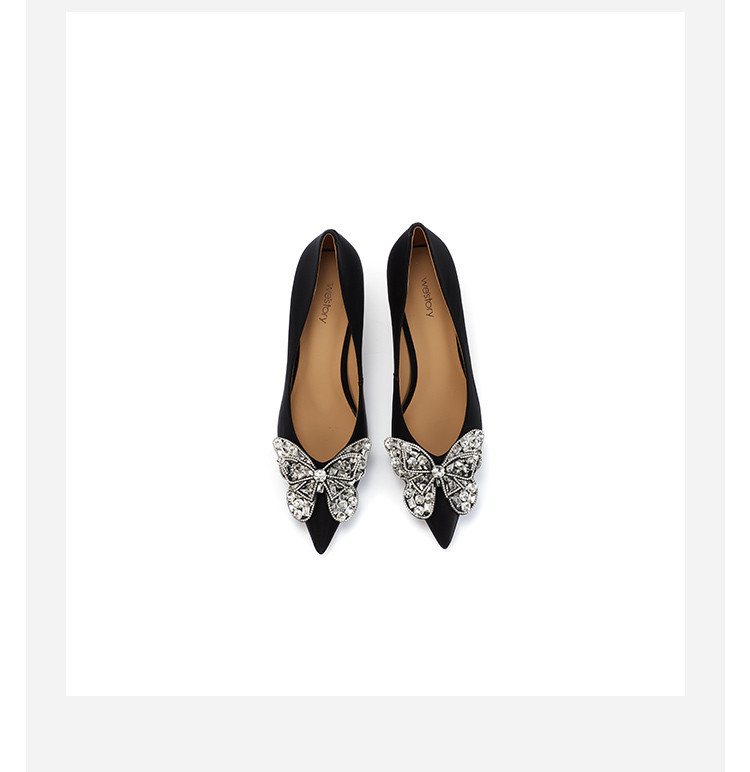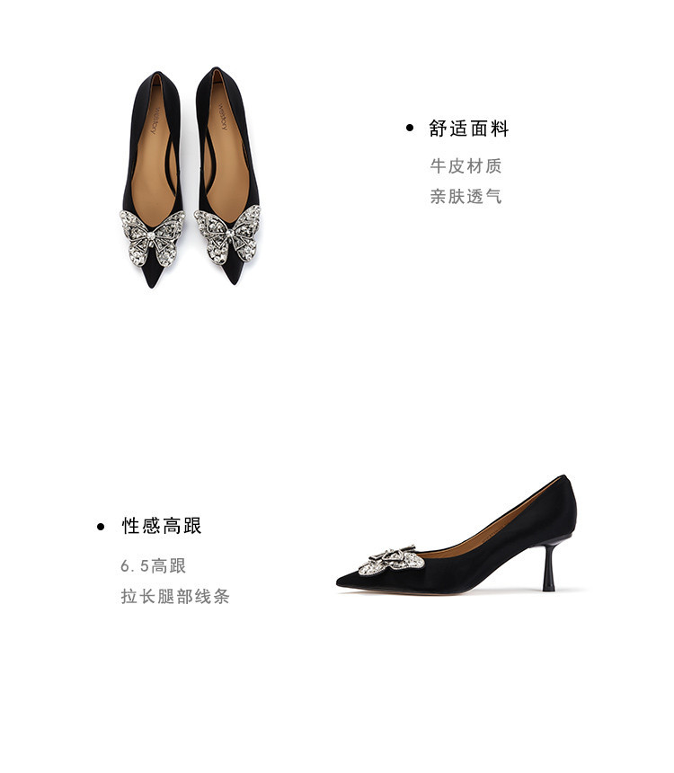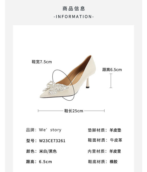 westory2023秋季新款高脚小细跟内水钻饰扣皮鞋通勤尖头单鞋W23CE73261