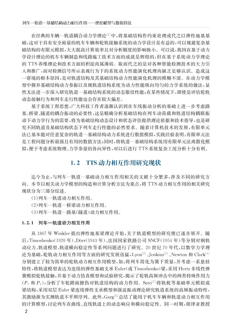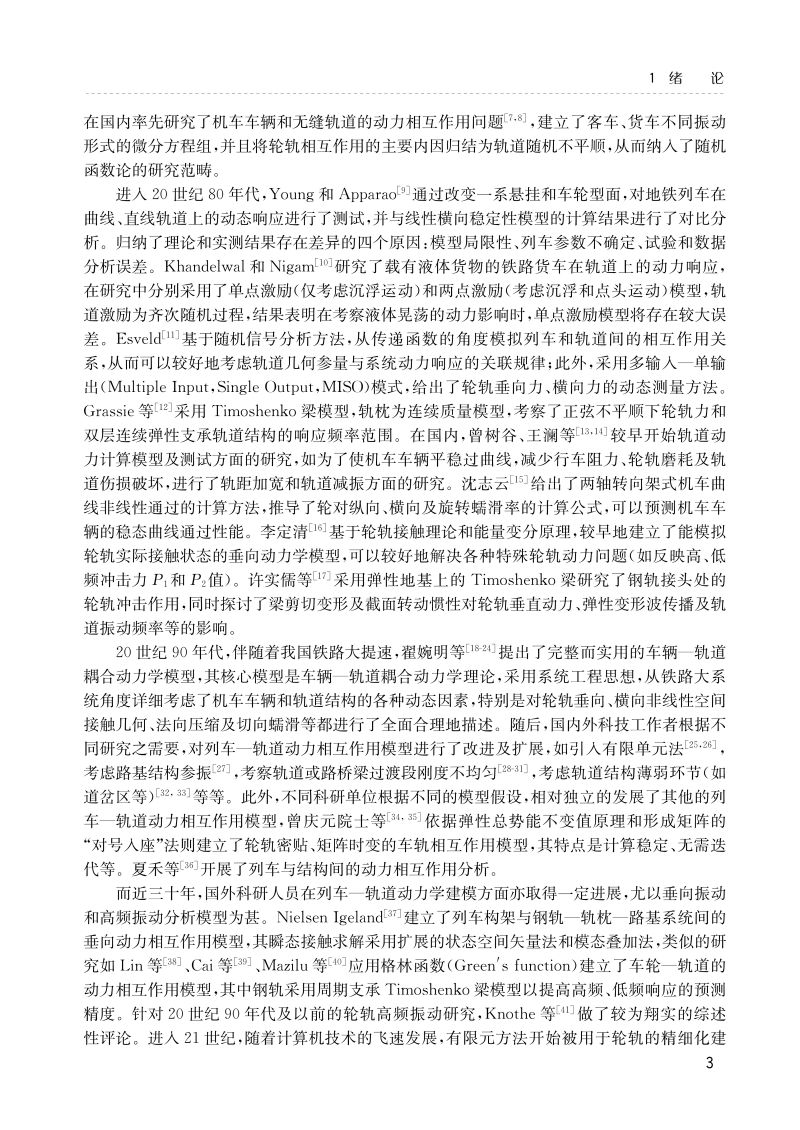 本书基于车辆-轨道耦合动力学基础理论进一步发展高效的动力有限元分析模型和框架,开展车线(路、桥、隧)动力相互作用研究。全书从研究现状、一般方法和应用范畴三个方面扼要阐述列车-轨道-基础结构动力相互作用研究的理论技术方法和工程应用价值;较为清晰地给出列车-轨道动力相互作用建模方法、轨道基础结构系统的有限元模拟方法和列车-轨道-基础结构系统耦合方法;系统阐述著者在列车-轨道-基础结构动力学系统的轨道几何不平顺激励和离散参数非均匀激励模拟方面开展的较有新意的工作;详细给出列车-轨道-基础结构动力相互作用系统的动力学构造流程,且发展了可在有限长度、非周期性轨道上实现列车长距离运行模拟的循环计算方法;依据轮轨相互作用模型、基础结构形式(路、桥、隧)和有限单元类型的不同,对列车-轨道-基础结构的动力相互作用做了对比分析研究;围绕轮轨接触几何/应力、曲线通过、基础结构变形和轮轨高频振动等问题,分析列车-轨道-基础结构动力相互作用的模型优选问题;针对列车-轨道-基础结构系统几何和参数激励的随机特性,对列车-轨道-基础结构系统的随机动力学问题开展了拓展性分析工作,给出一些有意义的研究方法。