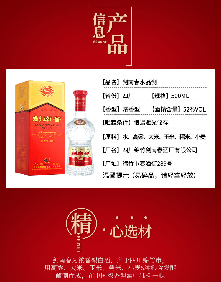 【出口版】剑南春水晶剑 500ml