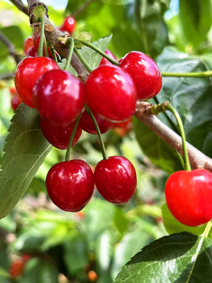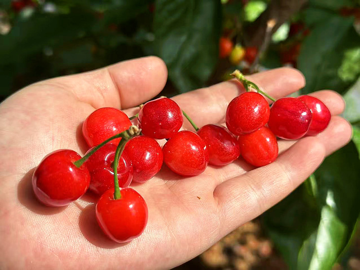 昼夜温差很大,所以这里的玛瑙红小樱桃口感也会更甜!实测可达20°糖度。