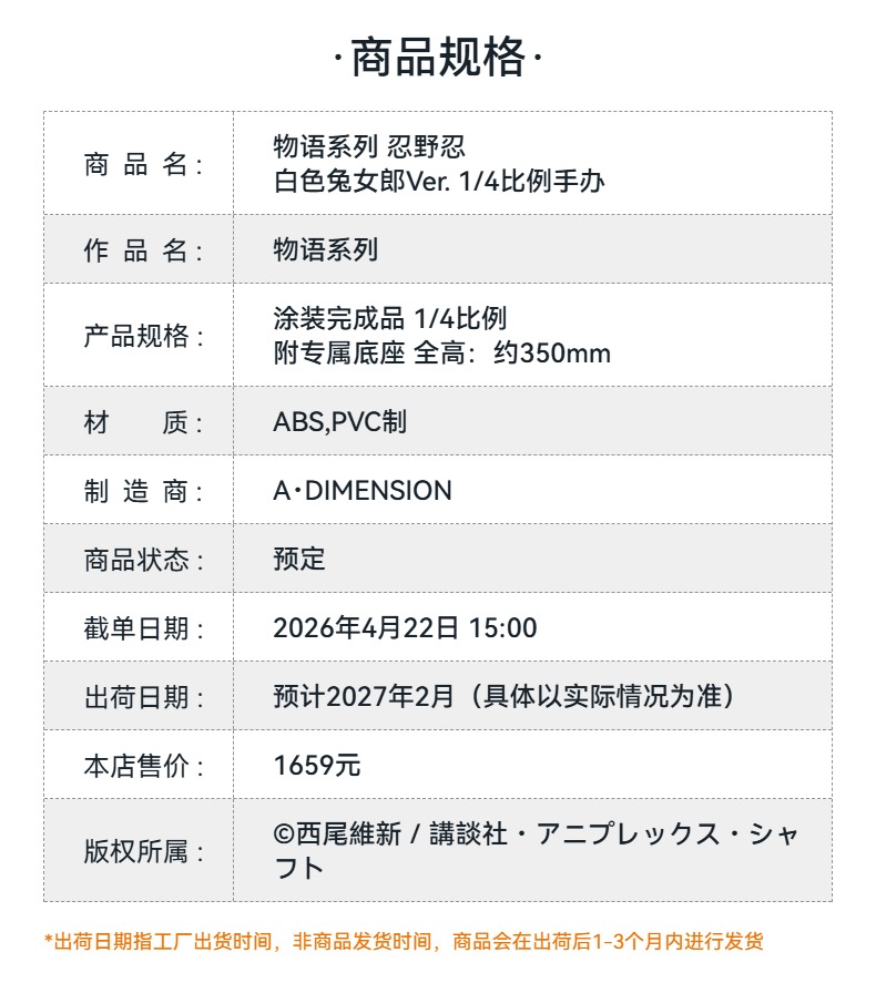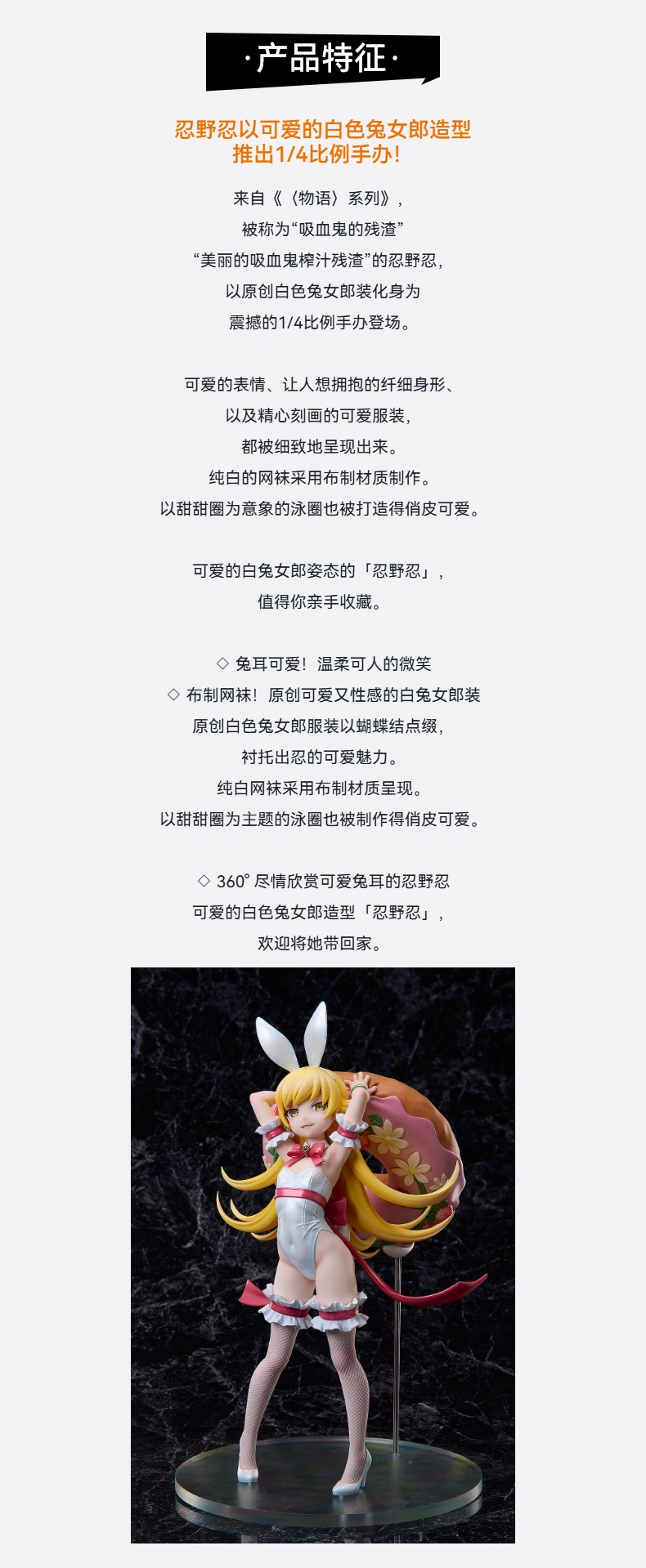 【GSC预售定金】1/4标准比例 物语系列 忍野忍 白色兔女郎Ver.