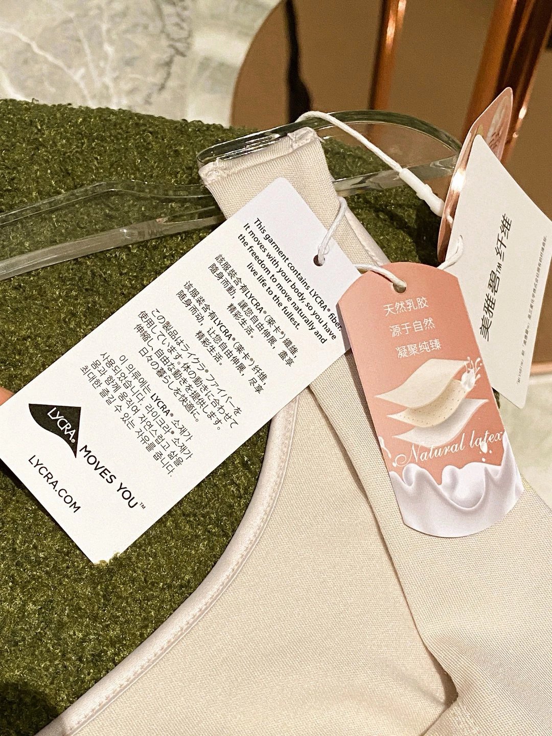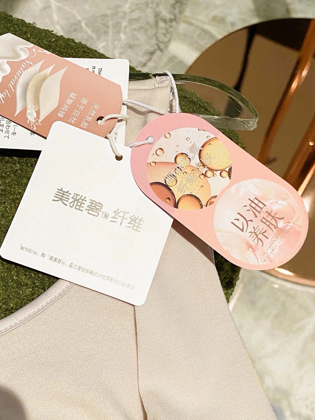 每一张吊牌有介绍和标注了用的面料纤维