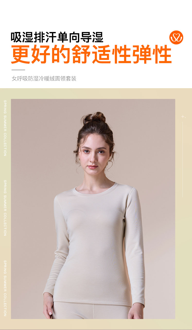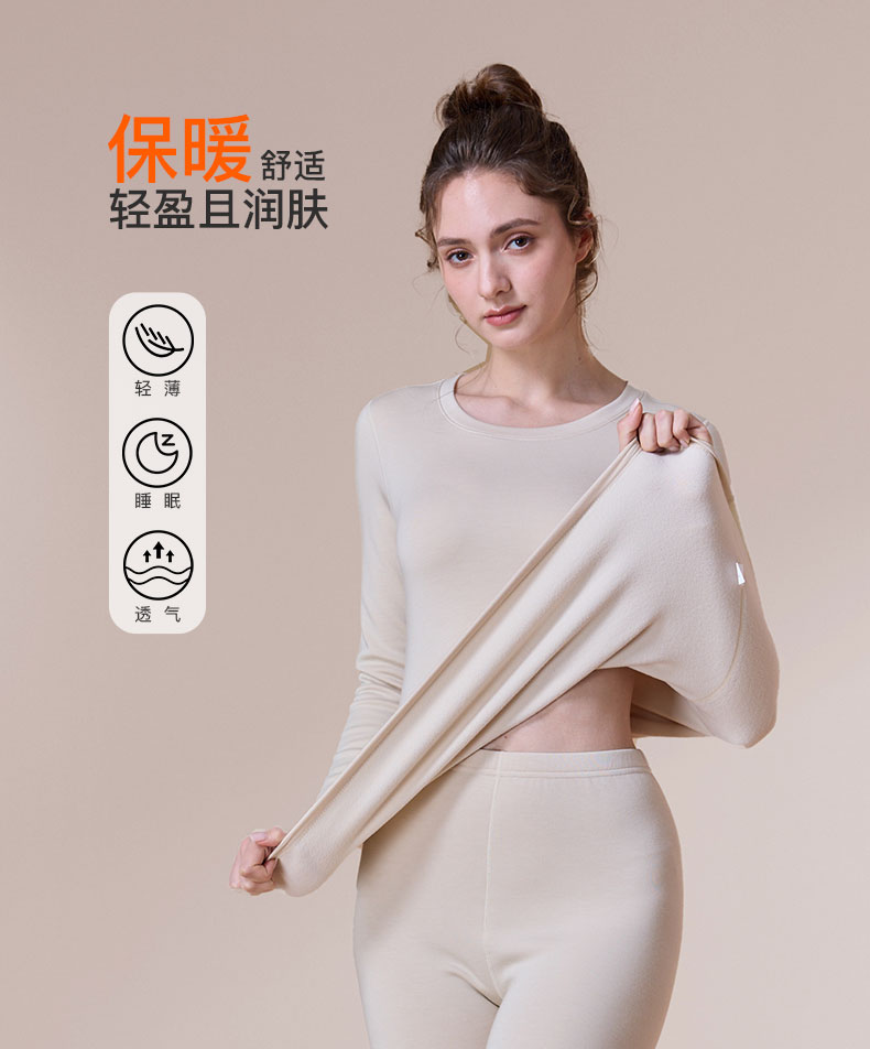 【单件6折/2件5折】【新品主推款】【秀黛】【男款/女款】呼吸绒防湿冷暖衣圆领套装男士女士保暖套装【280g左右】【有红色】S3661062T/S3660037T【门店同款】