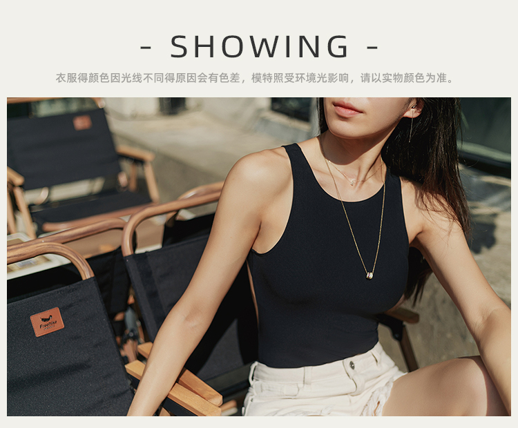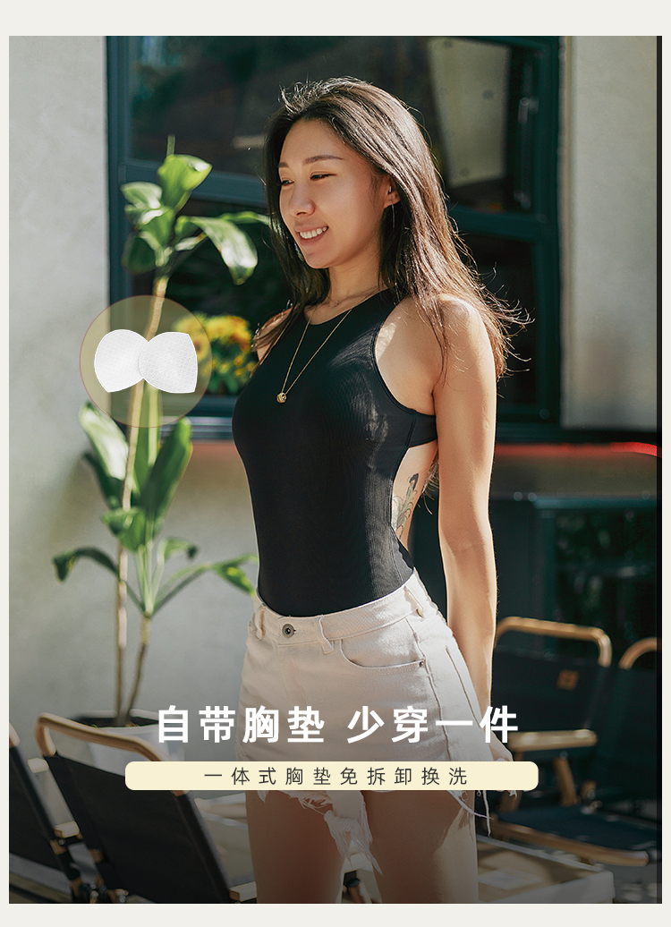 【高弹裸感】中高强度-圆领撞色带胸垫运动背心