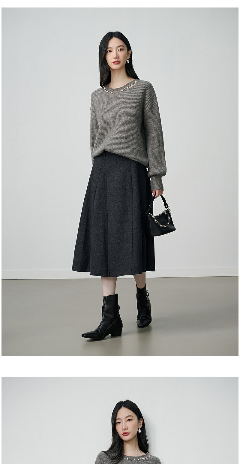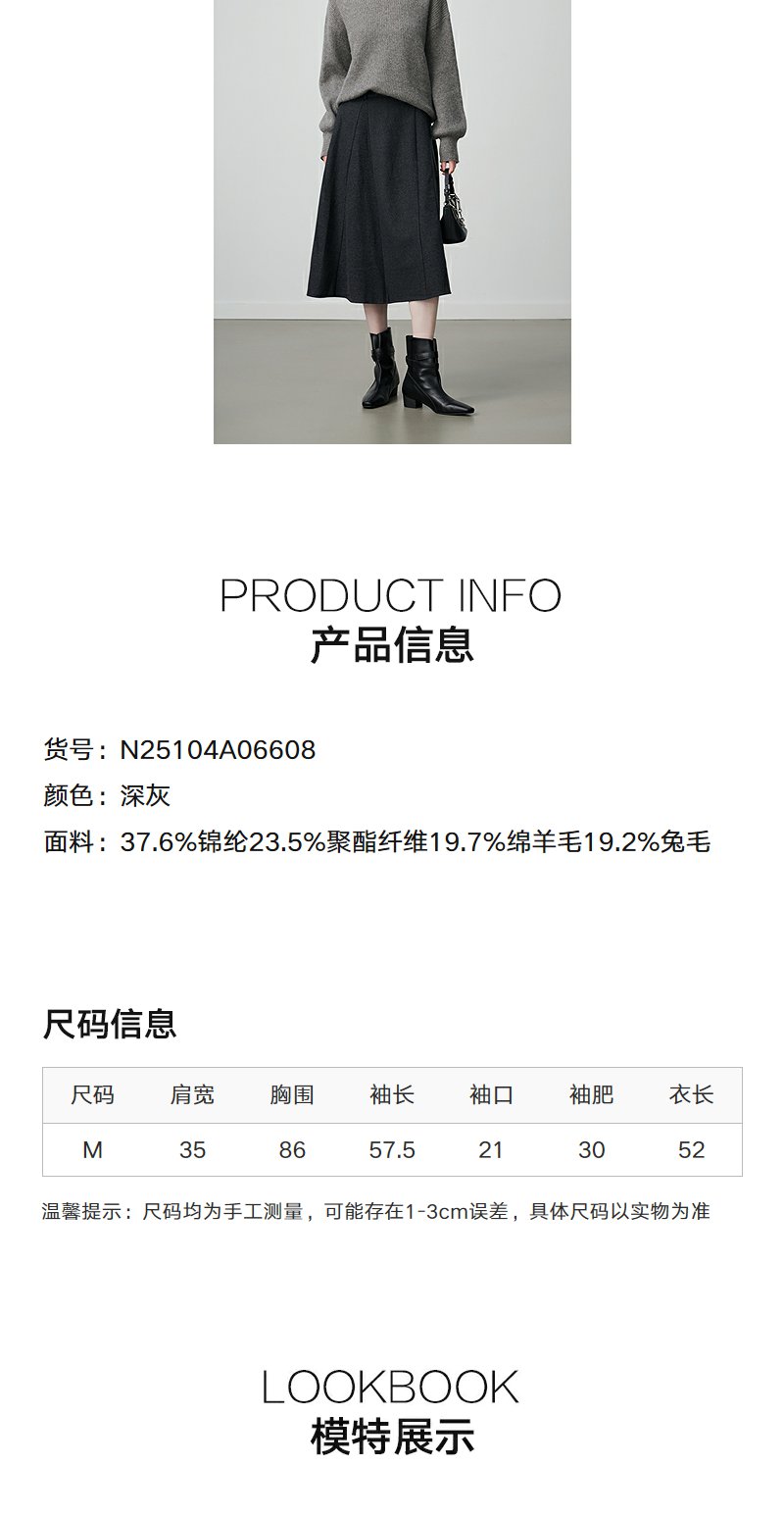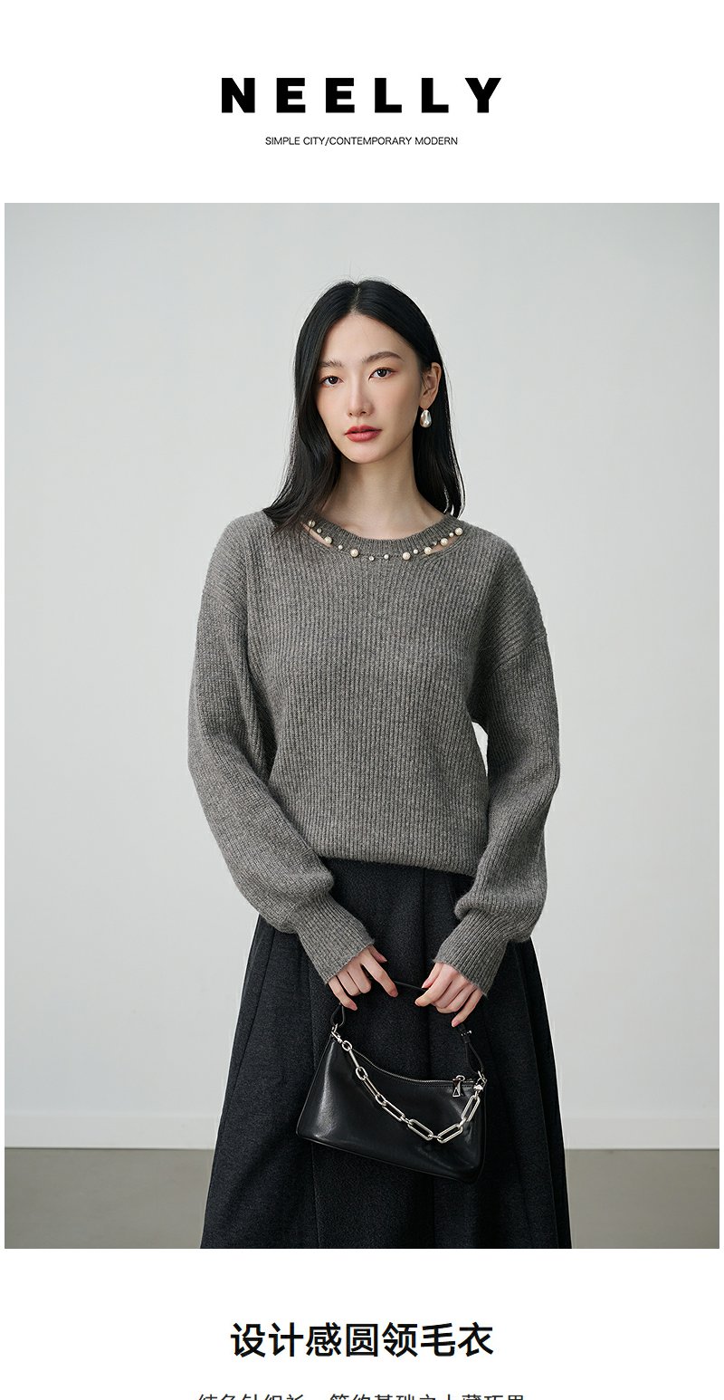 NEELLY纳俪商场同款冬季新款设计感休闲圆领毛衣女亲肤随性针织衫N25104A06608