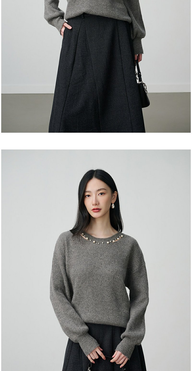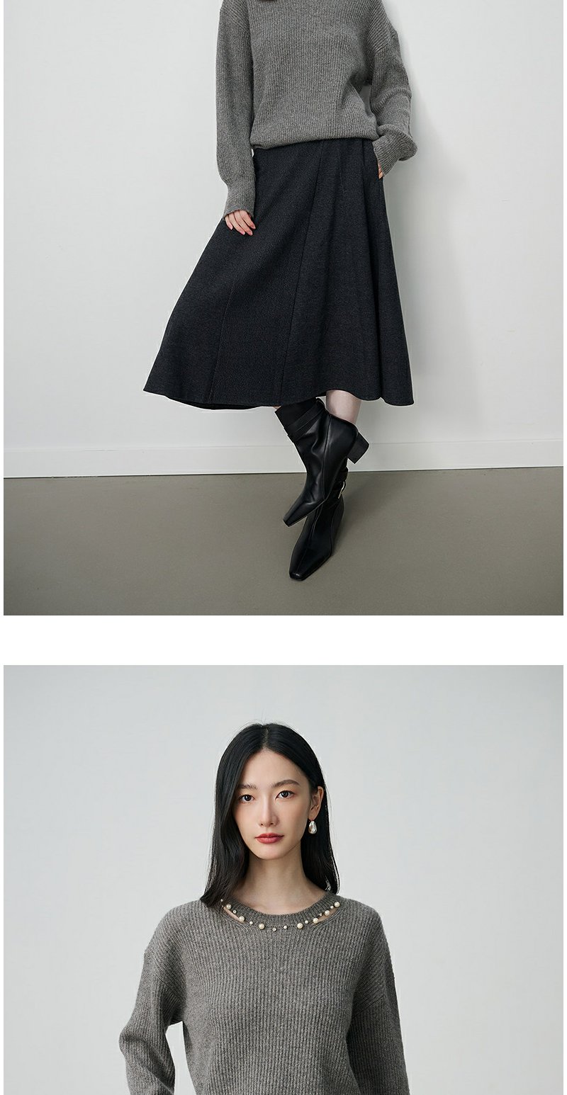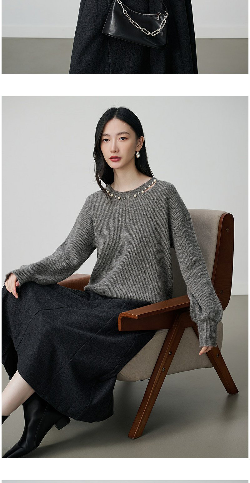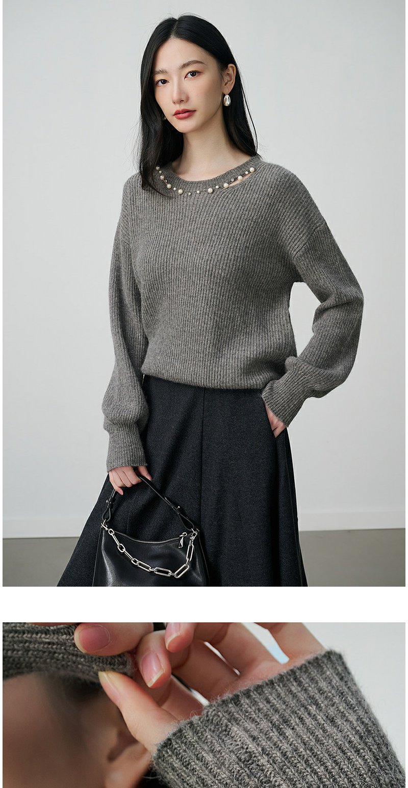 NEELLY纳俪商场同款冬季新款设计感休闲圆领毛衣女亲肤随性针织衫N25104A06608