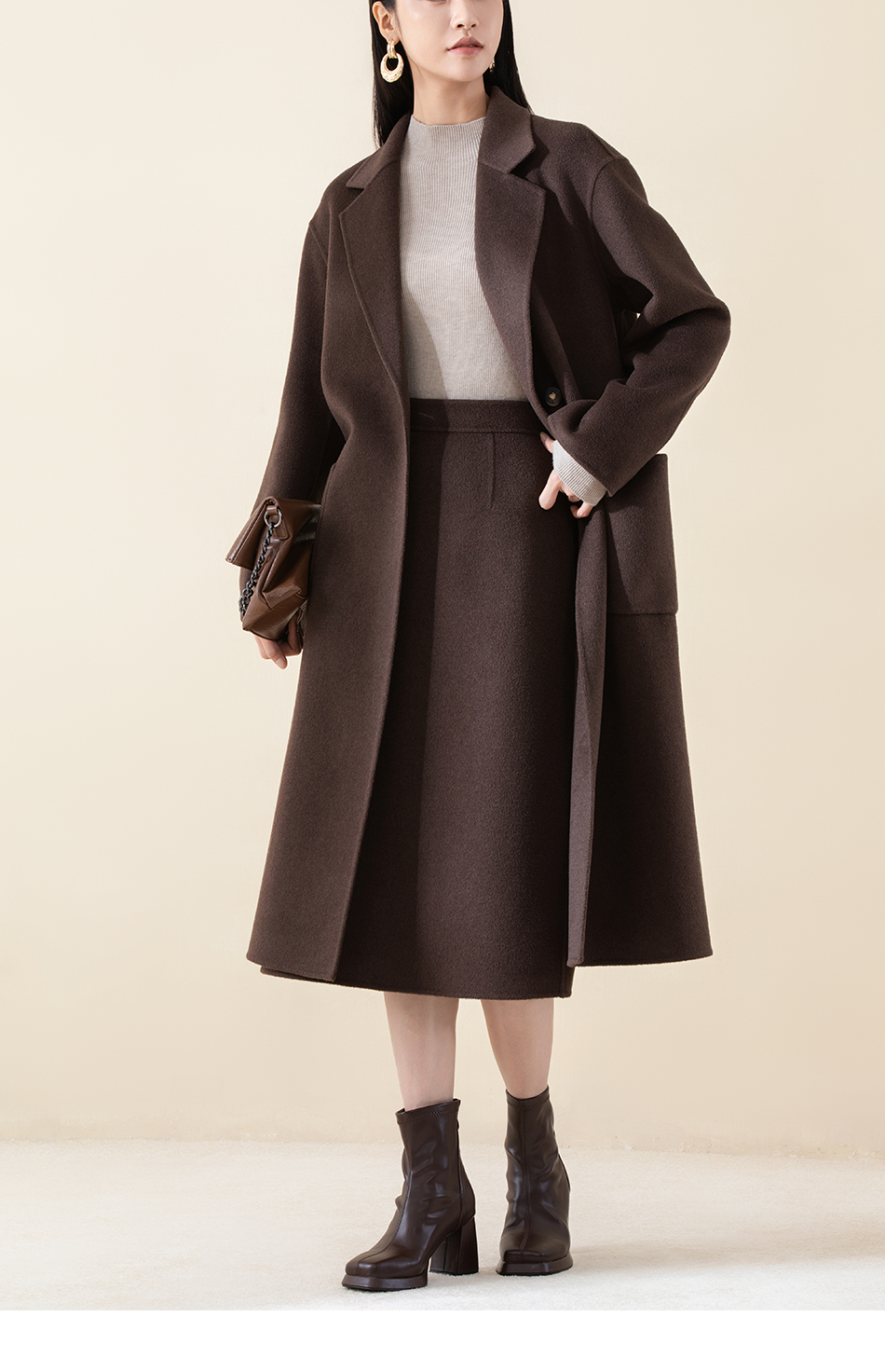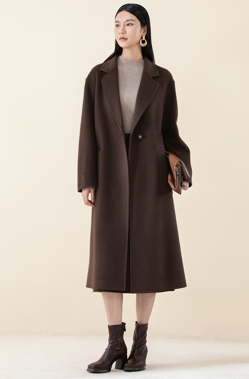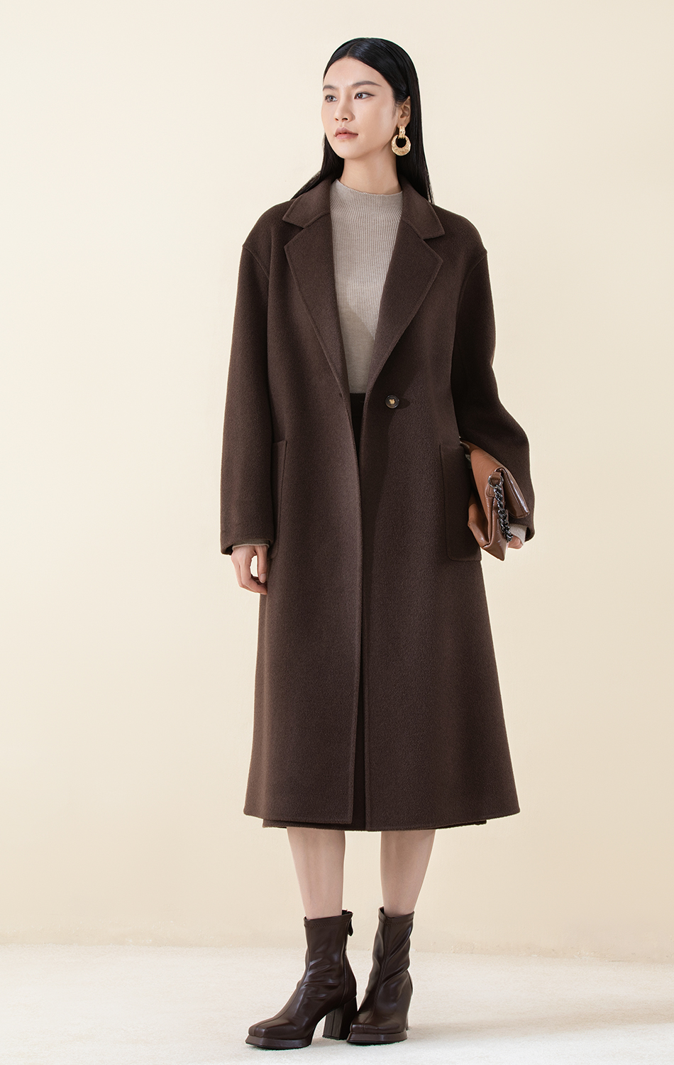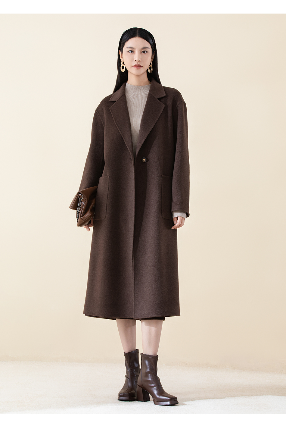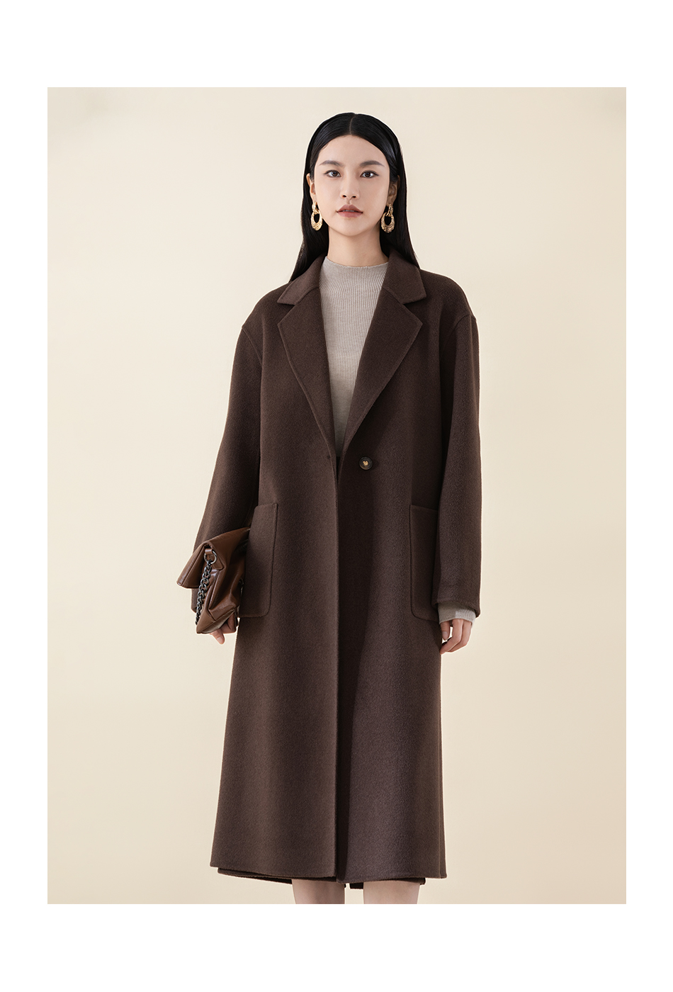 SCC8BD147诗梦松果棕长款大衣