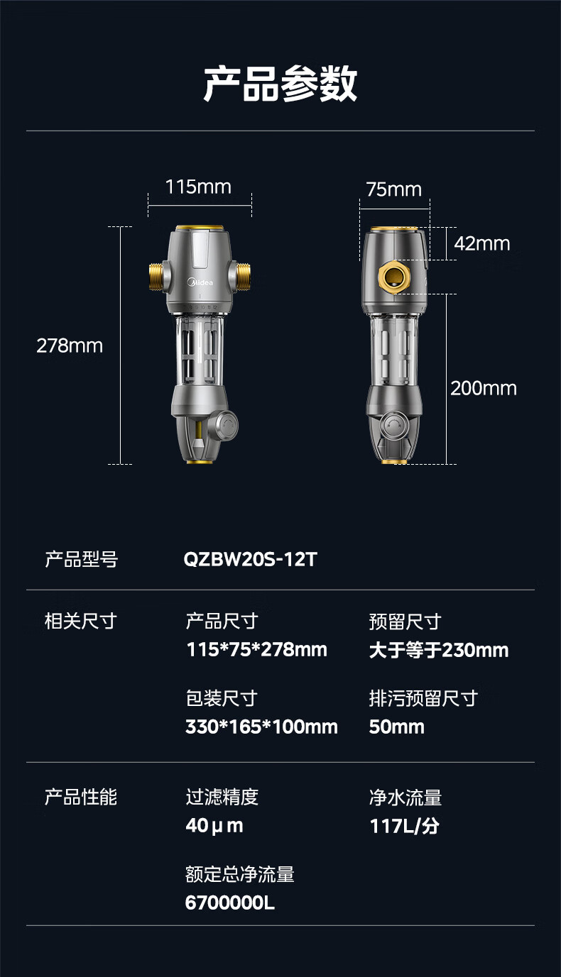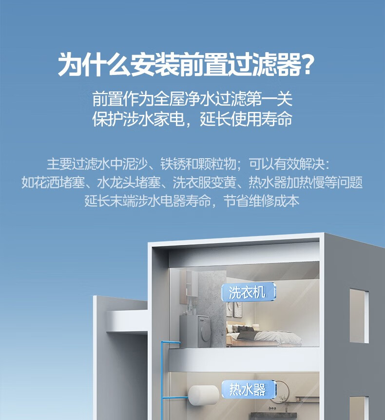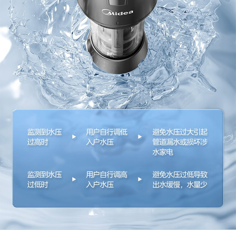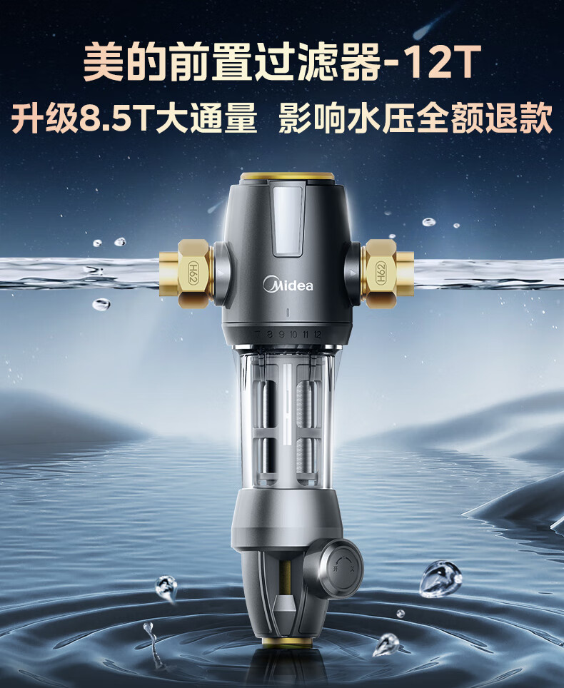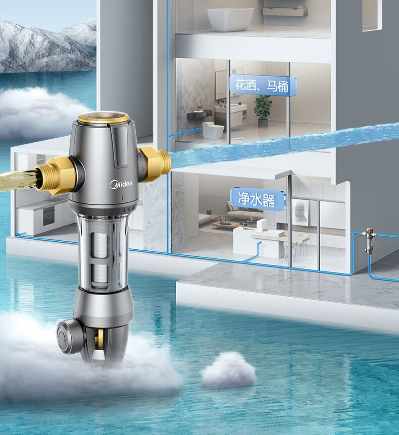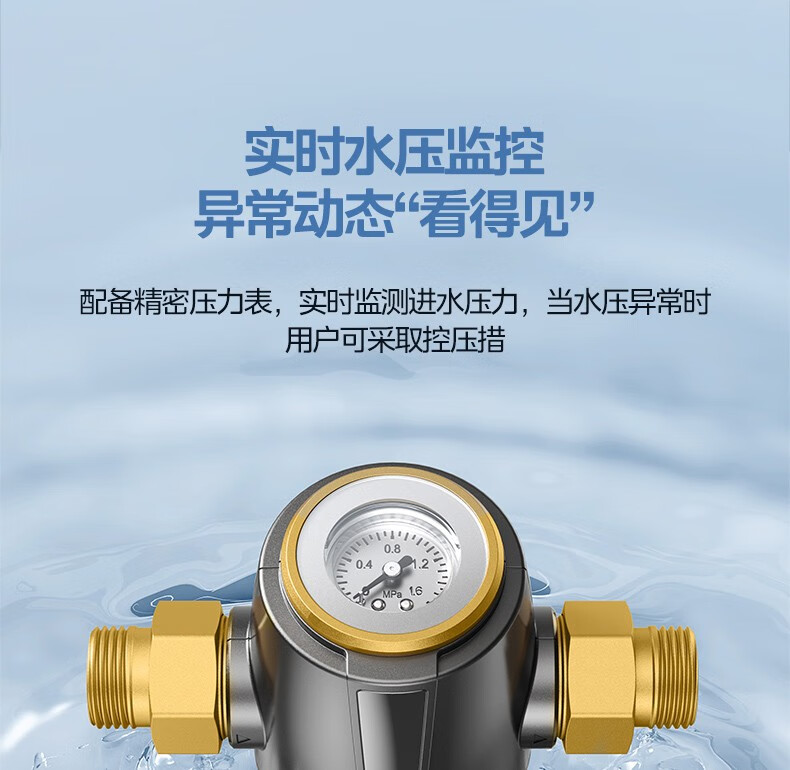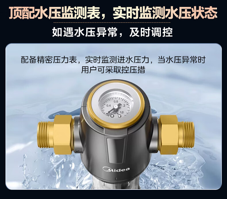 美的(Midea)前置过滤器40微米反冲洗压力表监控 QZBW20S-12T 全屋家用净水器清洗 旋风
