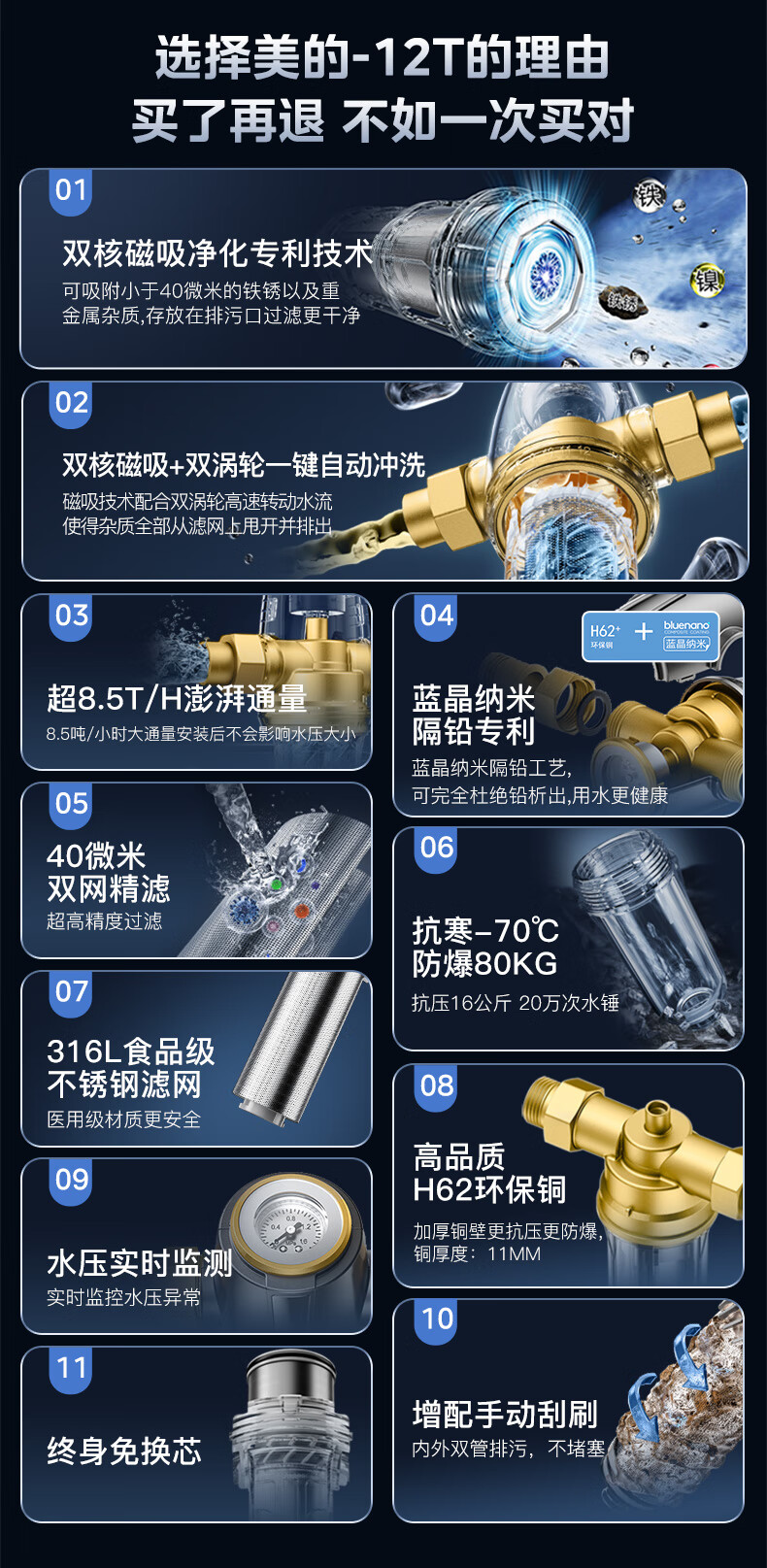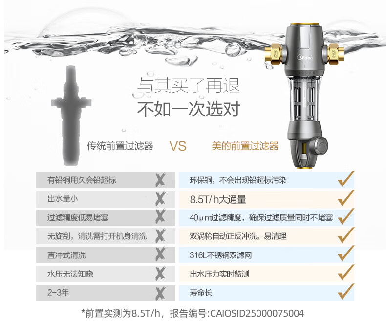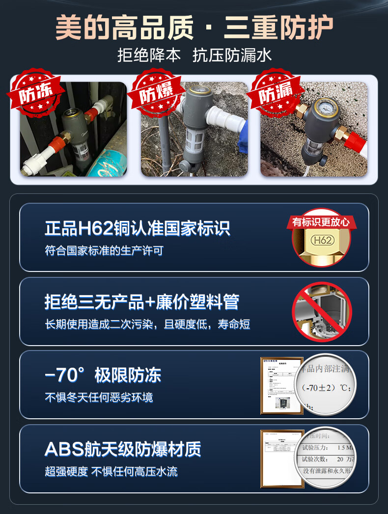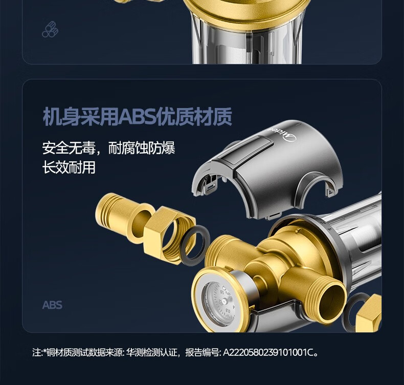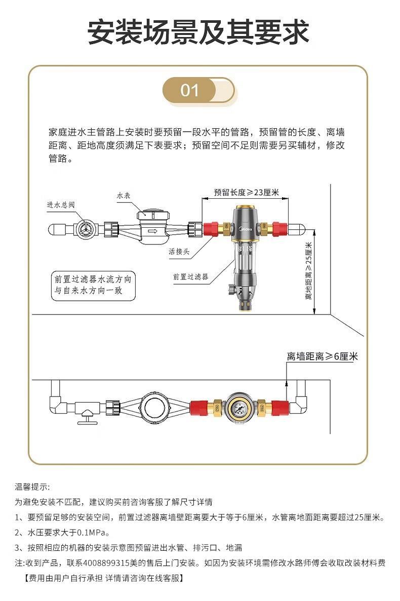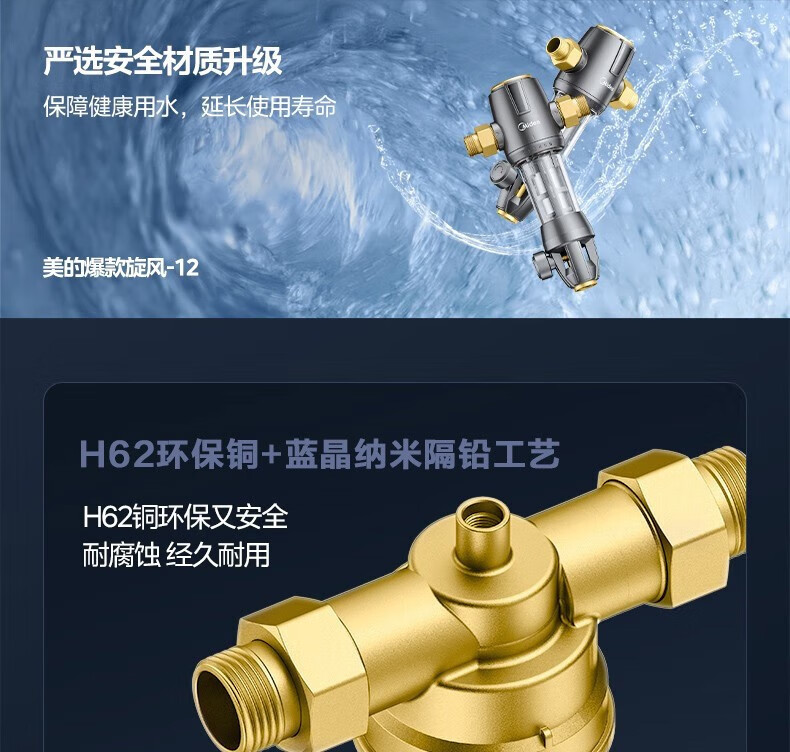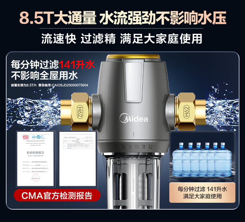 美的(Midea)前置过滤器40微米反冲洗压力表监控 QZBW20S-12T 全屋家用净水器清洗 旋风