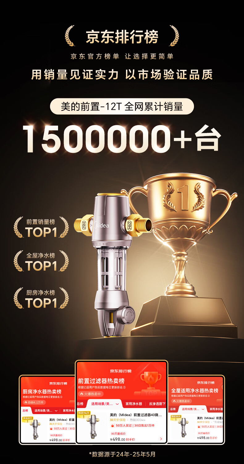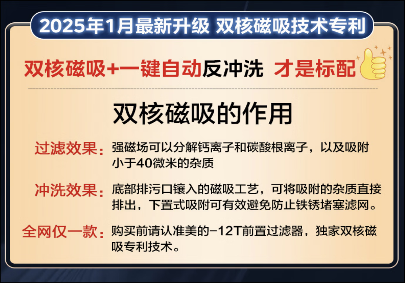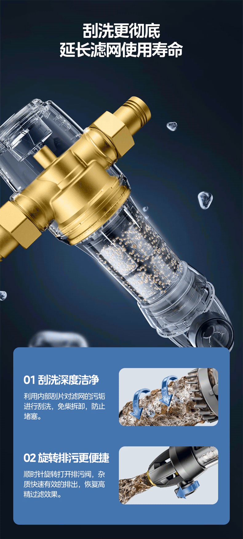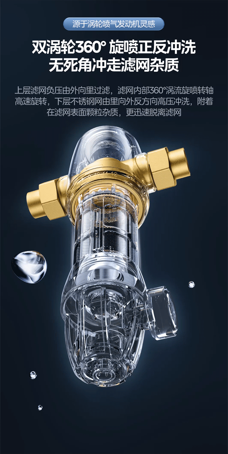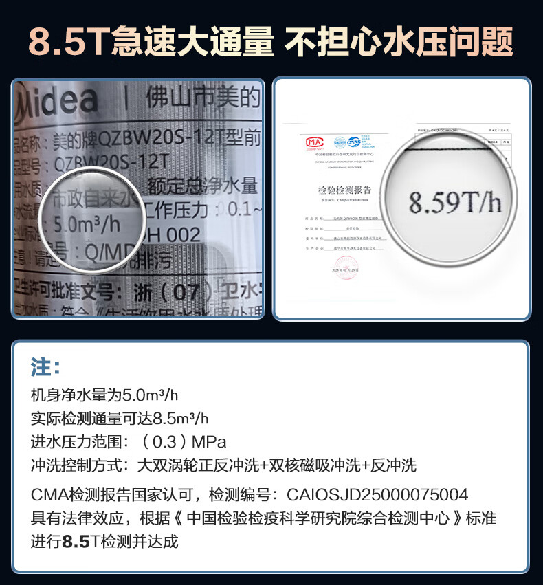 美的(Midea)前置过滤器40微米反冲洗压力表监控 QZBW20S-12T 全屋家用净水器清洗 旋风